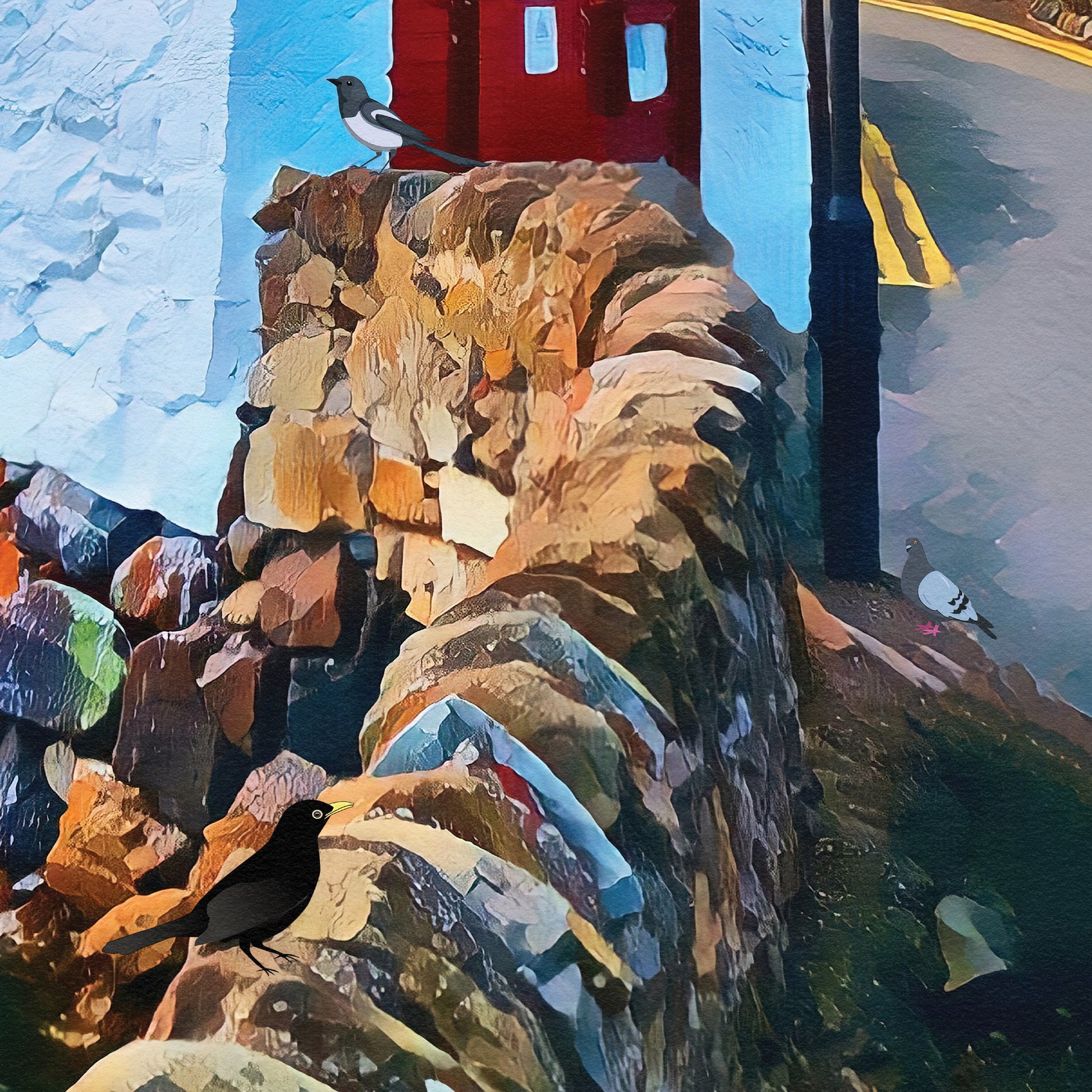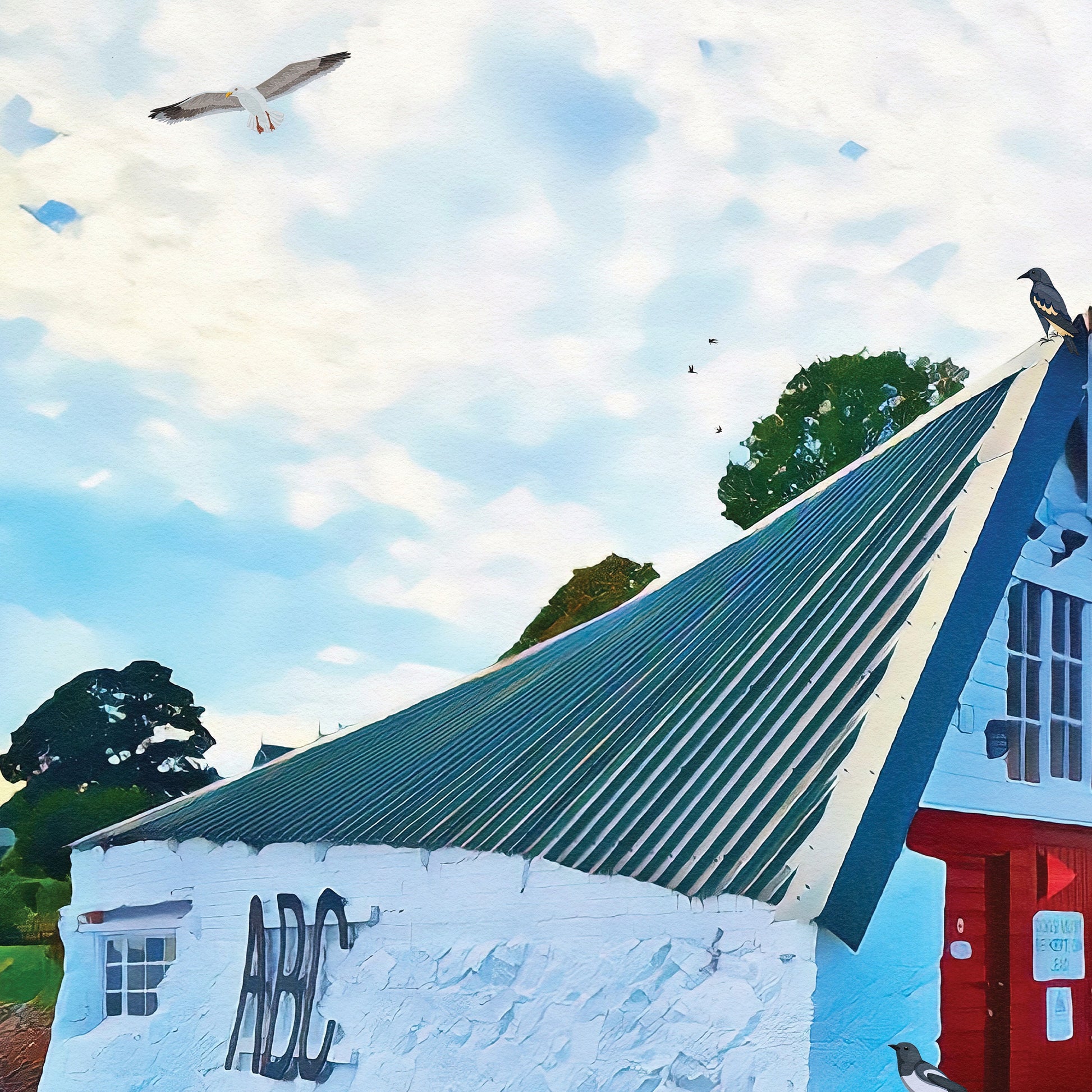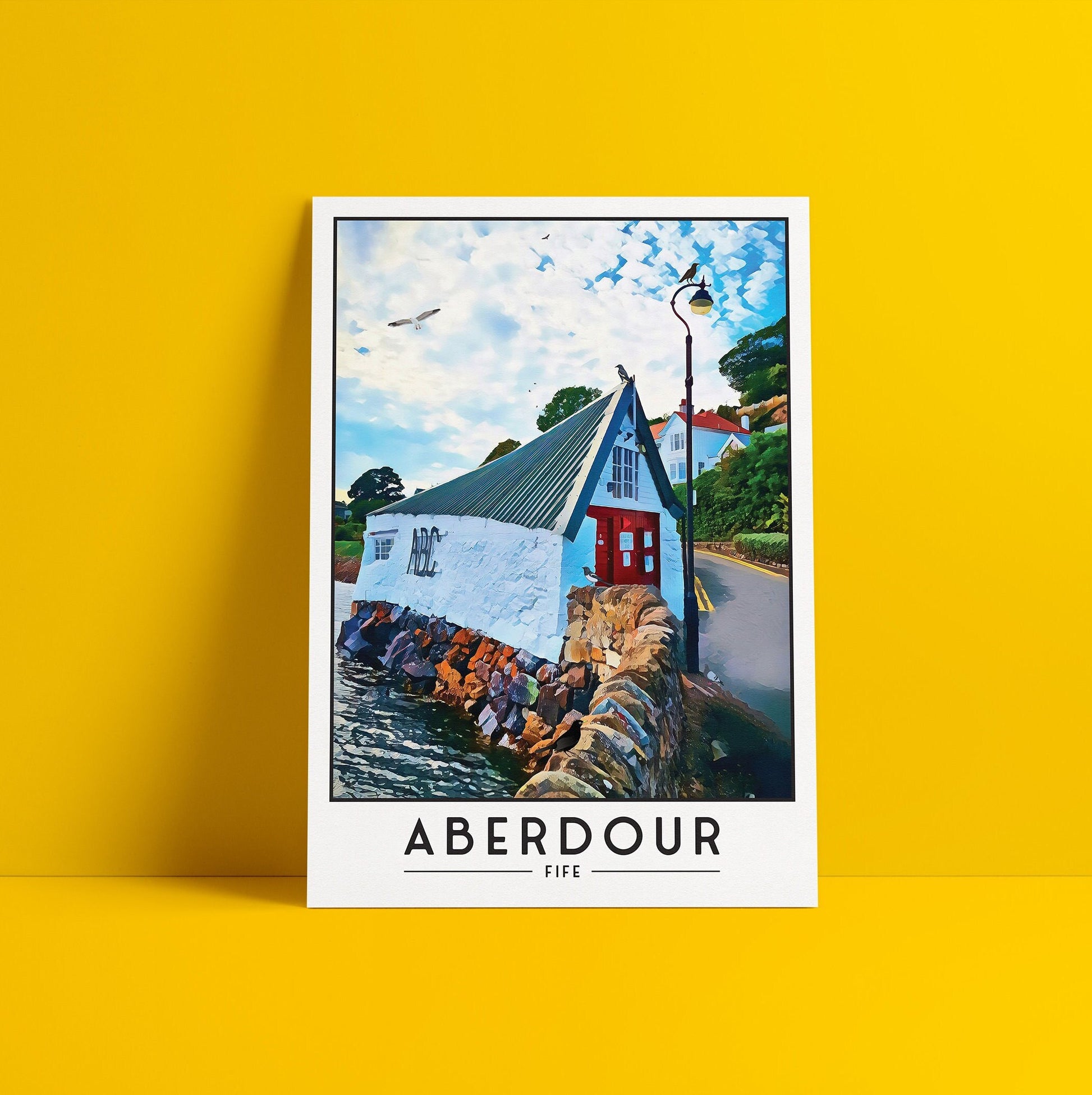 Aberdour PrintColourful illustration of the Aberdour Boat Club building next to Black Sands beach with local birdlife. Available as:A3: 16.5 x 11.7 inches