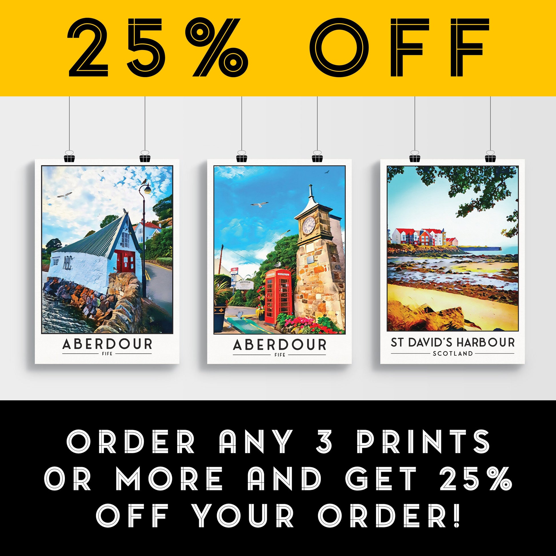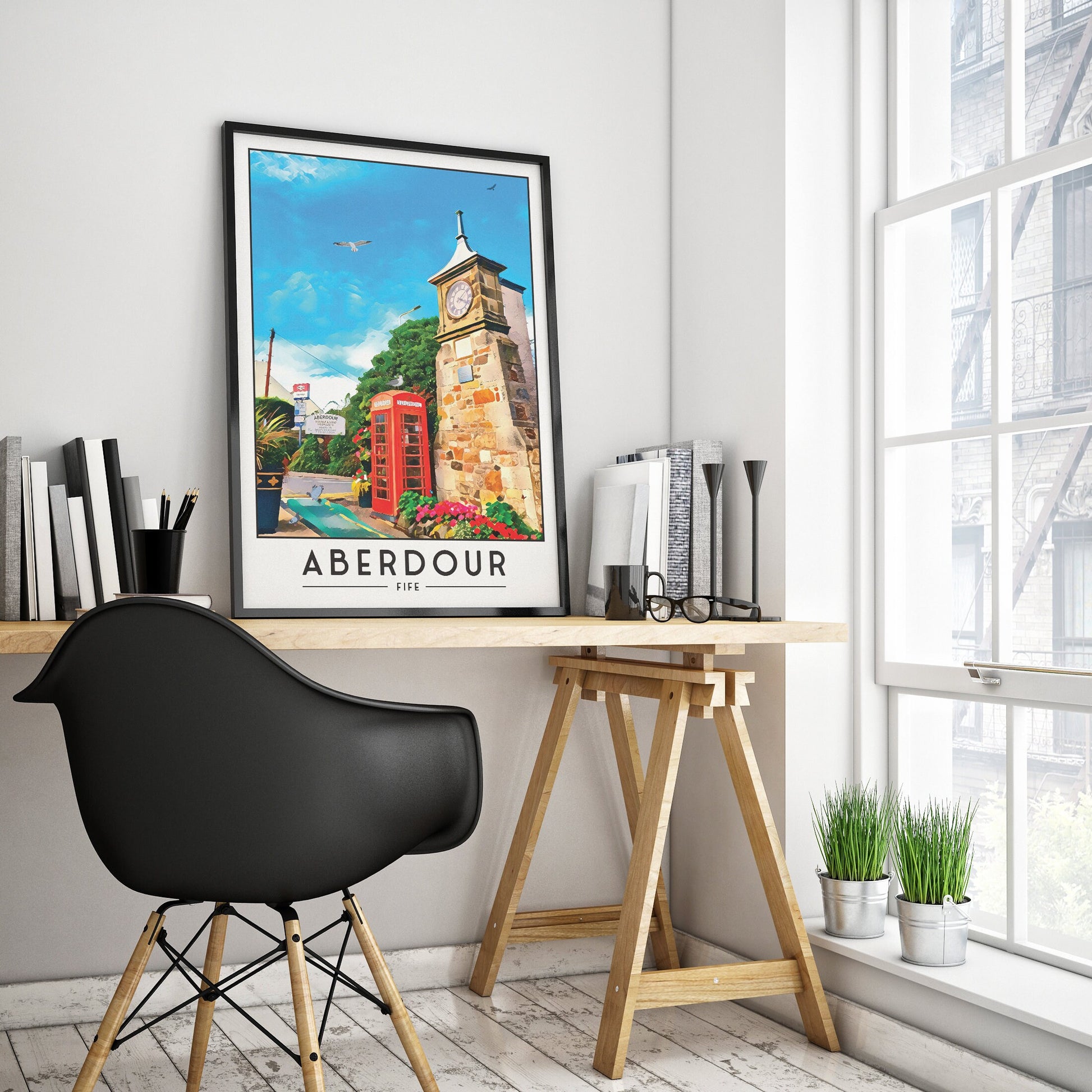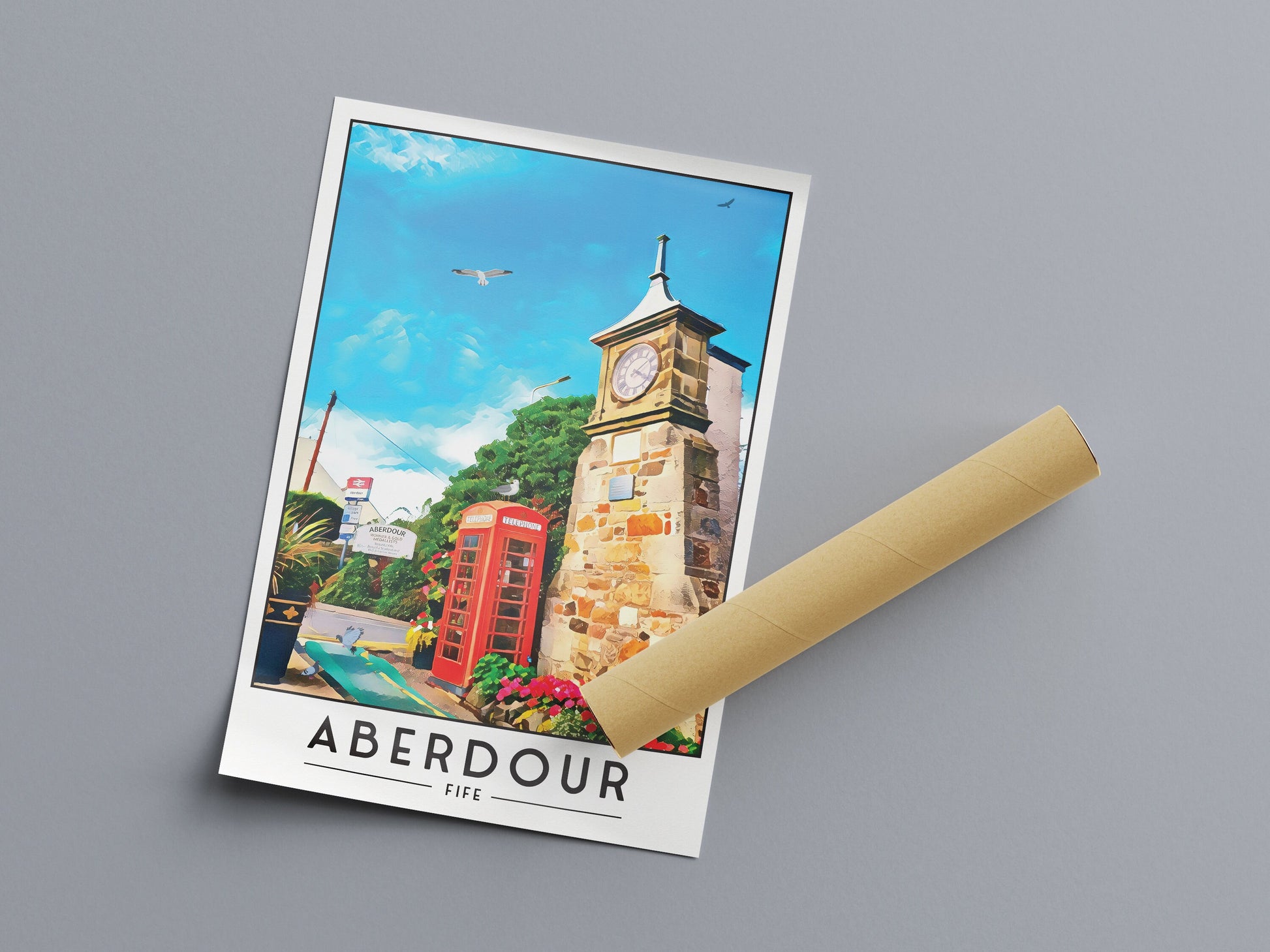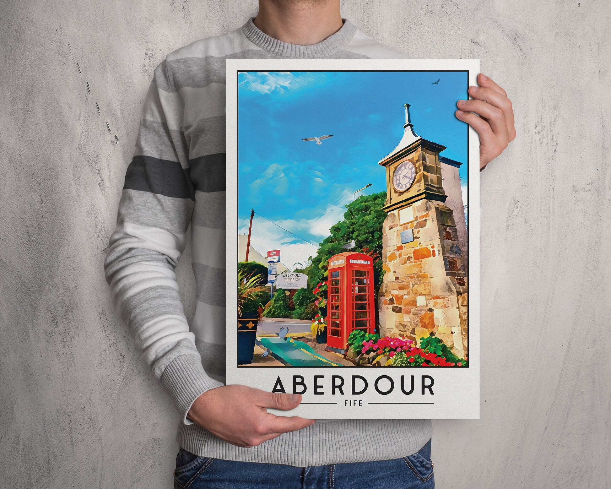 Aberdour PrintCelebrate the nostalgic charm of Aberdour Train Station with this captivating travel poster featuring the iconic red telephone box. This poster is a perfect addition for travel enthusiasts and lovers of vintage aesthetics, bringing the timeless allure of Aberdour into your home or office.Available as:A3: 16.5 x 11.7 inches