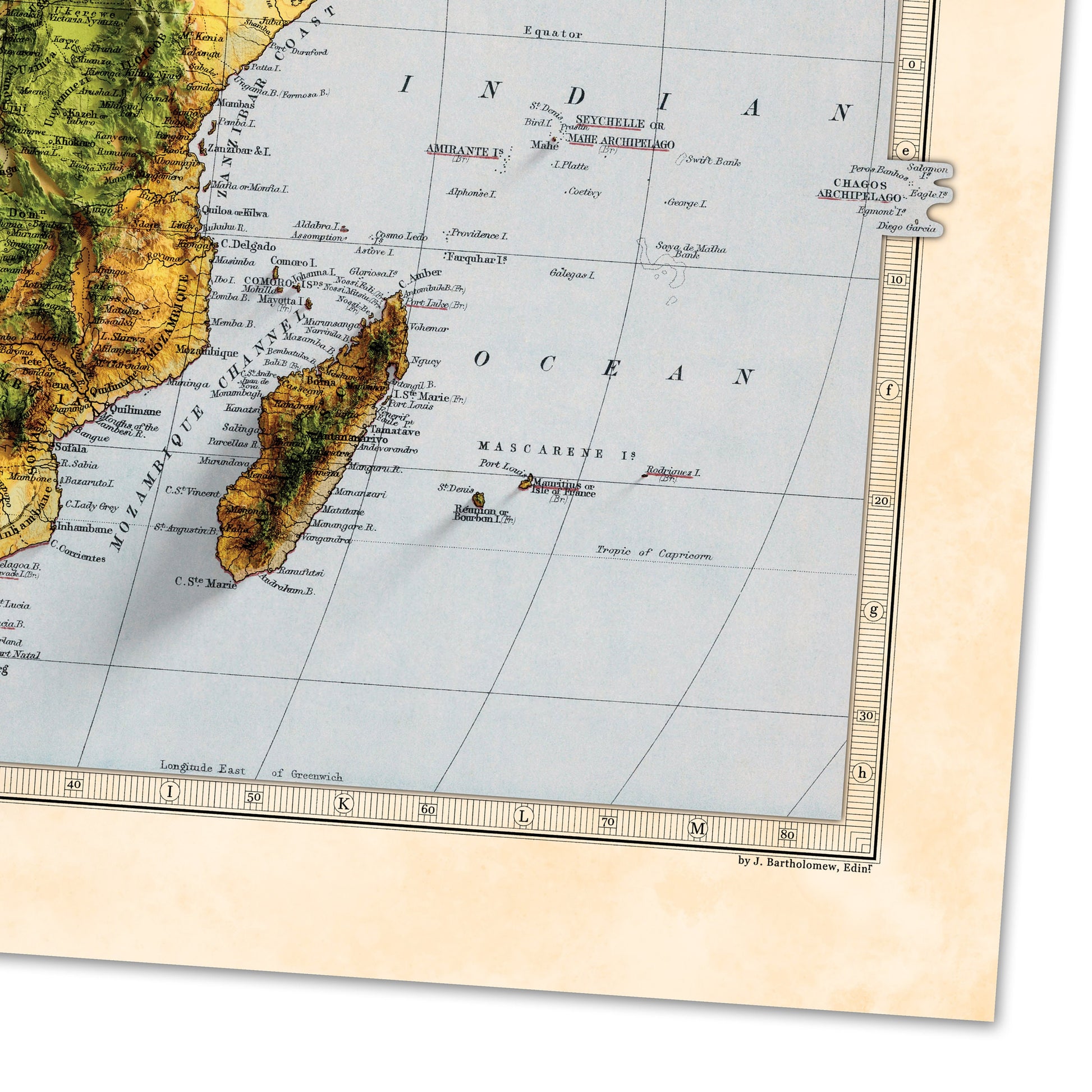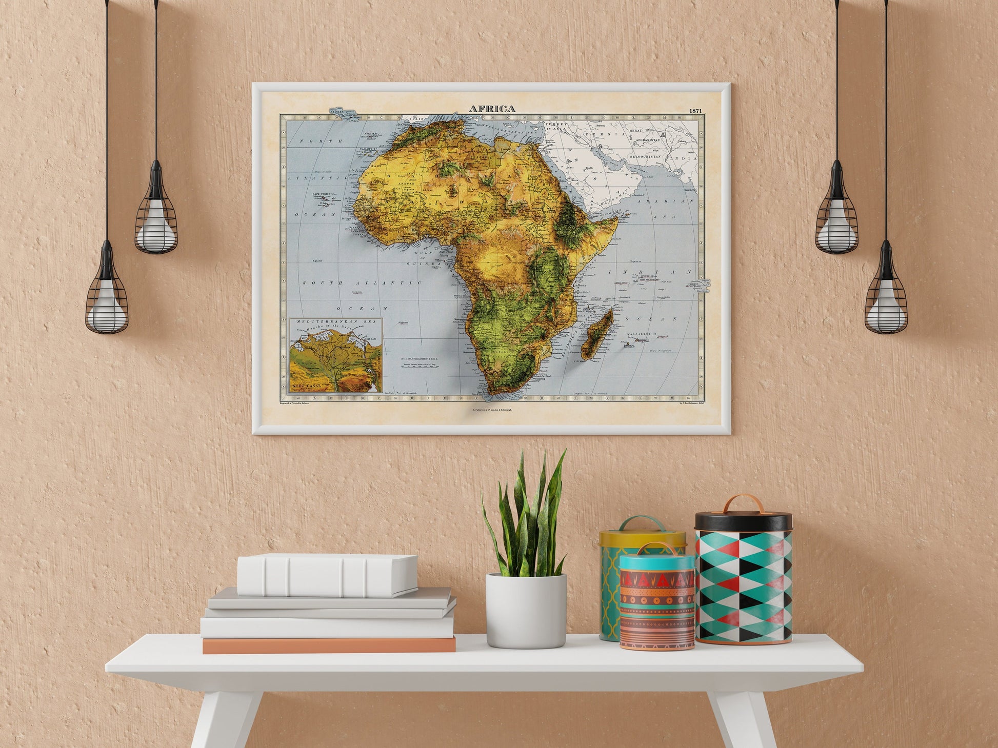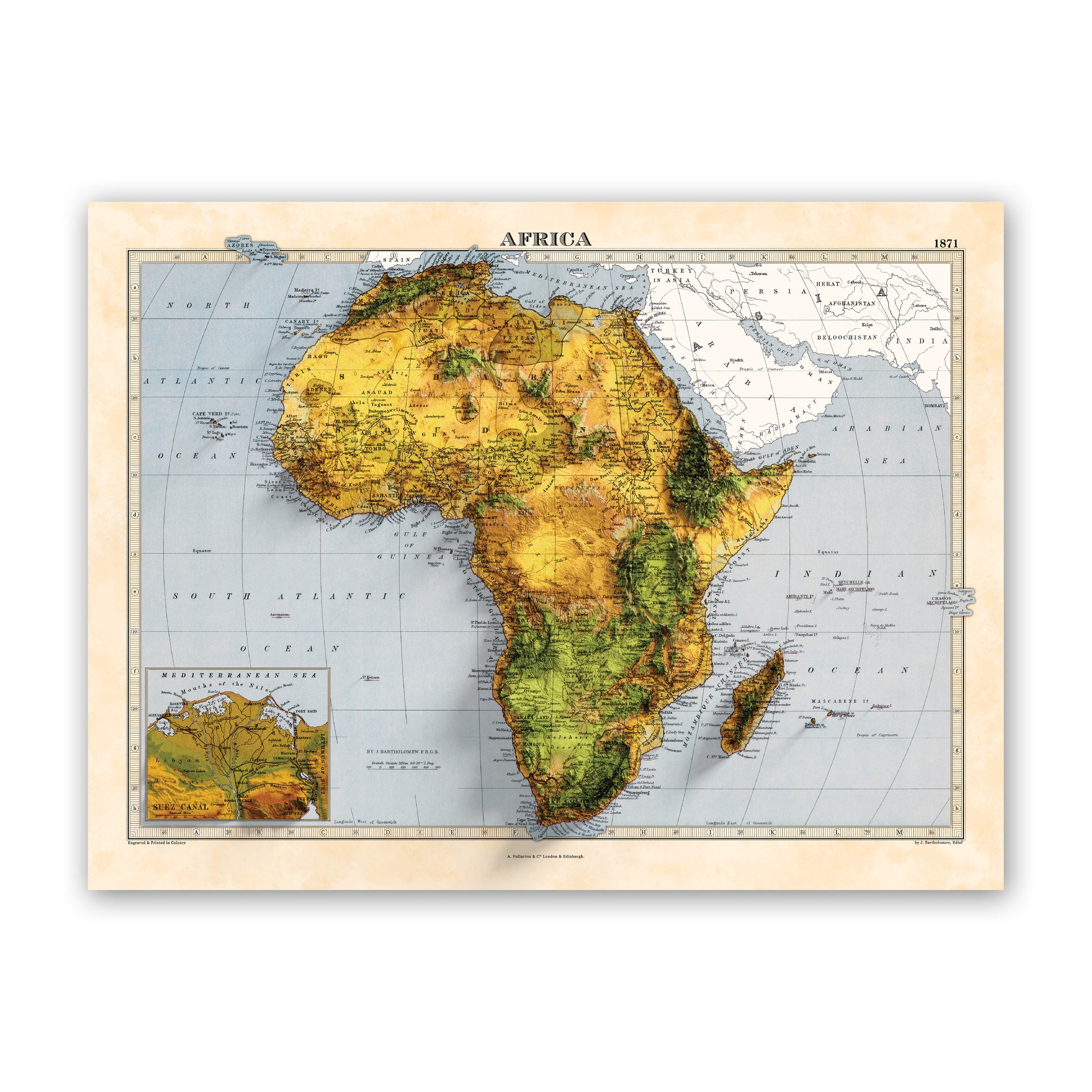 Africa Map - 2D Giclée Vintage African 3D effect shaded relief Print - Elevation Poster - Map Art - Vintage Style