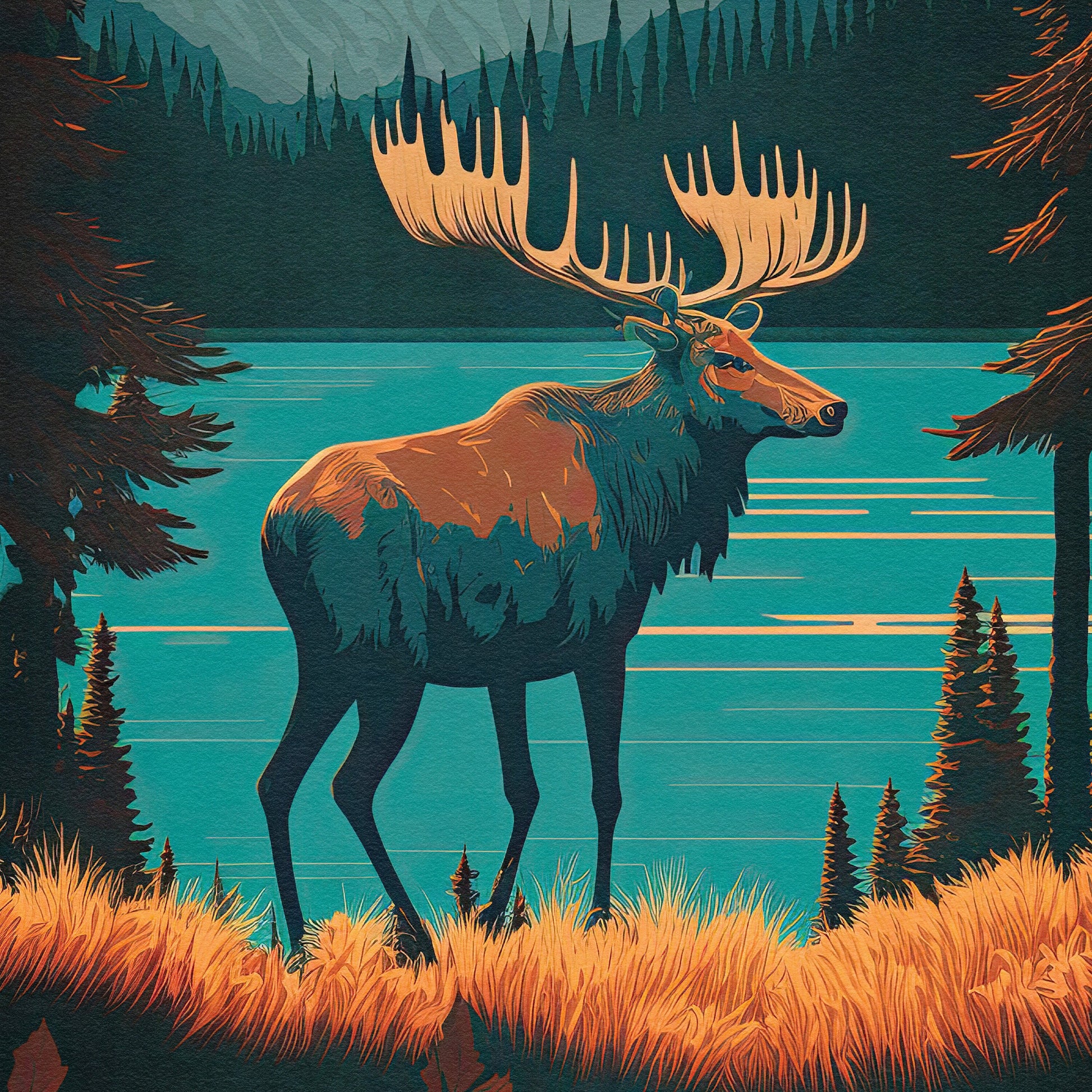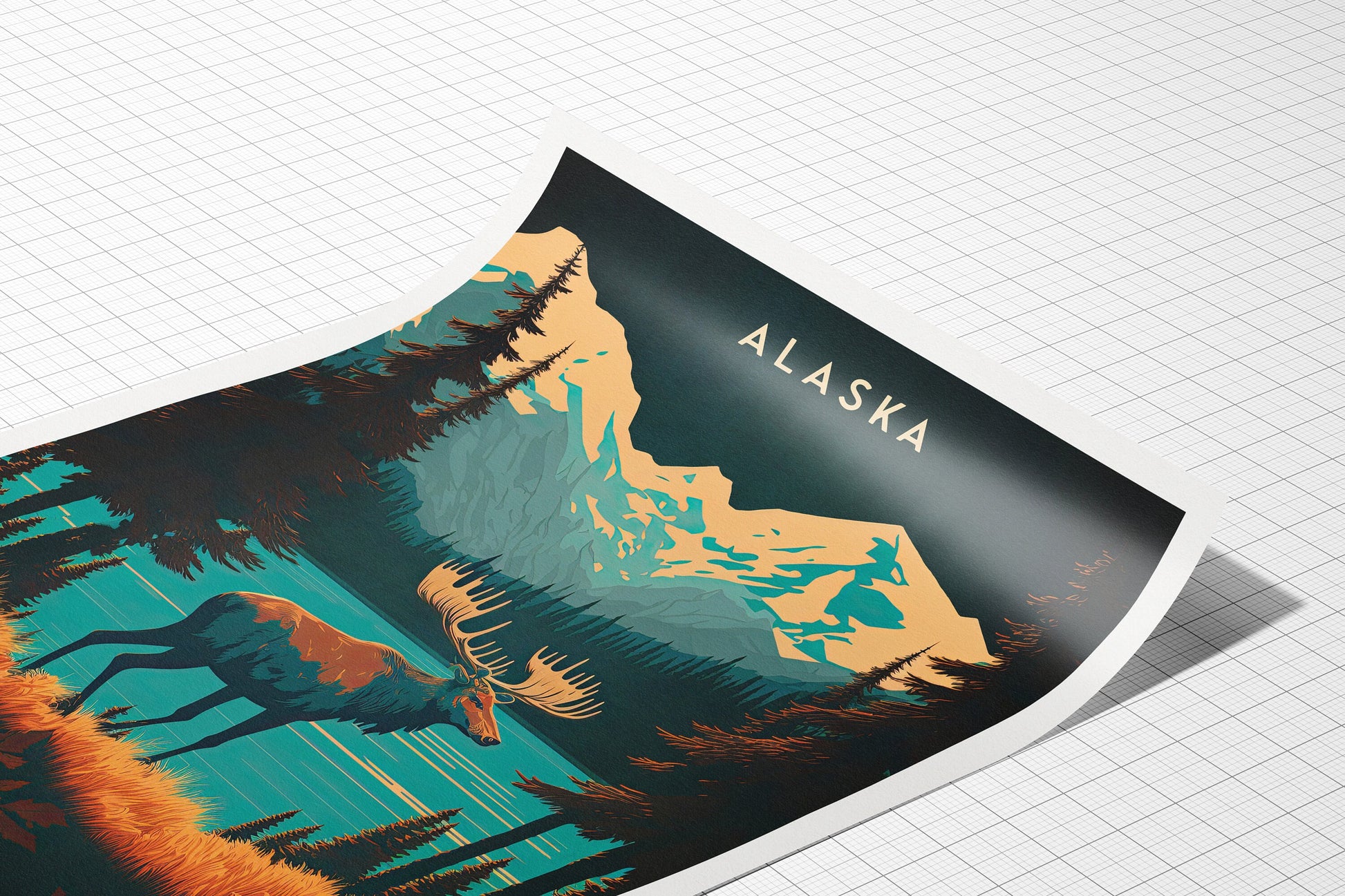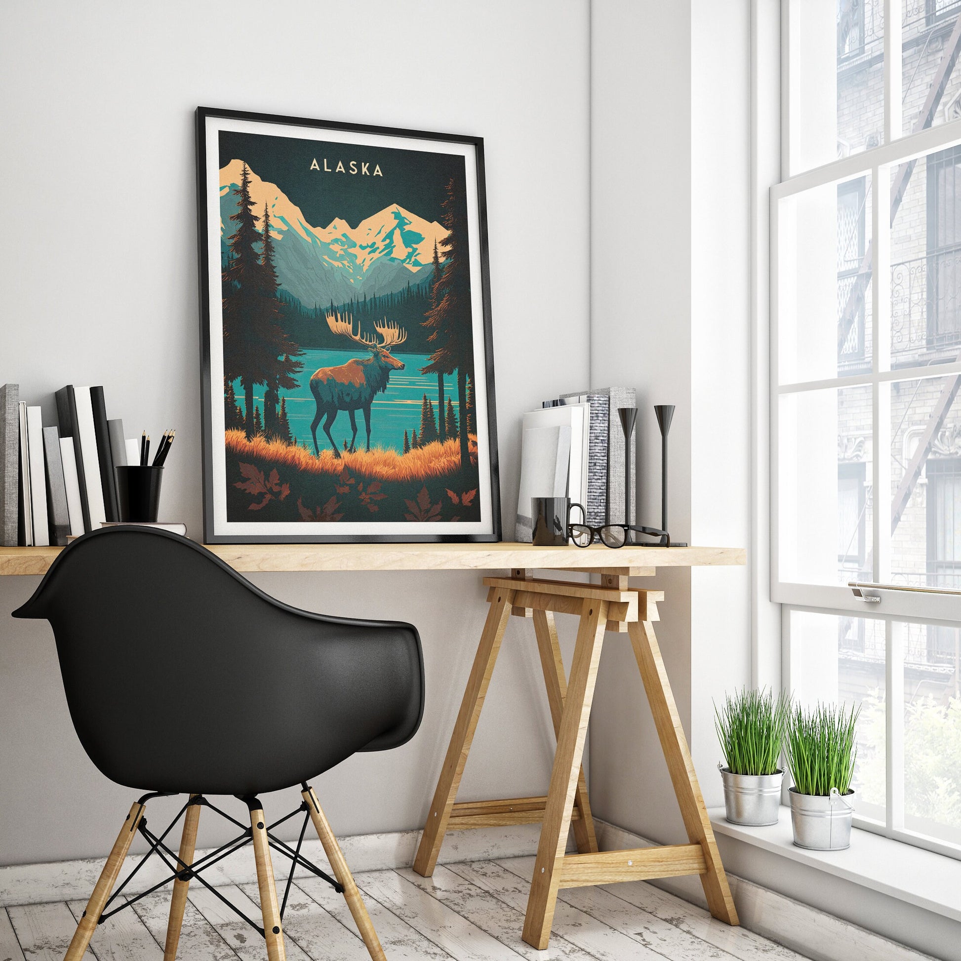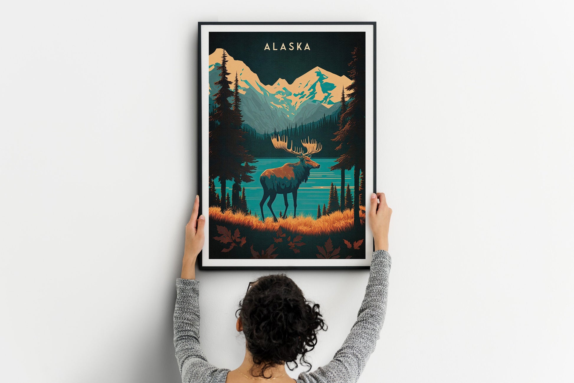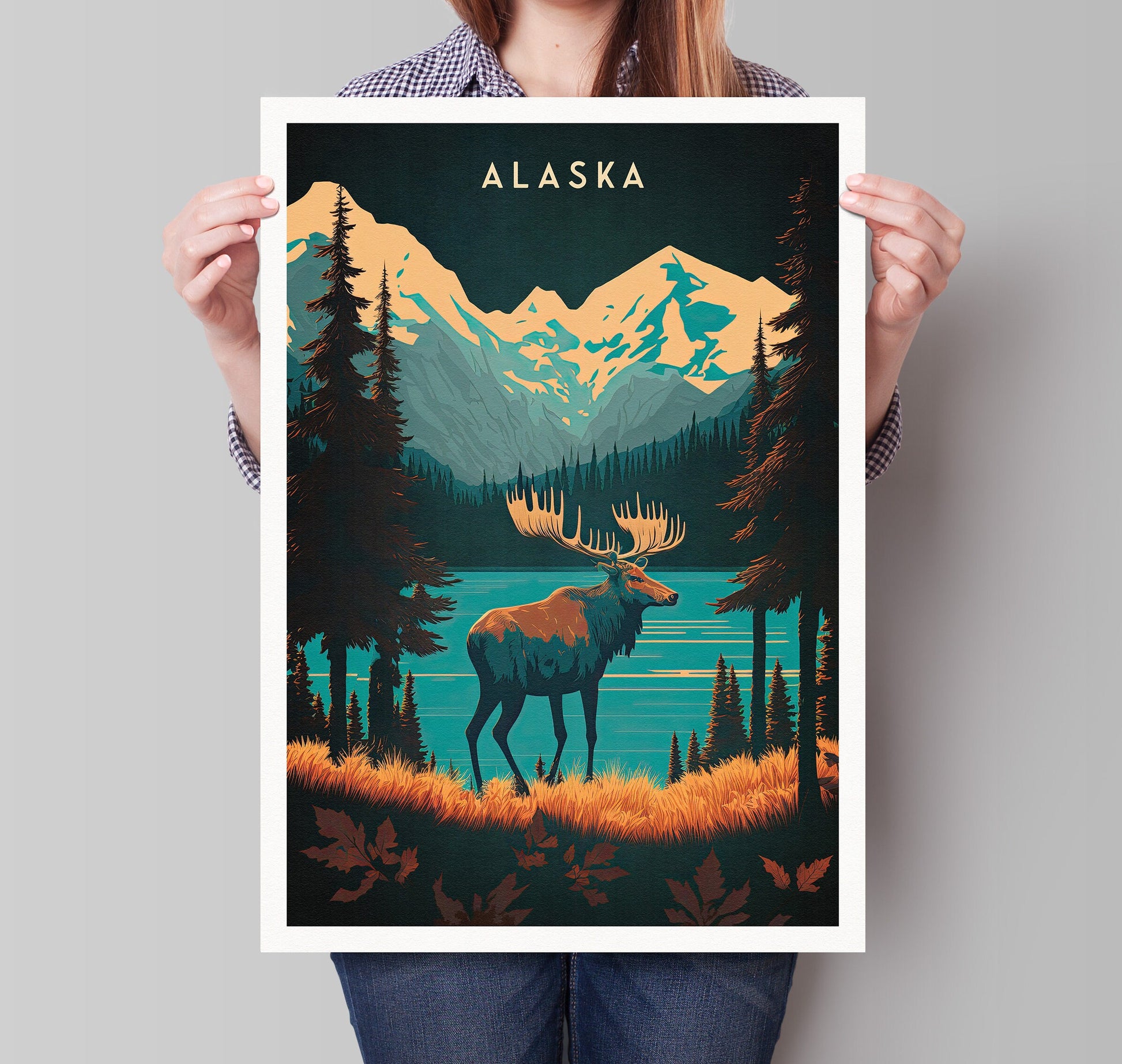 Alaska Print | Travel Poster | Moose | Alaska Gift | Birthday Present | Home Decor Artwork