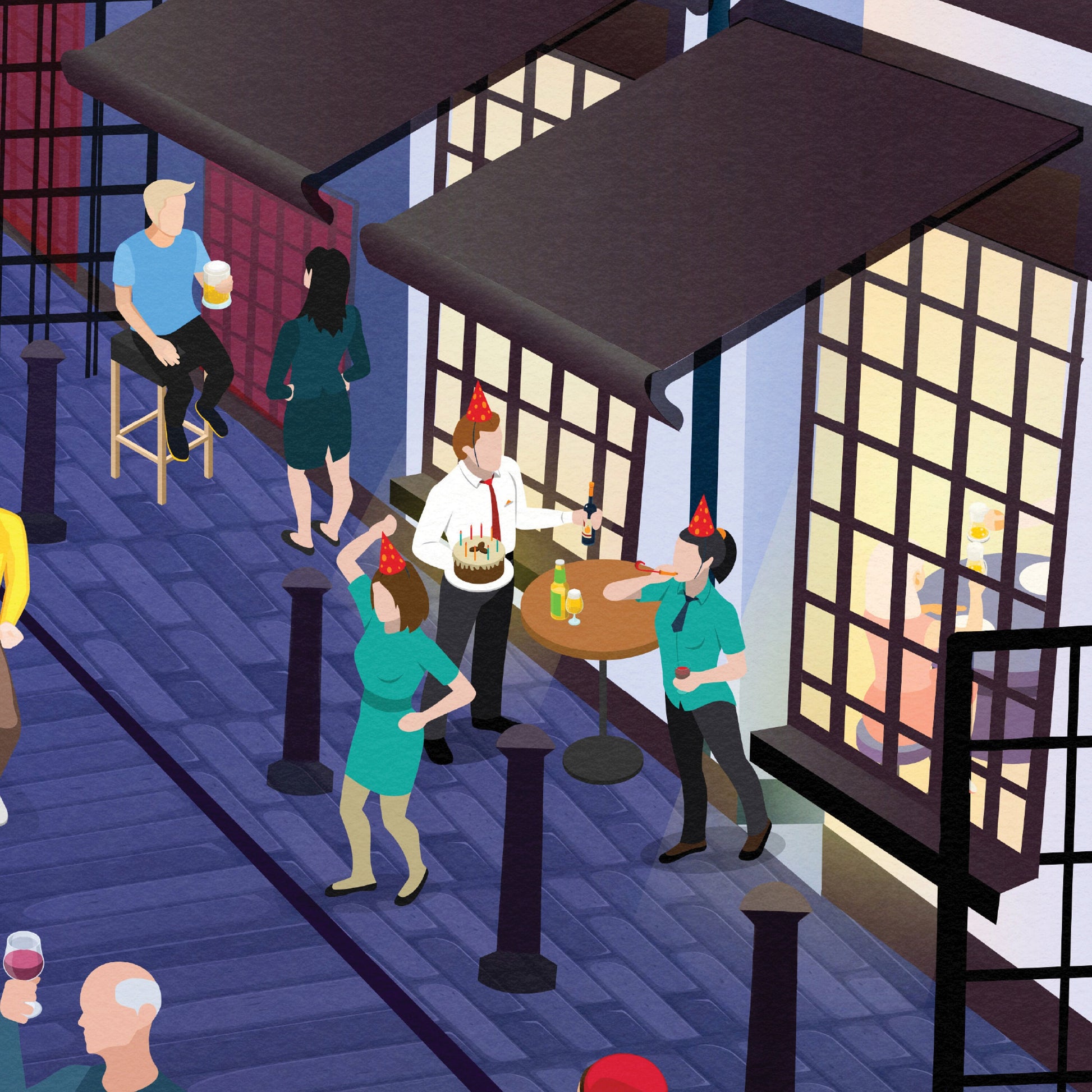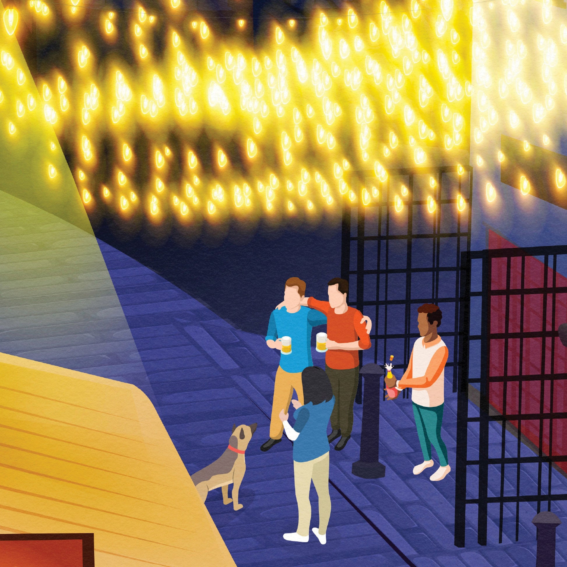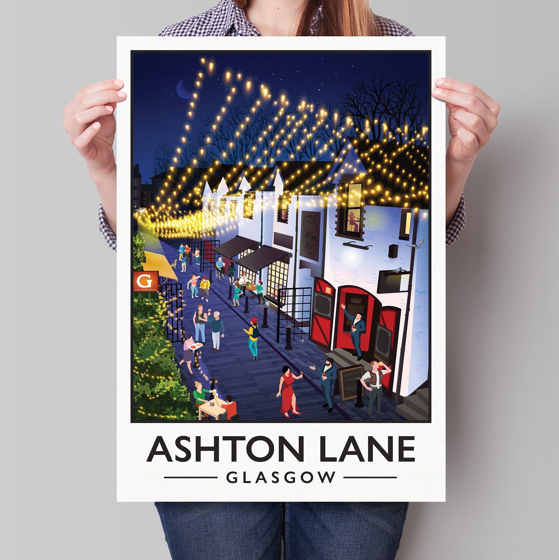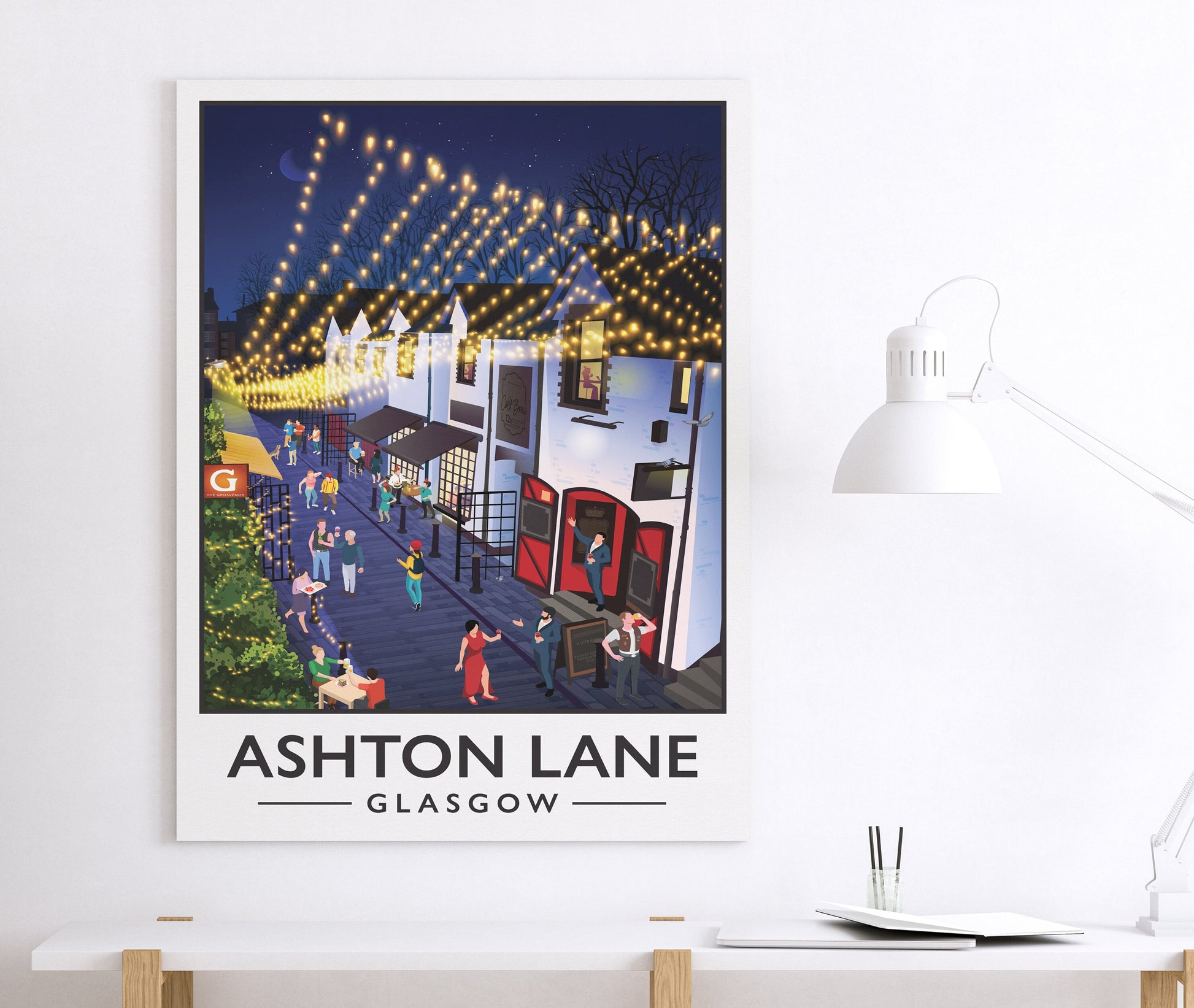 Ashton Lane Print - Glasgow West End Poster - Busy street illustration - Scottish Art