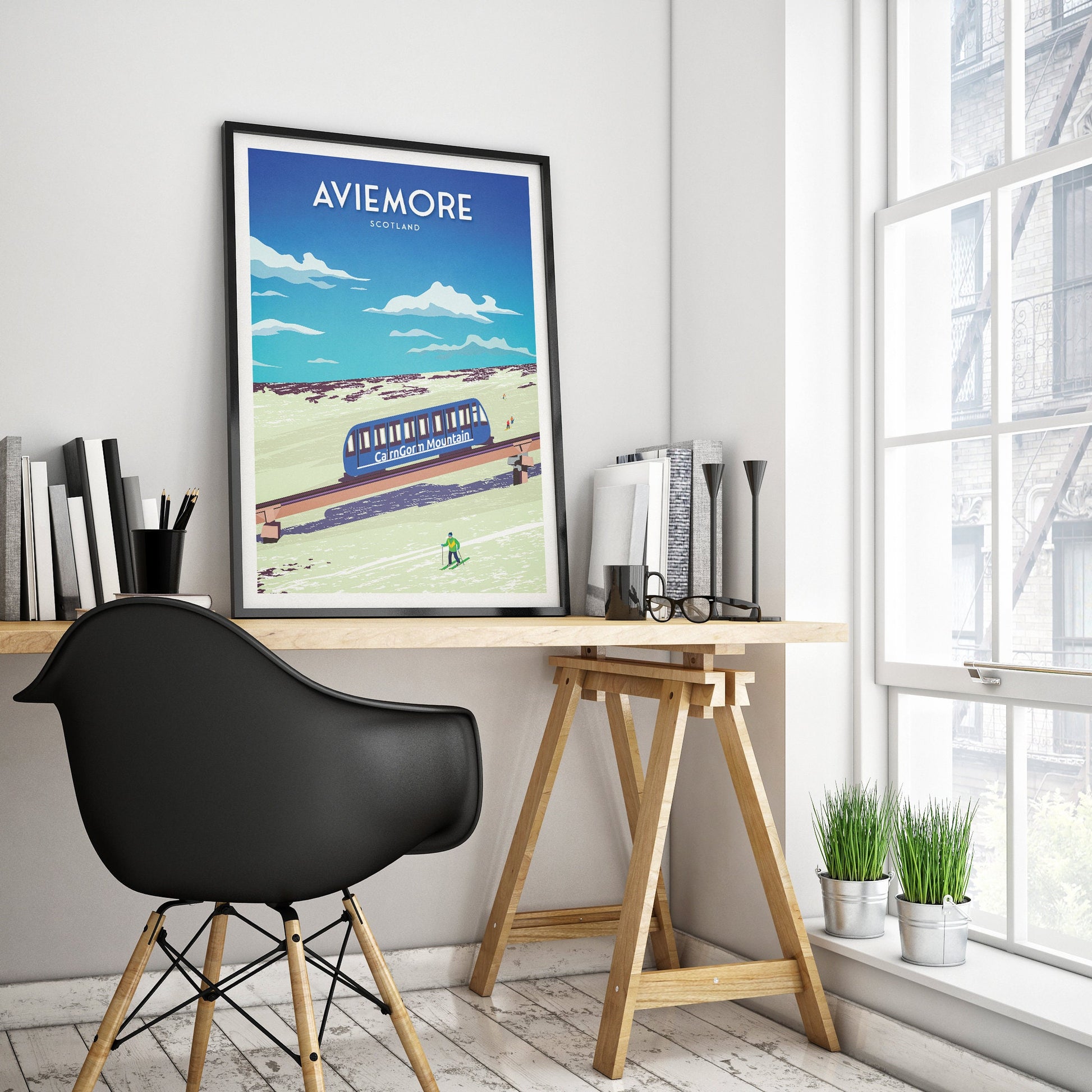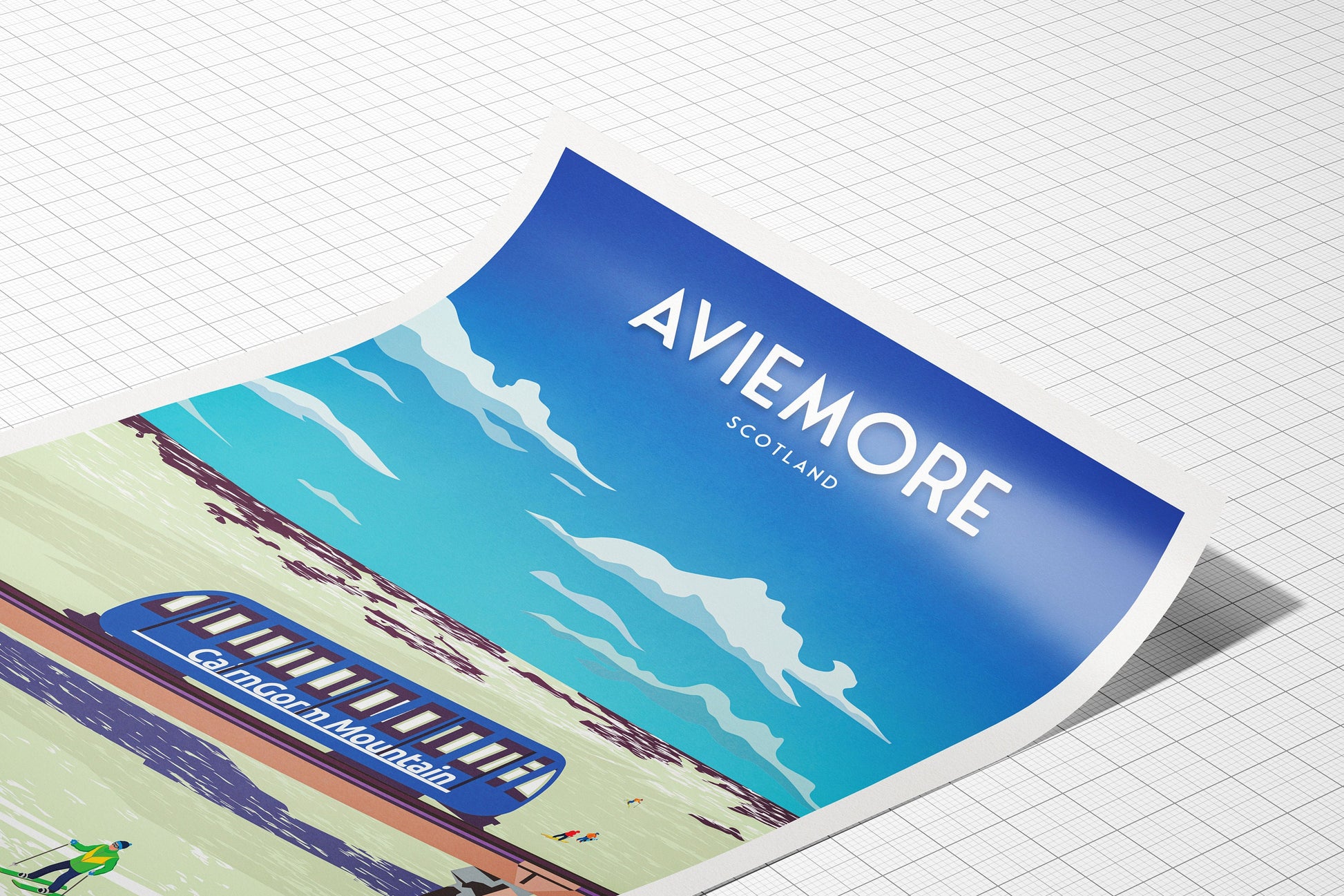 Aviemore PrintAviemore is a popular holiday destination known for it's beautiful scenery and abundance of things to do for all ages, including skiing in the Cairngorms. Available as:A3: 16.5 x 11.7 inches