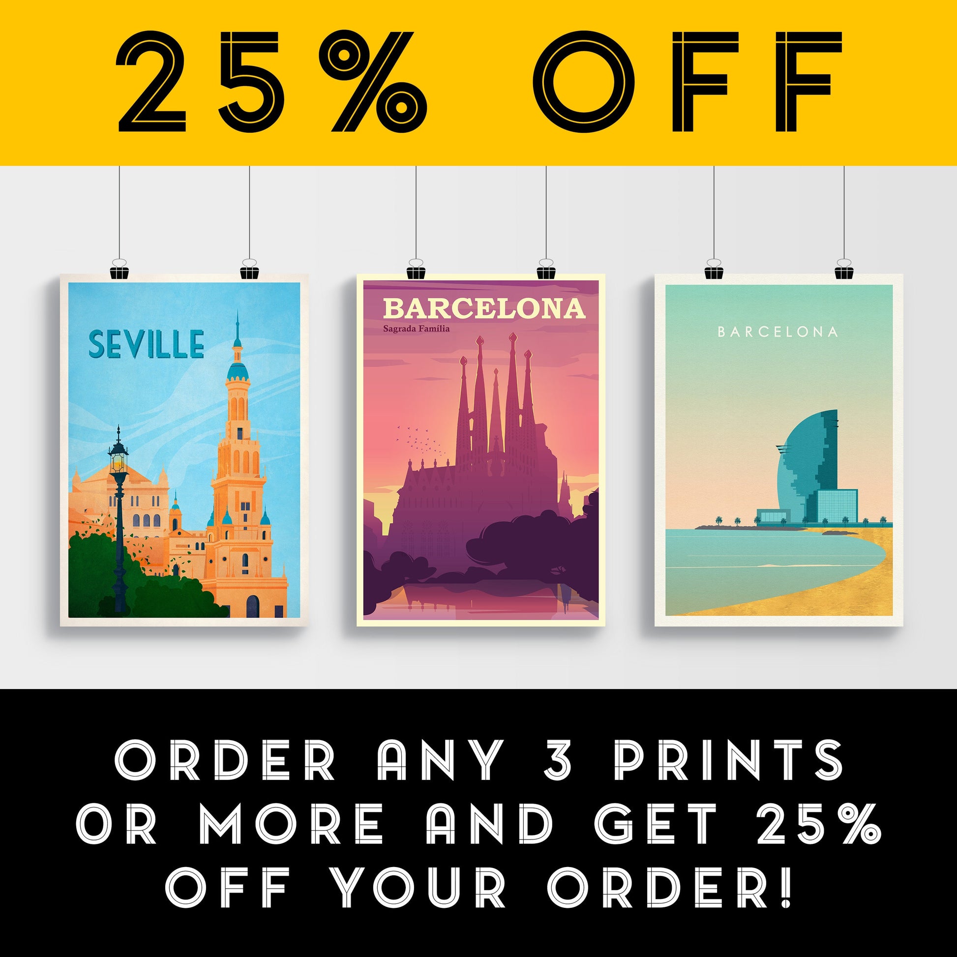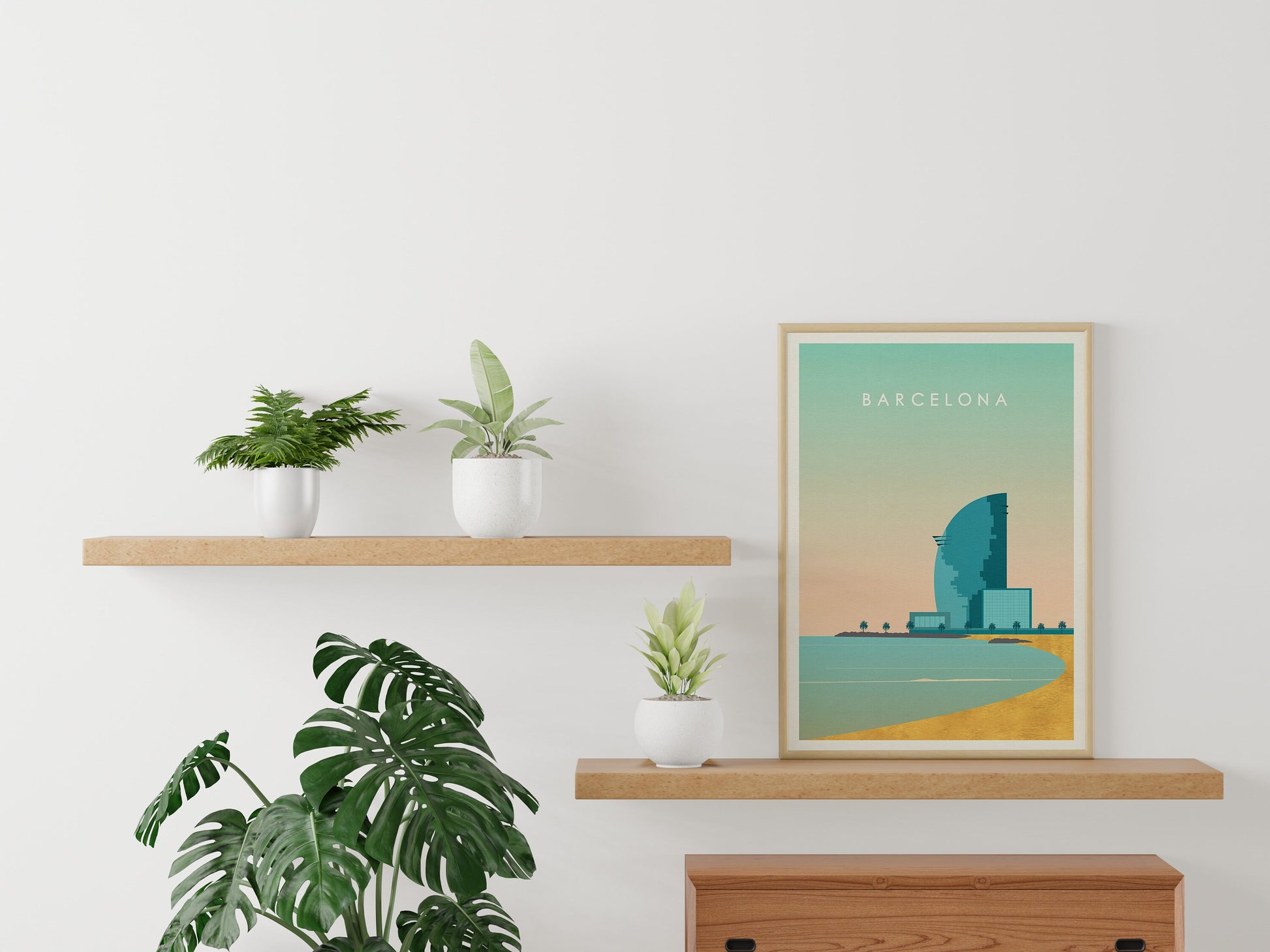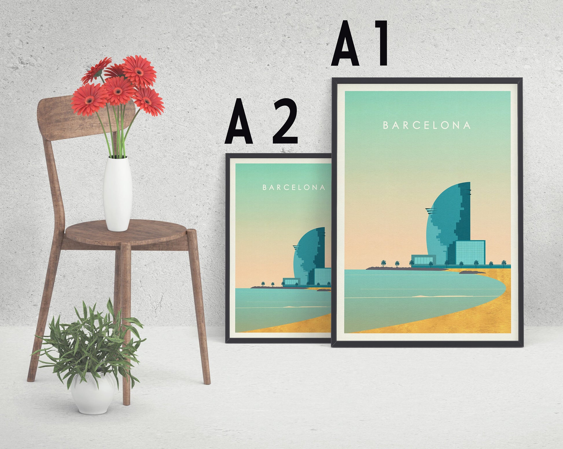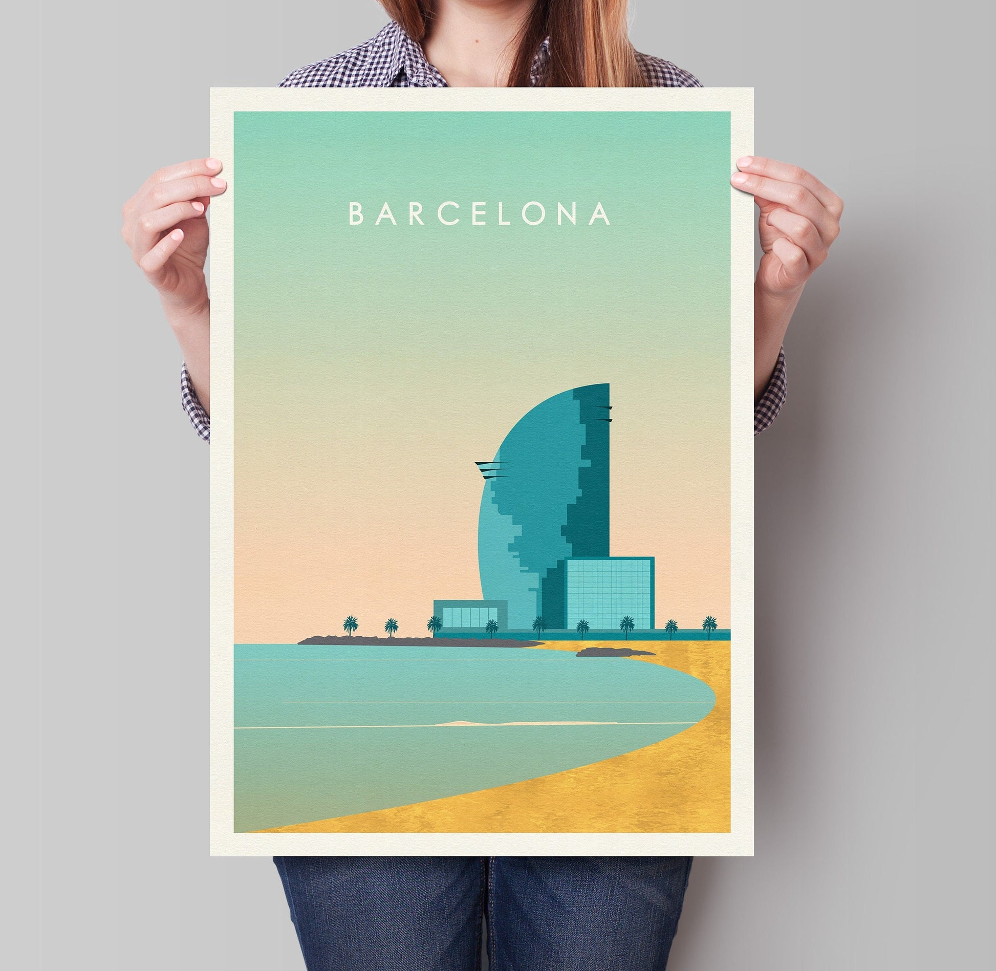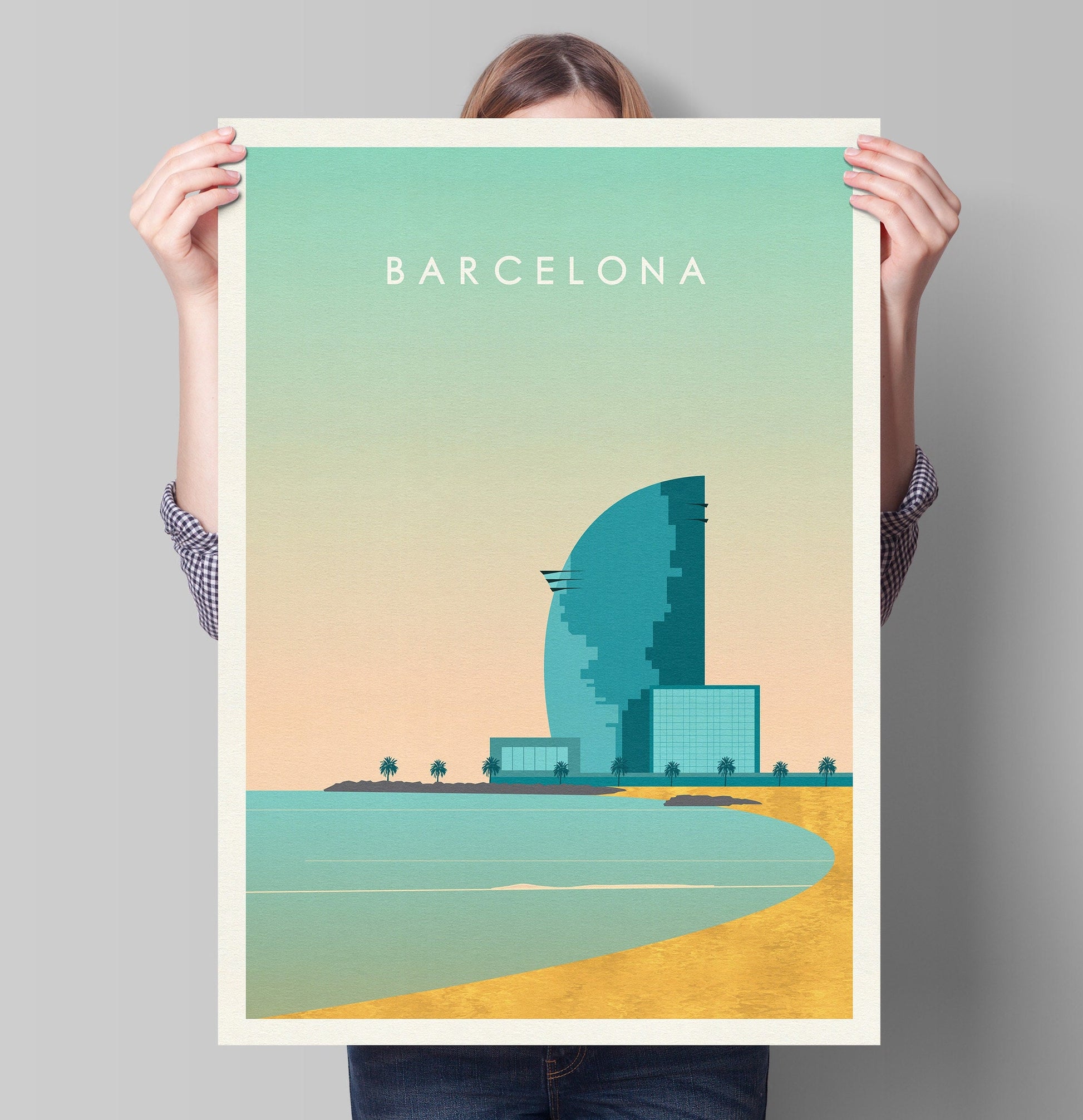 Barcelona Travel Poster, retro travel poster, Housewarming Gift