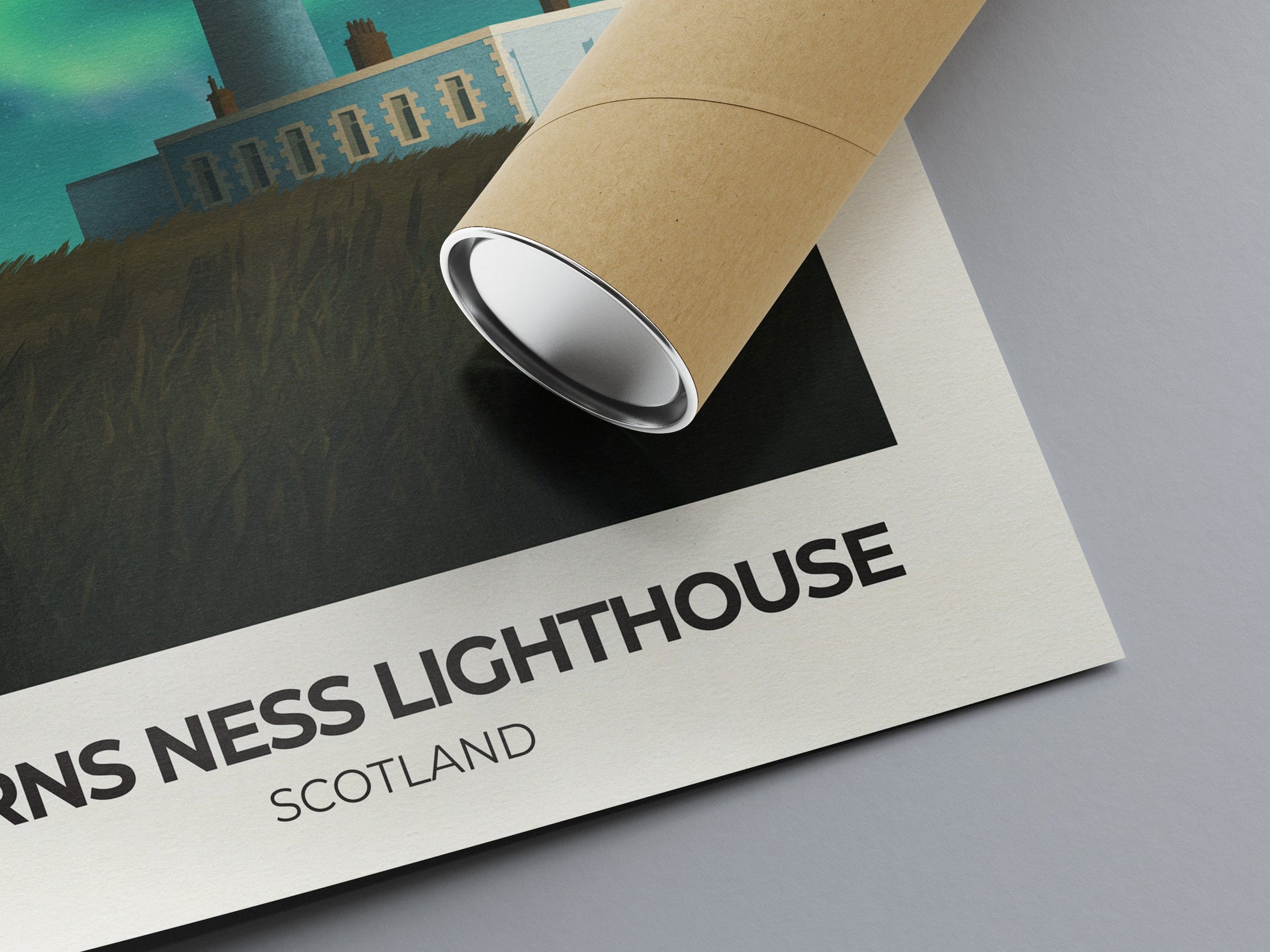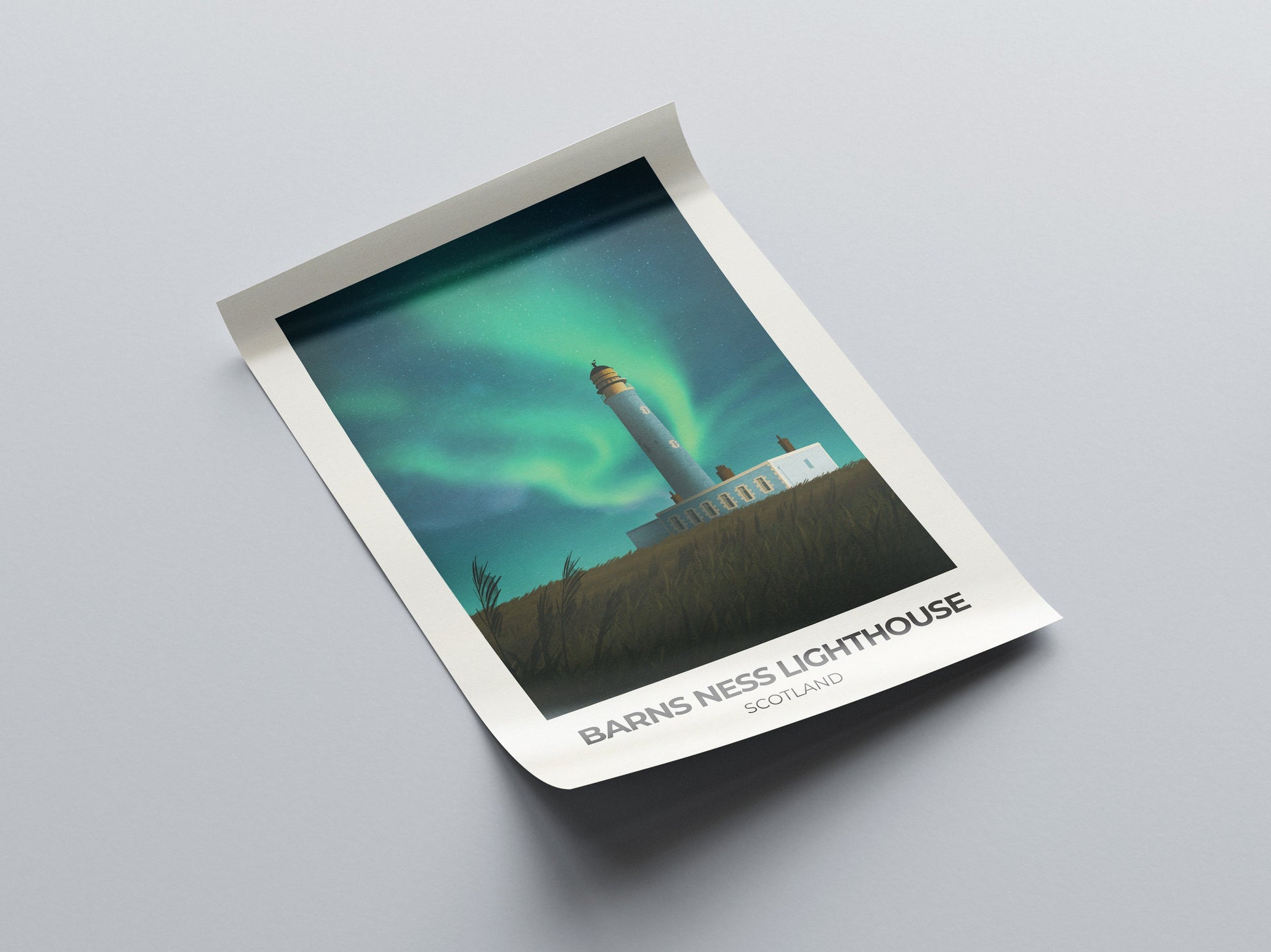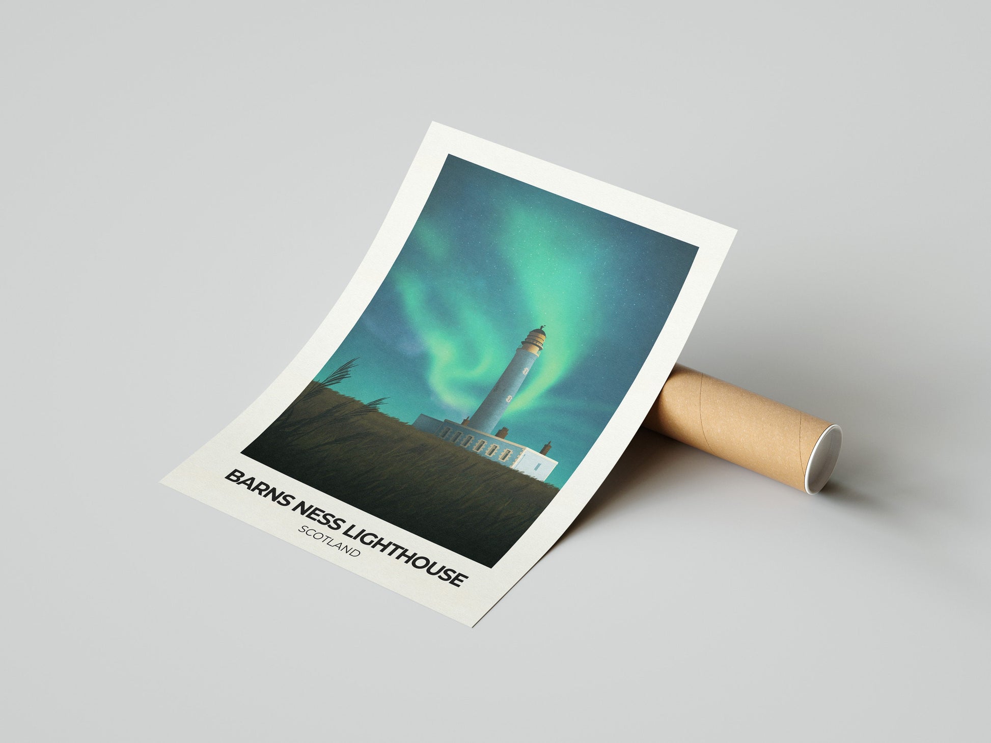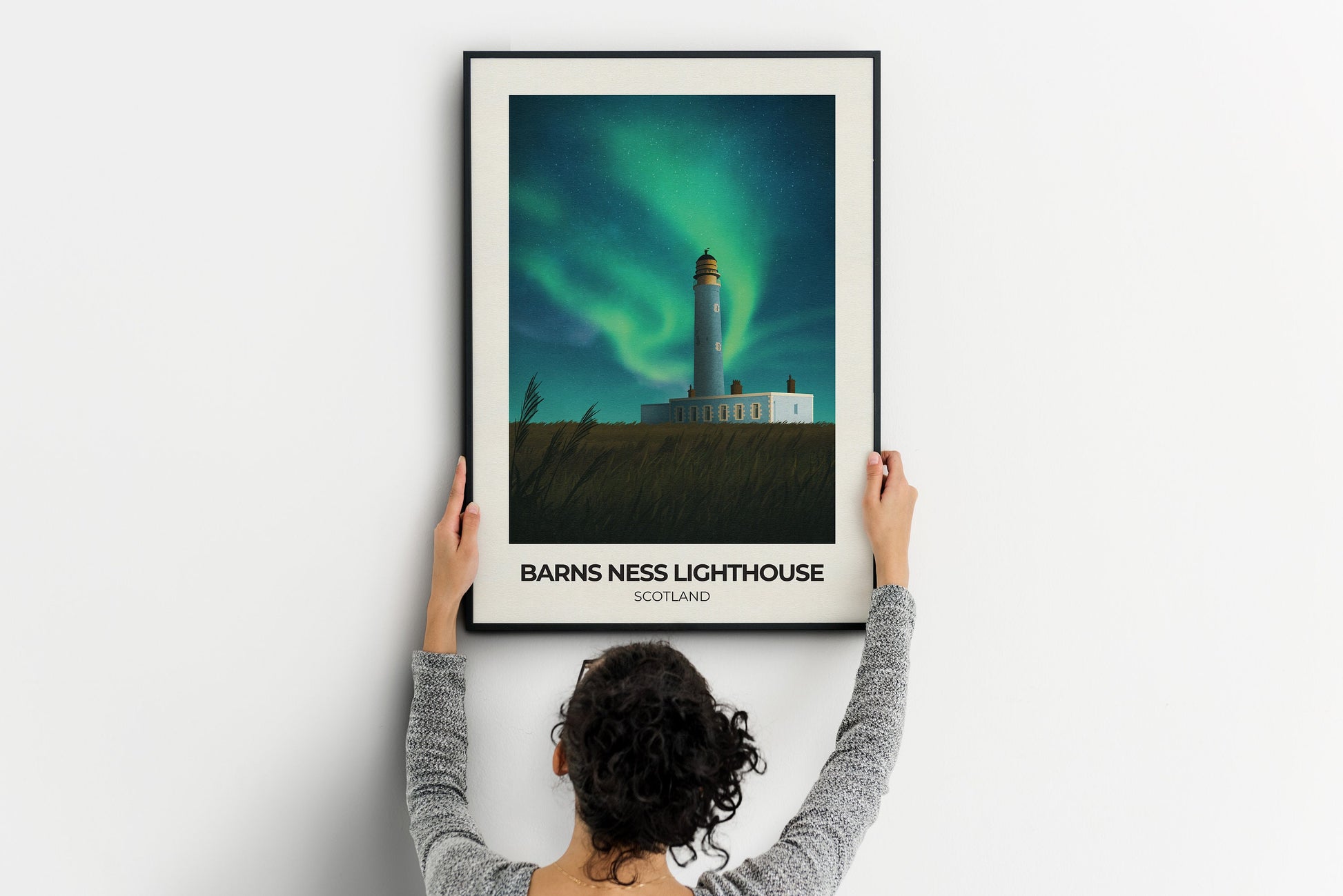Barns Ness Lighthouse featuring the Northern Lights - Travel Poster Wall Art
