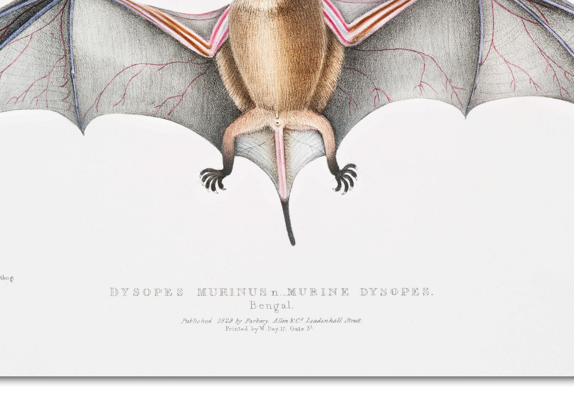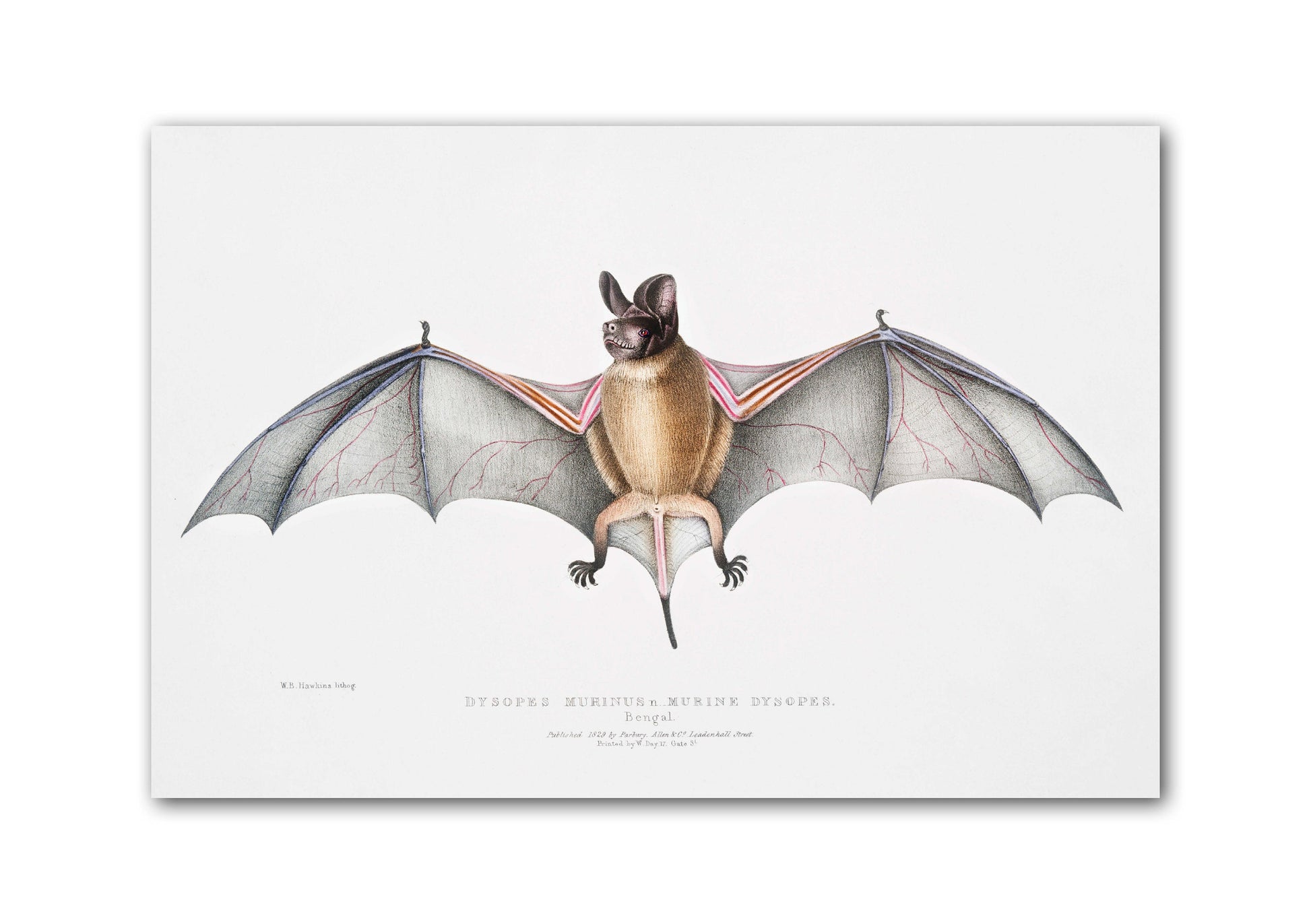 Bat PrintMurine Dysopes (Dysopes Murinus) from Illustrations of Indian zoology (1830-1834) by John Edward Gray (1800-1875).24 x 16 inches or 36 x 24 inchesAvailable in matt or silkThe print is ready for framing, no additional trimming is necessary - just place the print into the frame of your choice for a beautiful art display. The print will be carefully packaged in a protective sleeve and shipped in a sturdy postal tube.Please note, frame is not included.For orders outside UK please expect delivery between 2 to 4 weeks