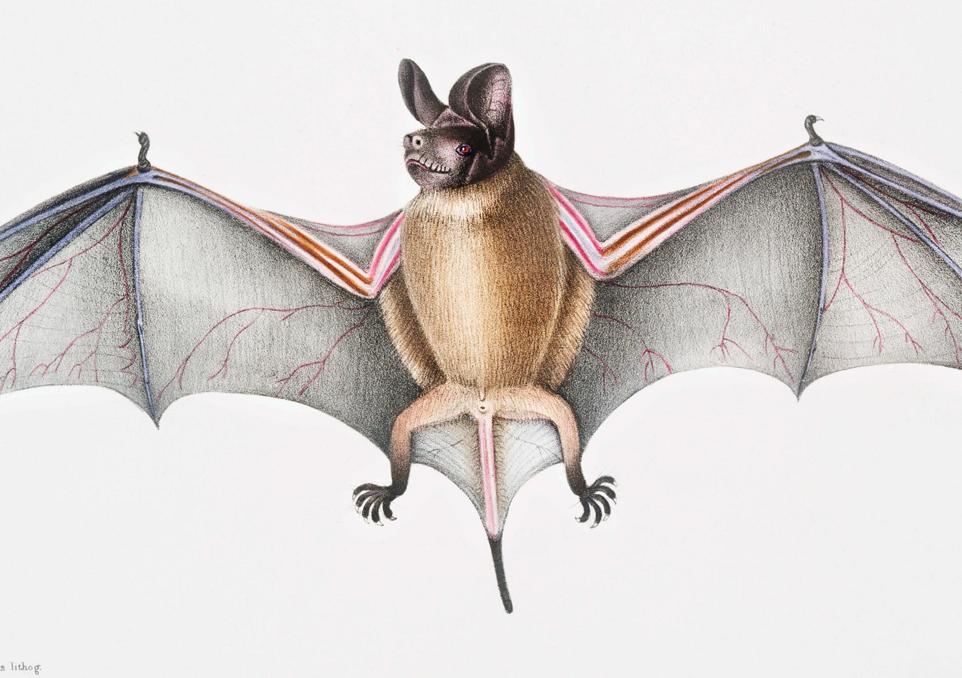 Bat Illustration | Murine Dysopes (Dysopes Murinus) from Illustrations of Indian zoology (1830-1834) by John Edward Gray | Zoology Print