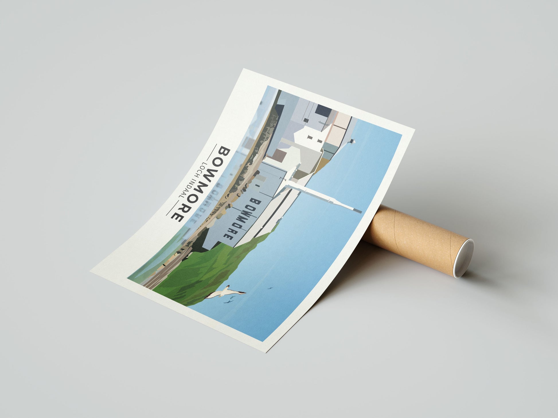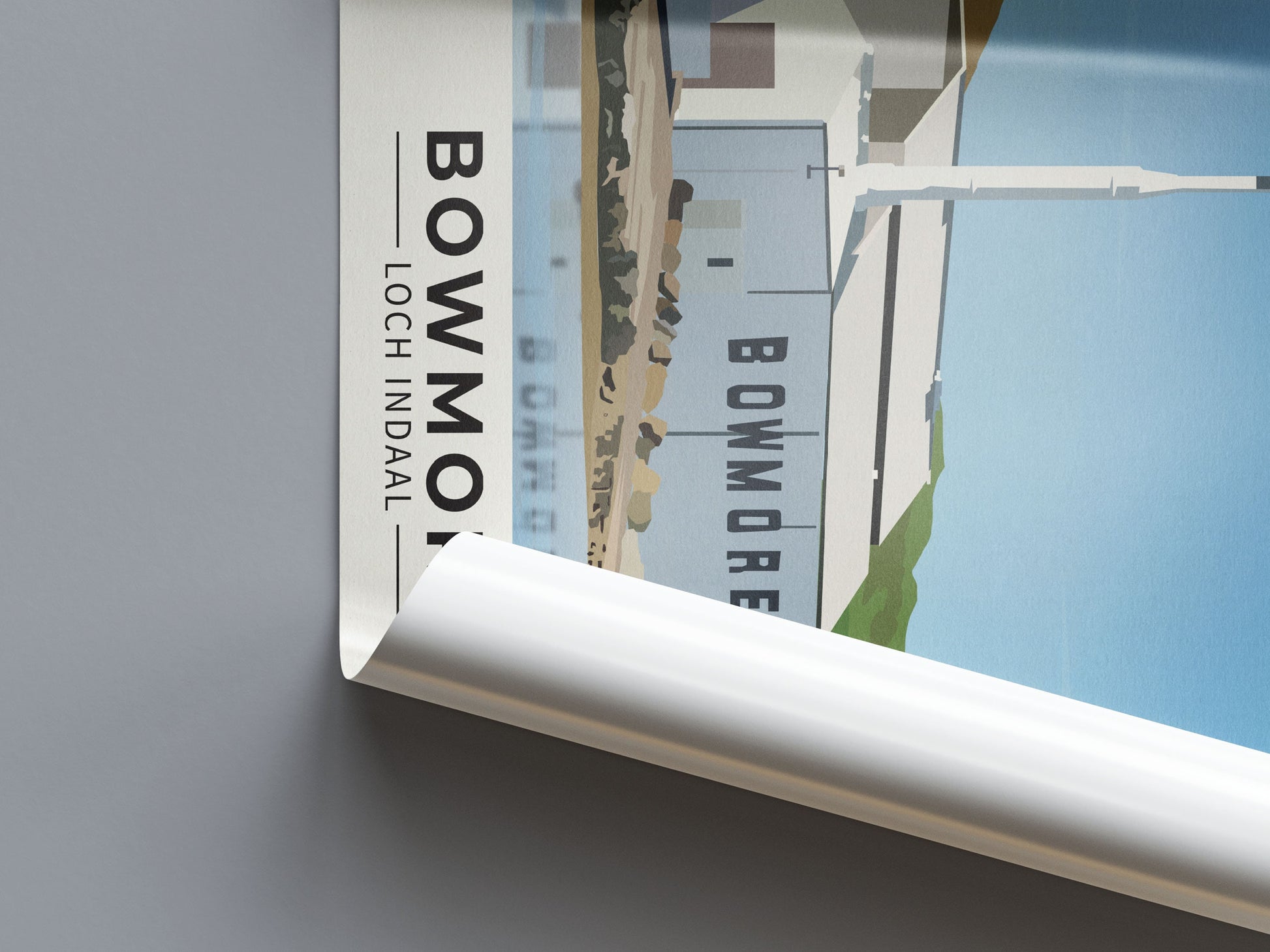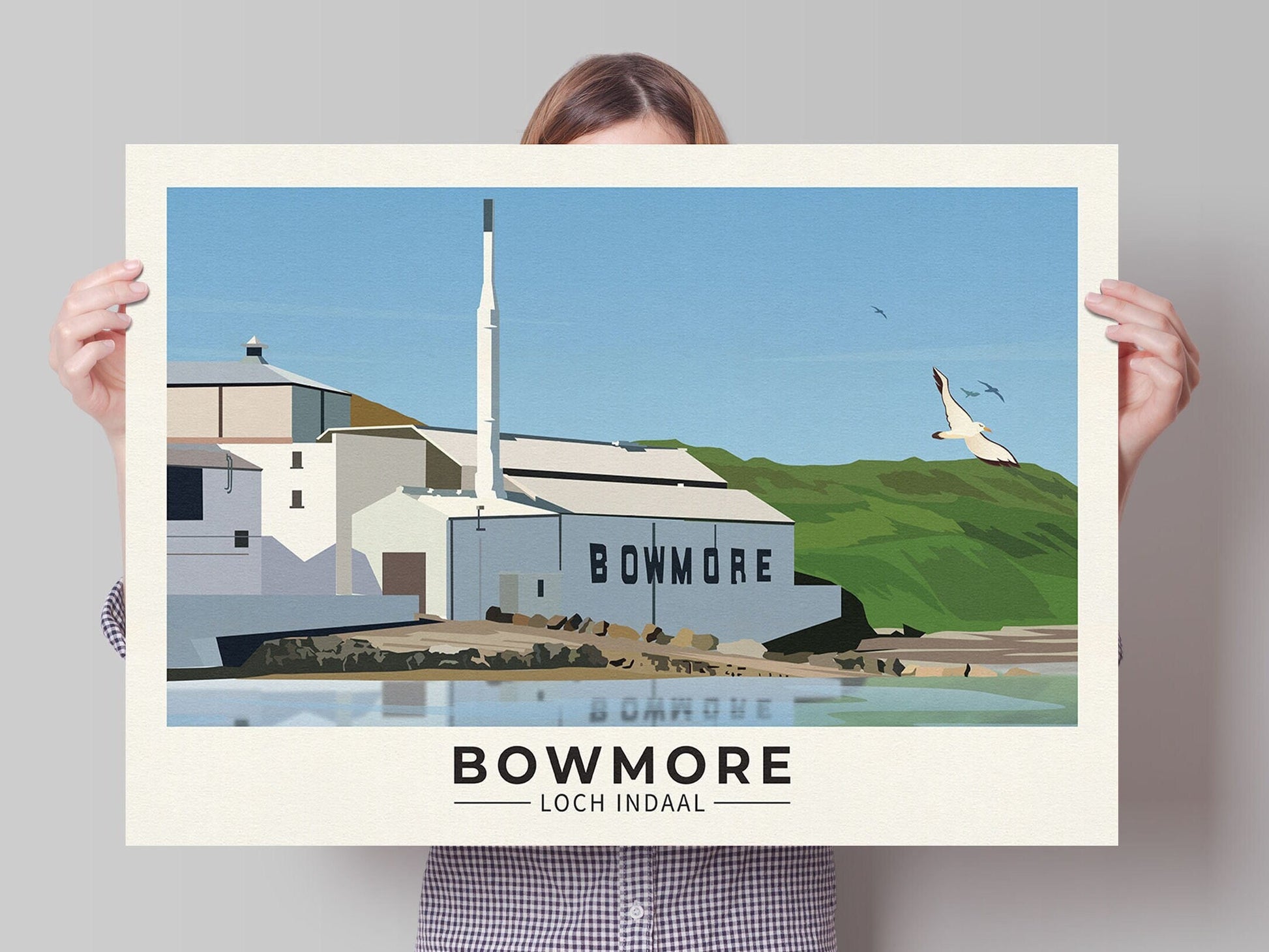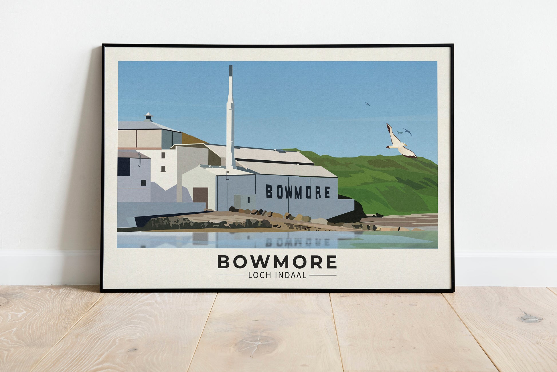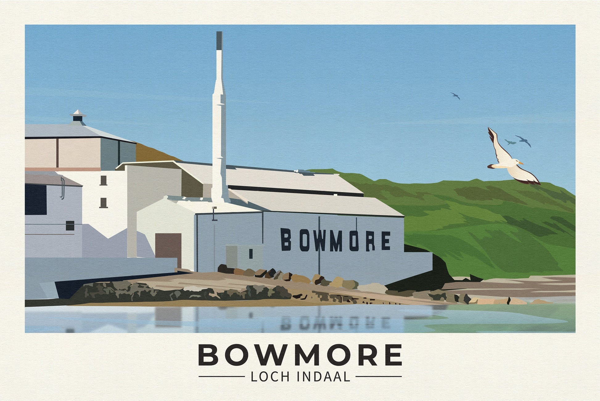 Bowmore Distillery IllustrationThis is an illustrated print of the Bowmore Distillery that produces Scotch whisky on the Isle of Islay, an island of the Inner Hebrides. The distillery, which lies on the South Eastern shore of Loch Indaal, is one of the oldest in Scotland and is said to have been established in 1779.