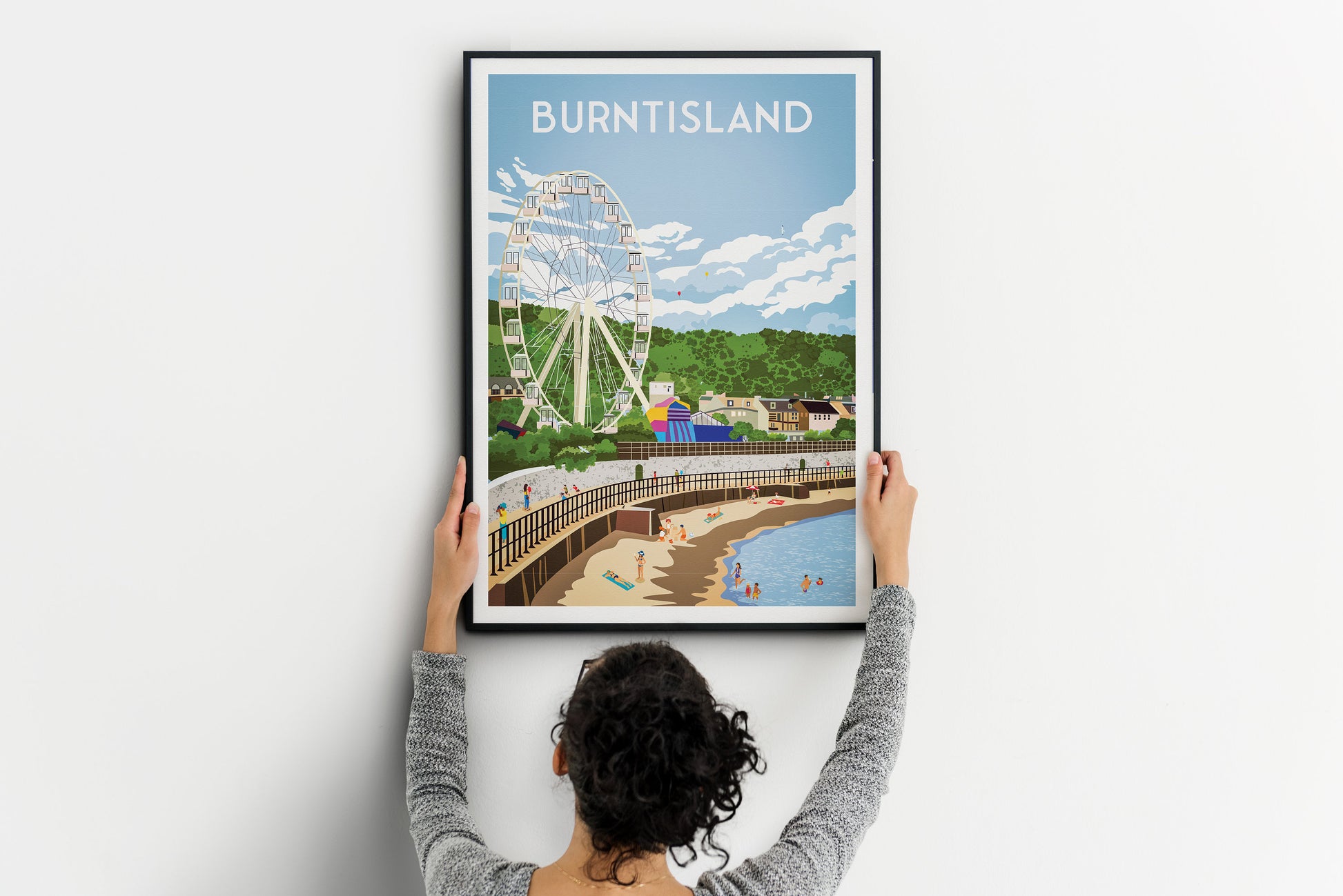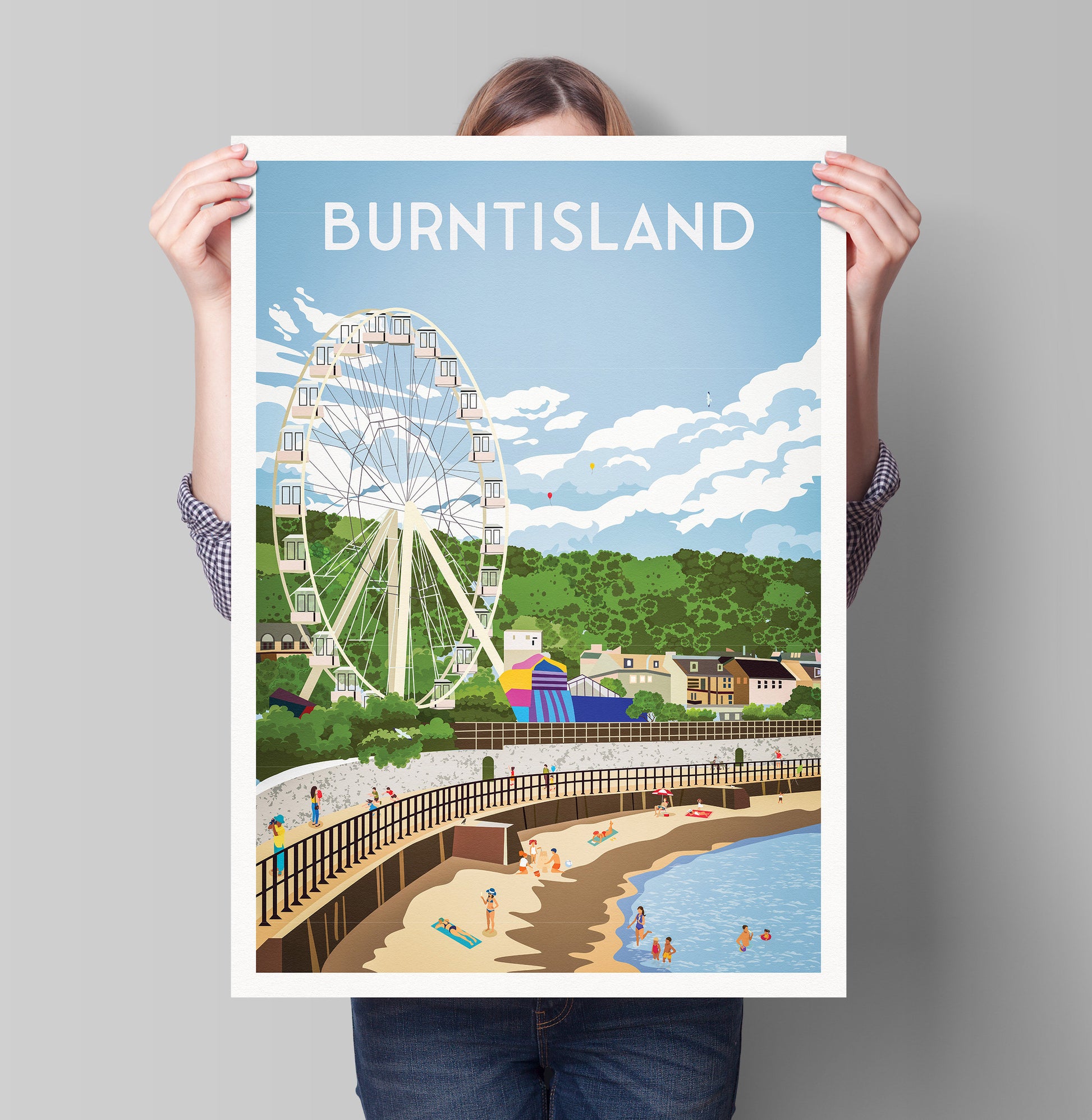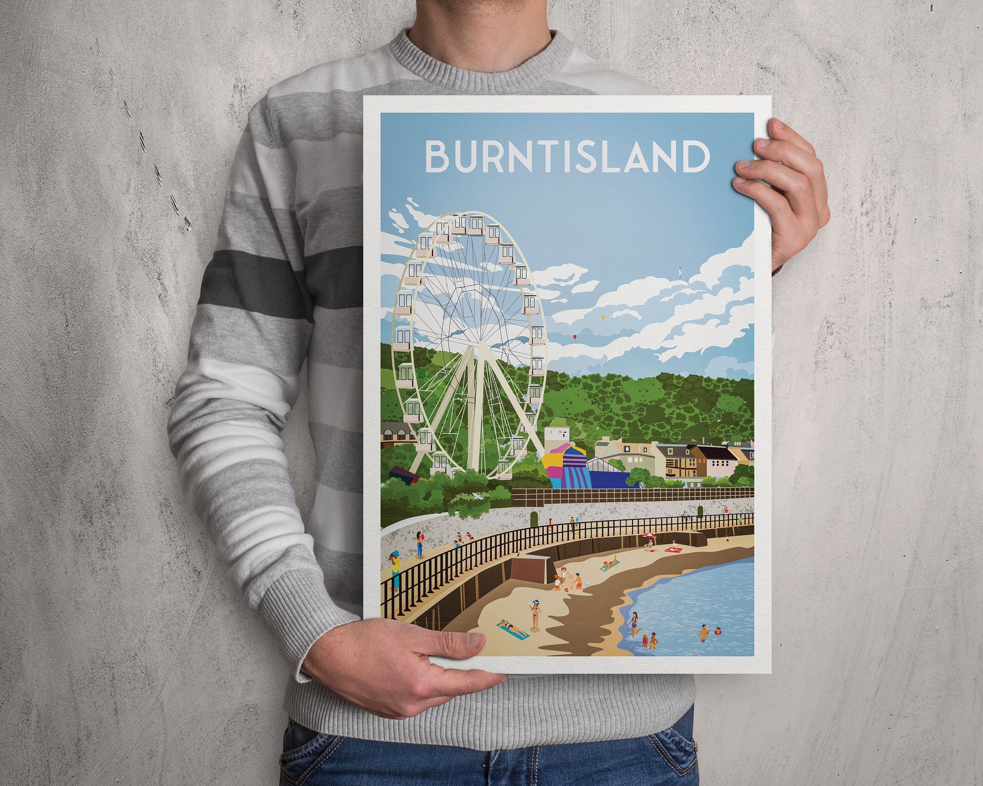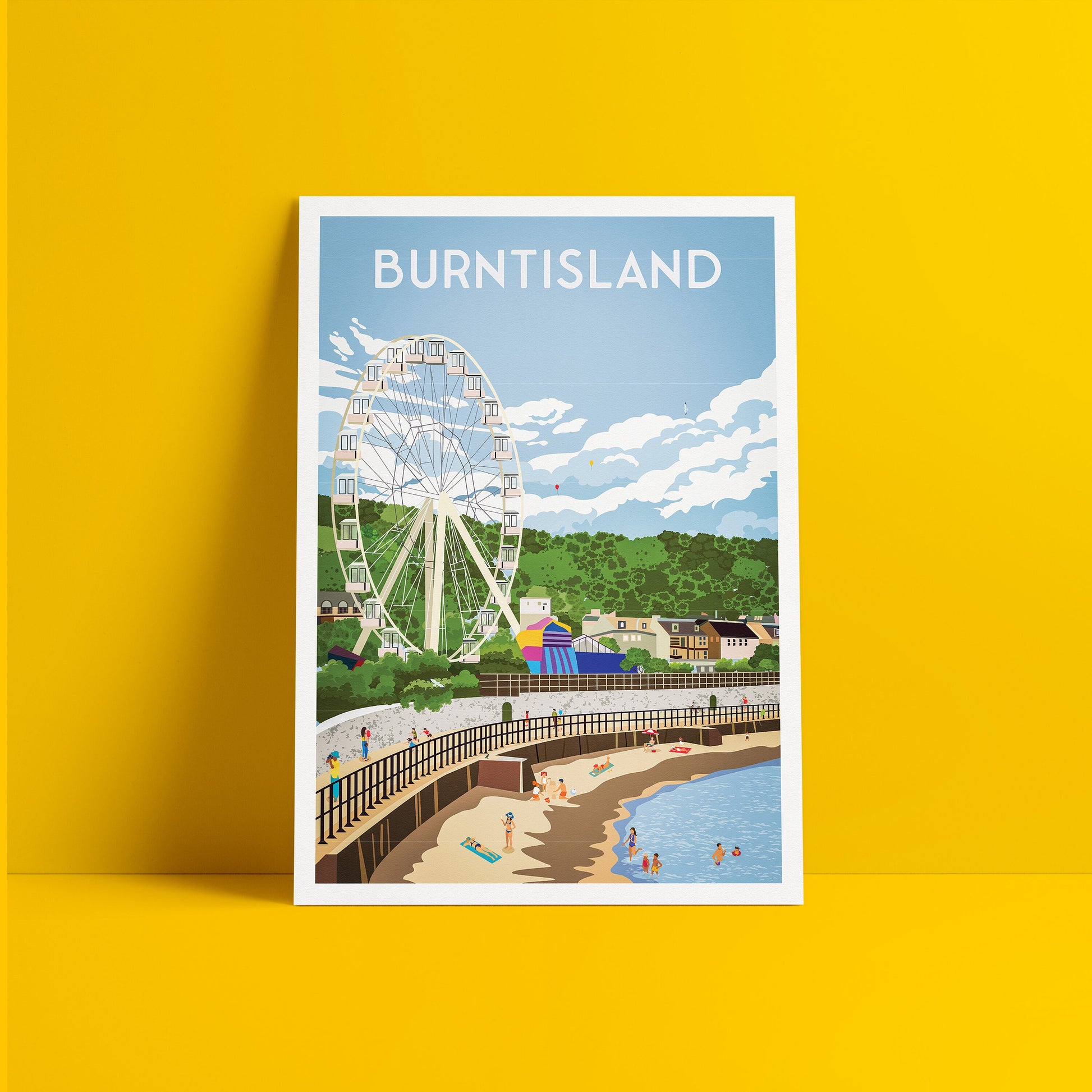 Burntisland Beach PrintColourful illustration of the Aberdour Burntisland Beach featuring the big wheel and plenty of sunbathers and sea lovers.Available as:A3: 16.5 x 11.7 inches