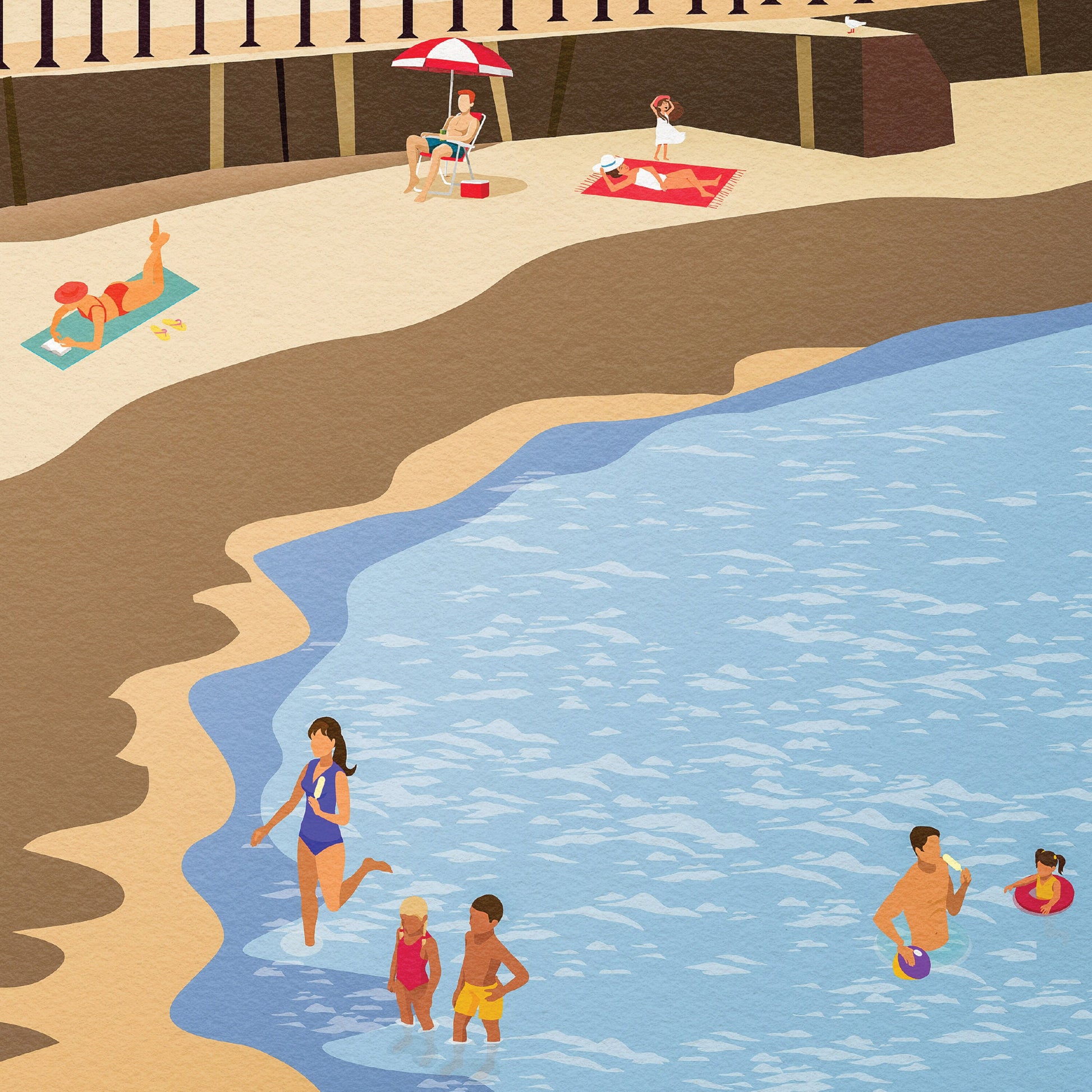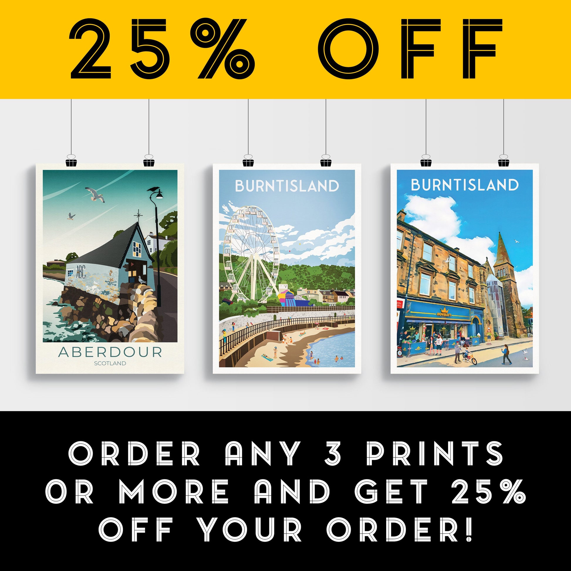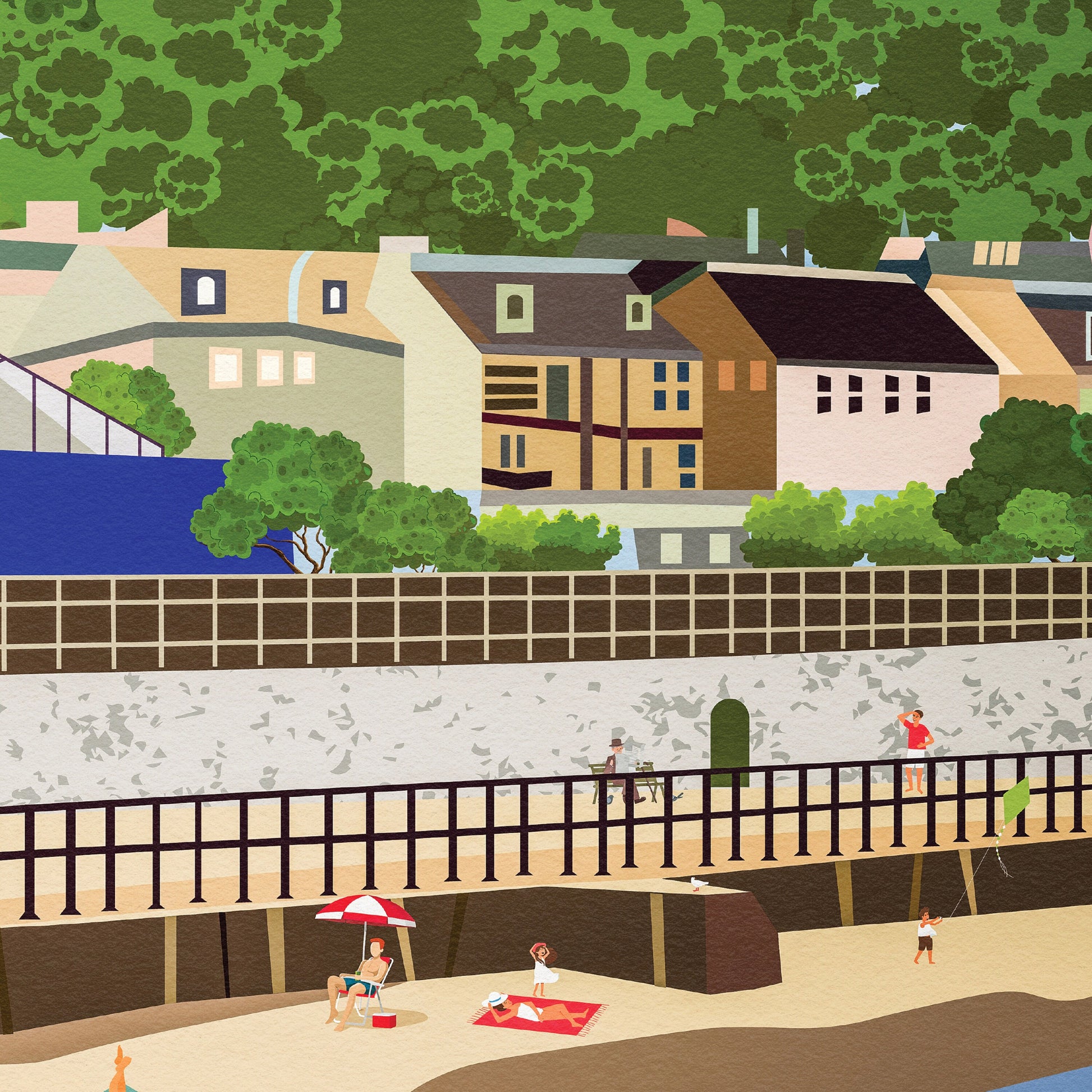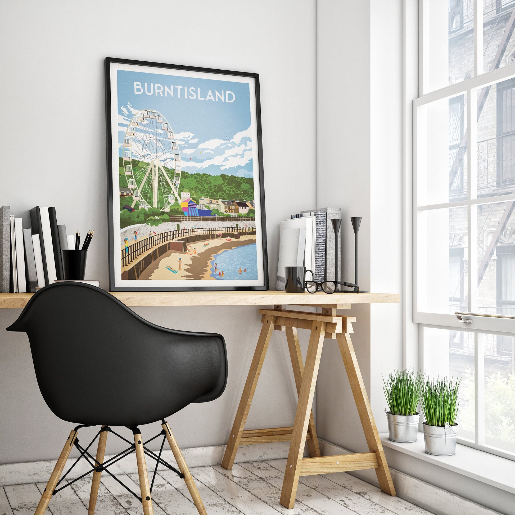 Burntisland Beach PrintColourful illustration of the Aberdour Burntisland Beach featuring the big wheel and plenty of sunbathers and sea lovers.Available as:A3: 16.5 x 11.7 inches