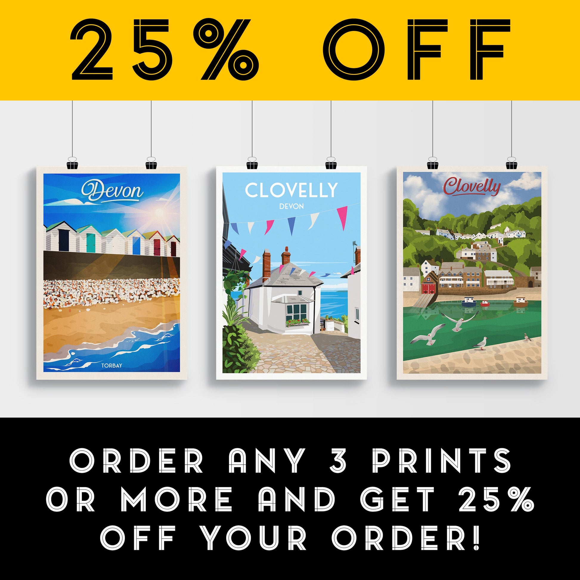 Clovelly Travel Poster - North Devon English landscape - Devon Art Print - Wall Art - Fishing Village
