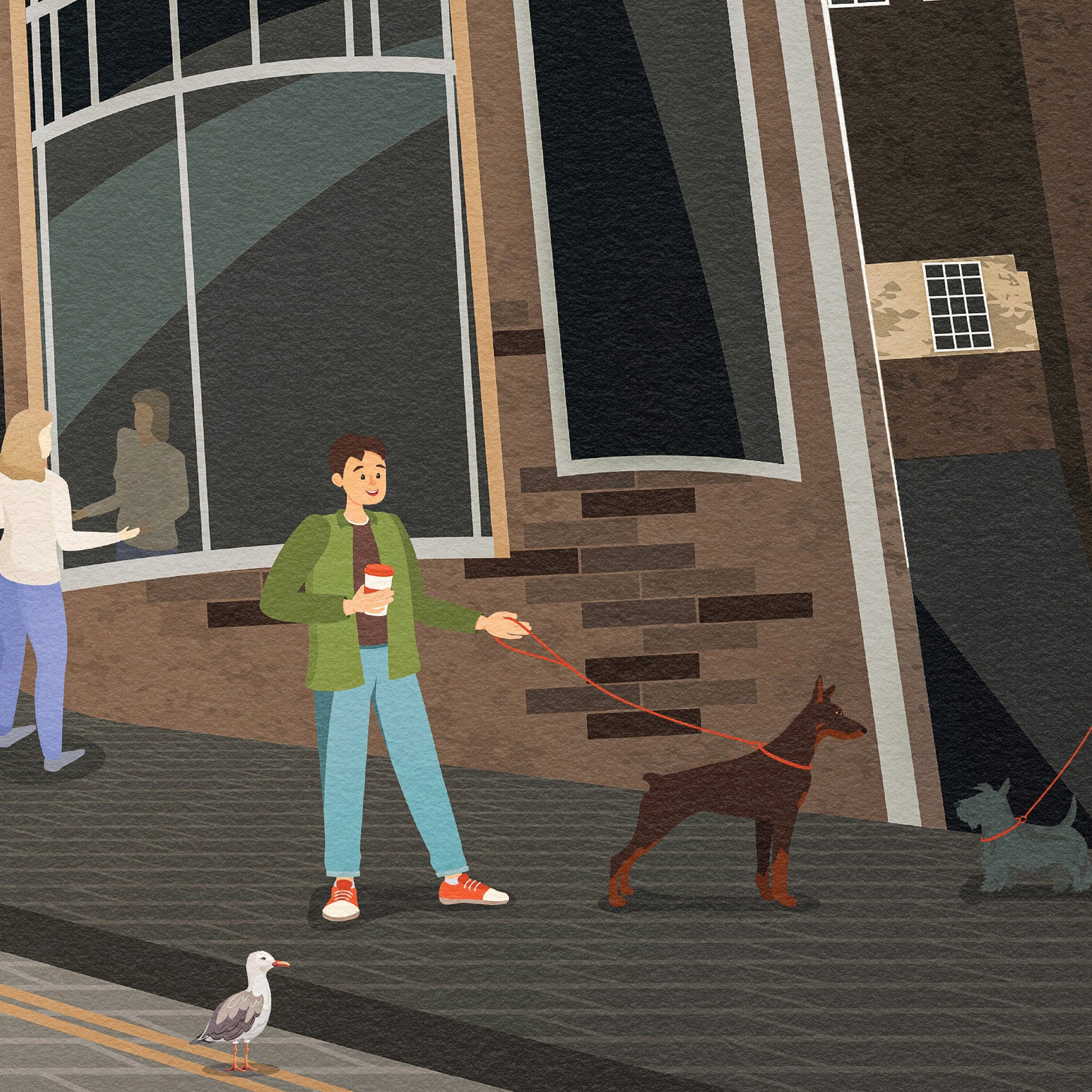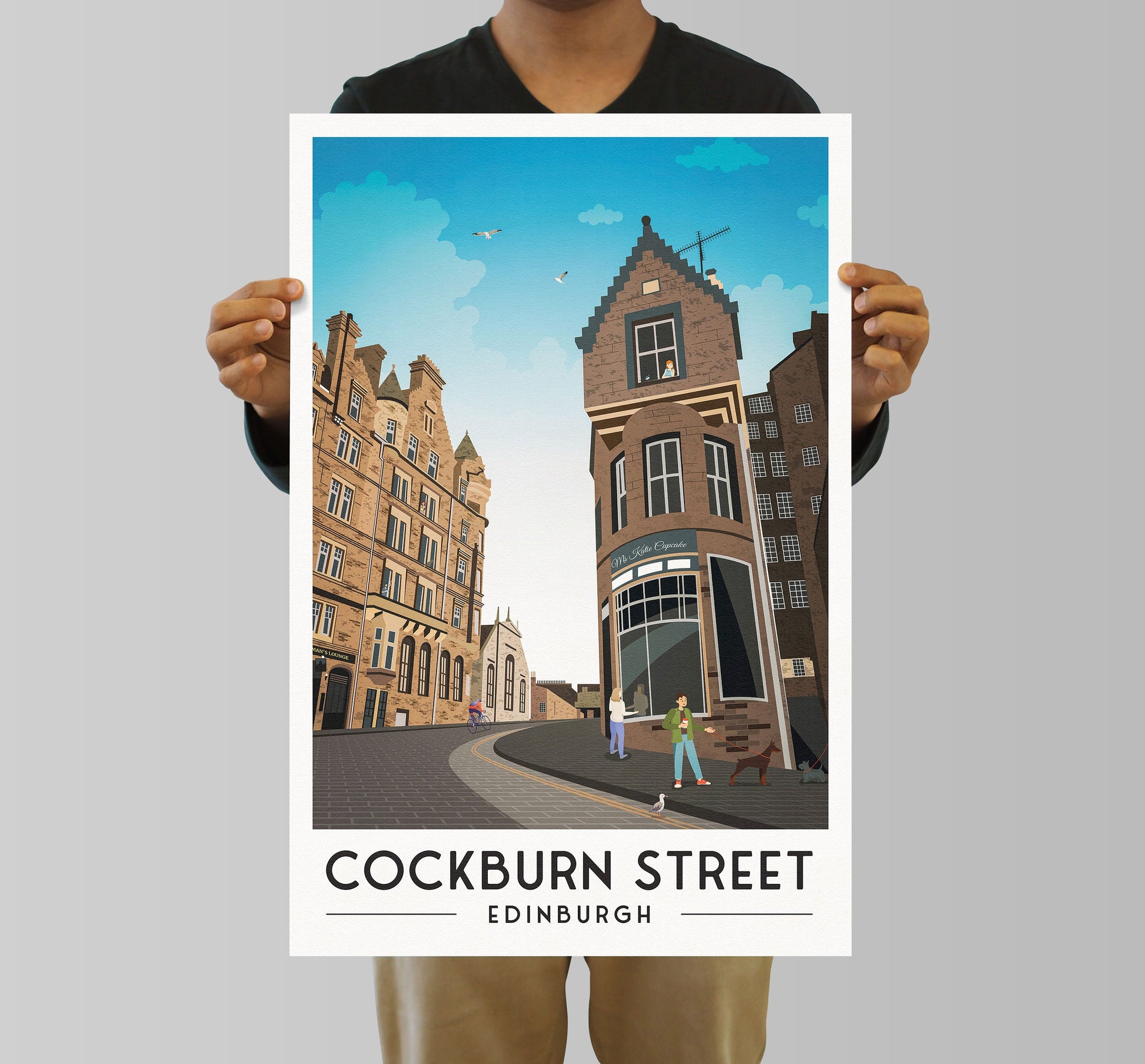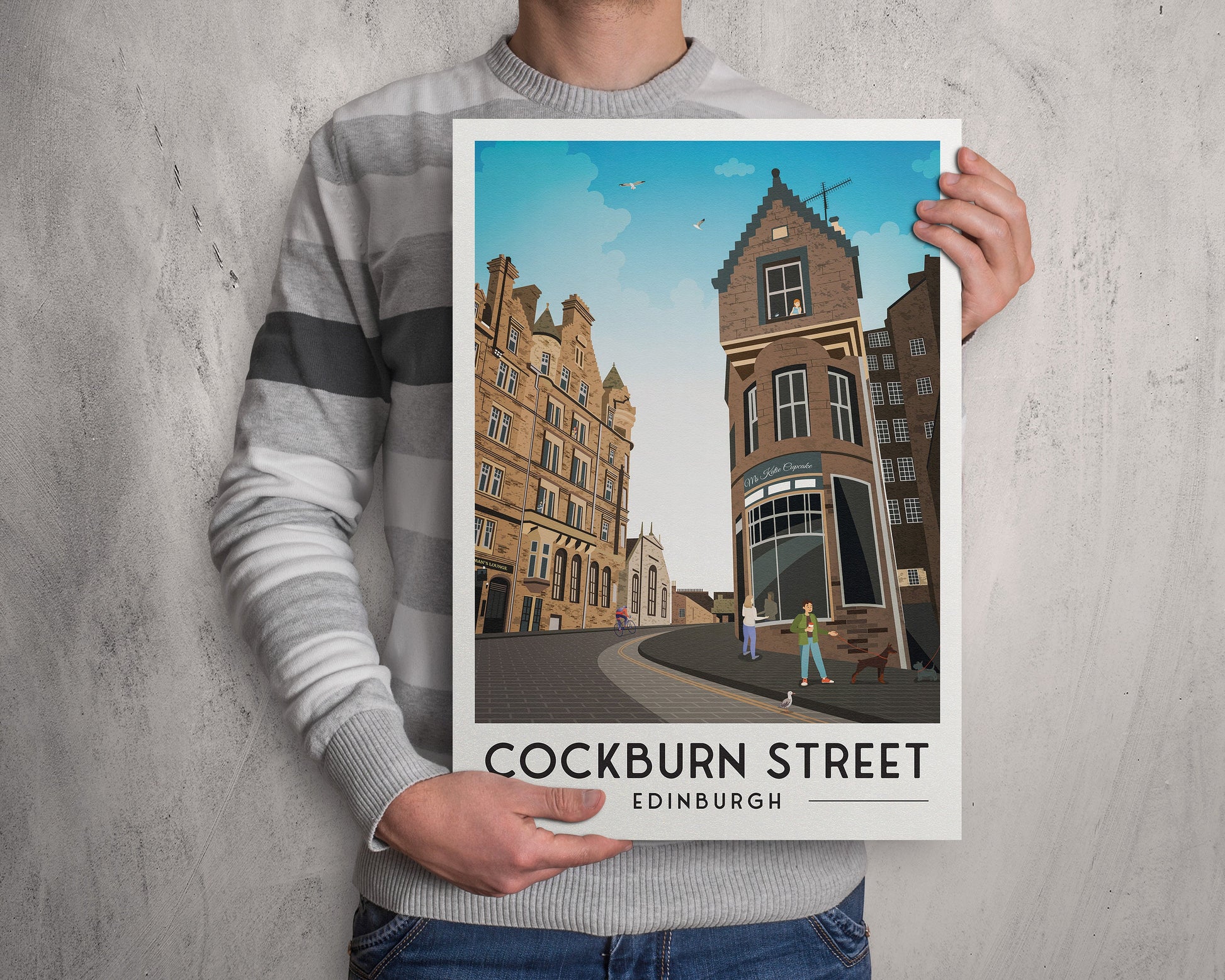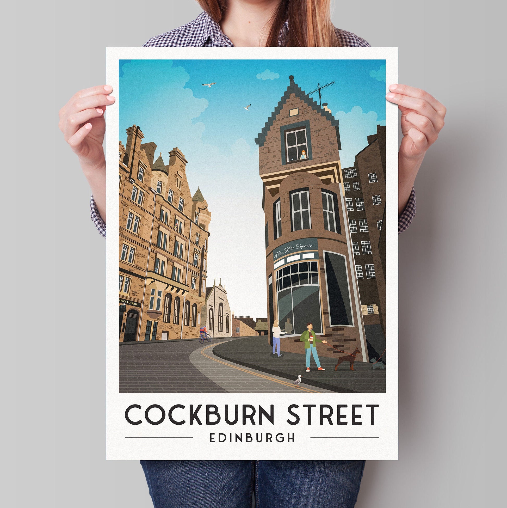 This would make for a perfect gift for someone from Edinburgh or who enjoyed a trip there. Cockburn Street is a picturesque street in Edinburgh's Old Town. The street was sliced through the previous medieval pattern of closes in order to give a more gentle gradient and wider thoroughfare to Waverley Station . This illustration depicts an average day with Edinburgh citizens walking their dogs, cycling and having a cup of tea, Available as :36 x 24 inches 24 x 16 inches A3: 16.5 x 11.7 inches A2: 23.4 x 16.5 inches A1: 33.1 x 23.4 inchesThe ISO sizes (A3,A2,A1) will be easier to find frames for. I've also added the 36 x 25 inches as its a popular size for the Ikea frame (Ribba 61 x 91 cm).Printed on either 180gsm matt poster paper or 200gsm silk poster paper using long lasting pigment inks.SPECIAL OFFER: Buy ANY 3 Prints in my shop and get 25% OFF your orderUNIQUE PRINT: Add a touch of class to any room with this beautiful stylish decorative print. QUALITY INKS: Printed using long-lasting pigment inkARTWORK MADE TO ORDER IN THE UK: Print made only when you order it. FRAME READY: This unframed poster is shipped in a poly sleeve inside a thick postal tube, ensuring it is delivered crease-free. Print made to fit standard frame sizesFor speedier option you may wish to consider courier.For more items like this please visit my shop: https://www.etsy.com/uk/shop/Printagonist