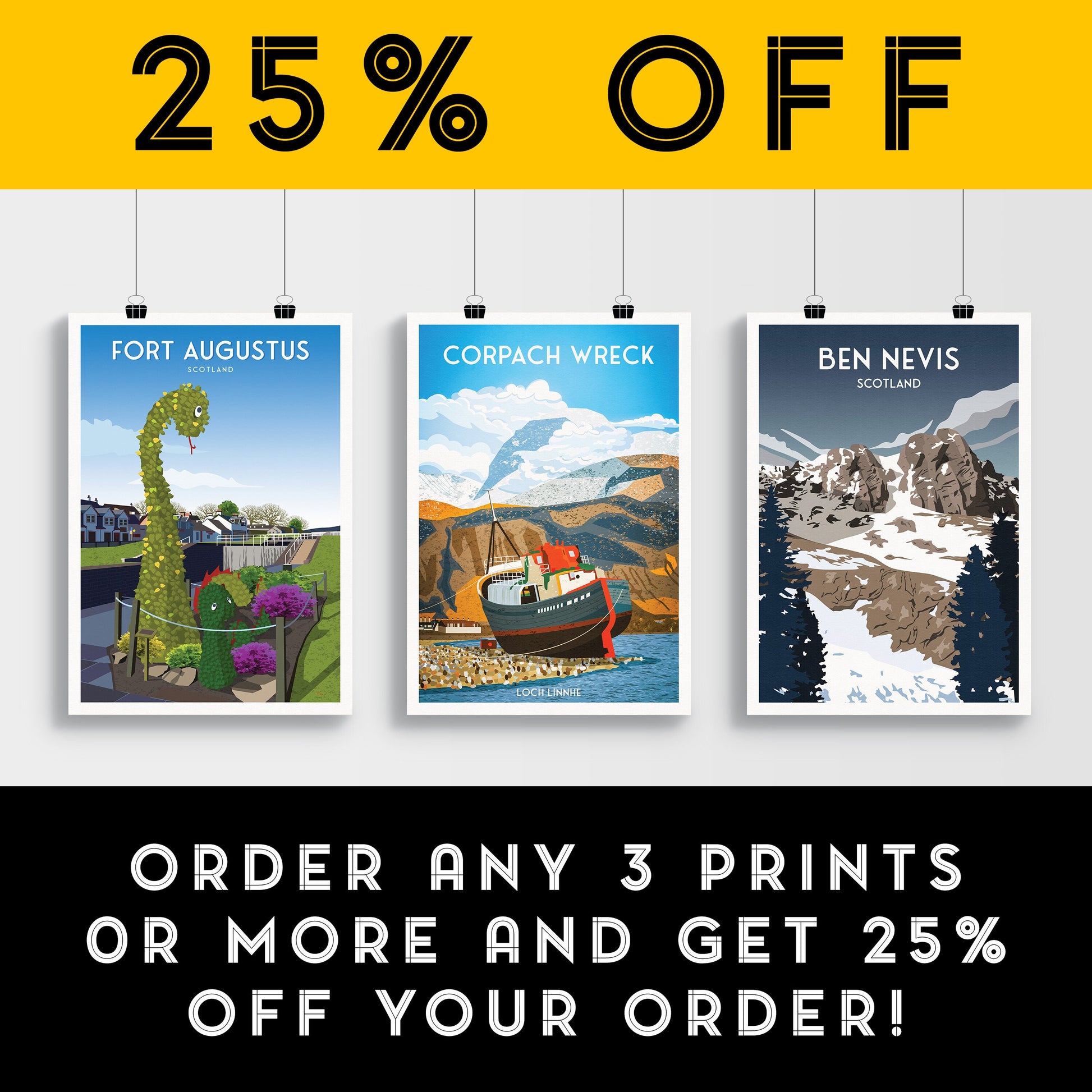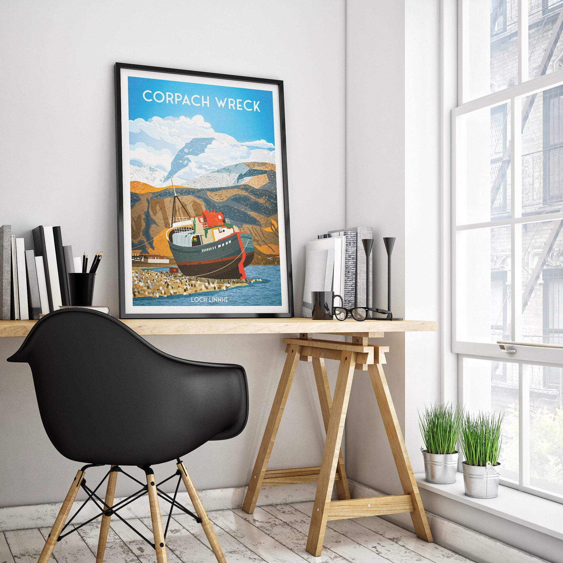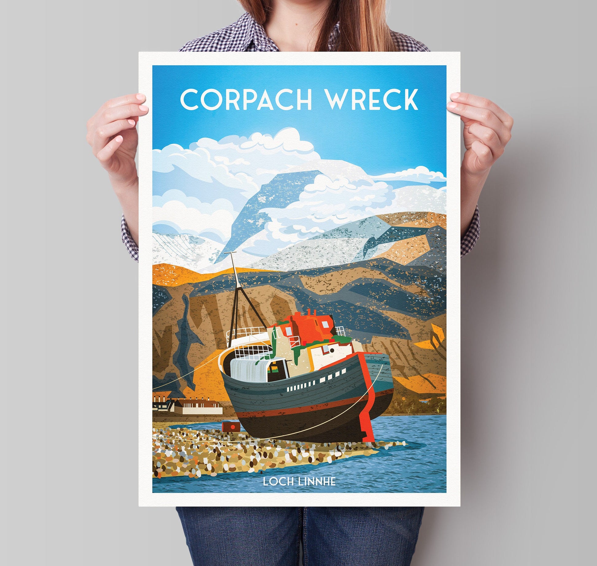 This beautifully illustrated print captures the haunting and mesmerizing sight of the Corpach Wreck near Fort William. With its rusty hull and striking backdrop of mountains and sea, this shipwreck has become an iconic sight for visitors to the Scottish Highlands.Printed on high-quality poster paper, this illustration is available in three sizes: A3 (11.7 x 16.5 inches), A2 (16.5 x 23.4 inches), and A1 (23.4 x 33.1 inches). Each size is perfect for framing and will make a stunning addition to any home or officeSize Options:A3 (11.7 x 16.5 inches)