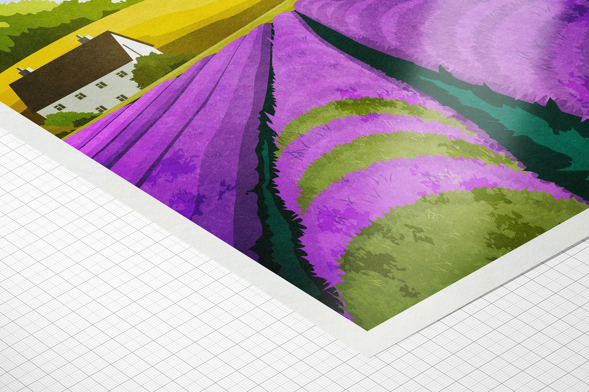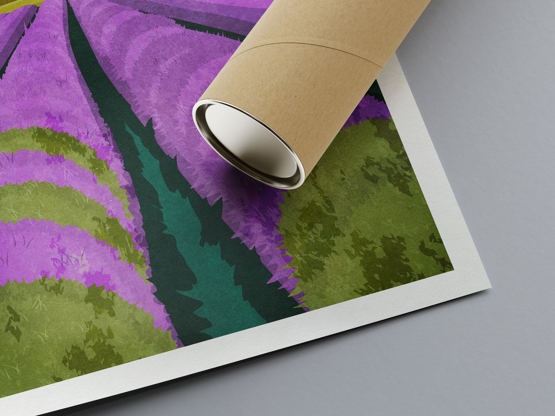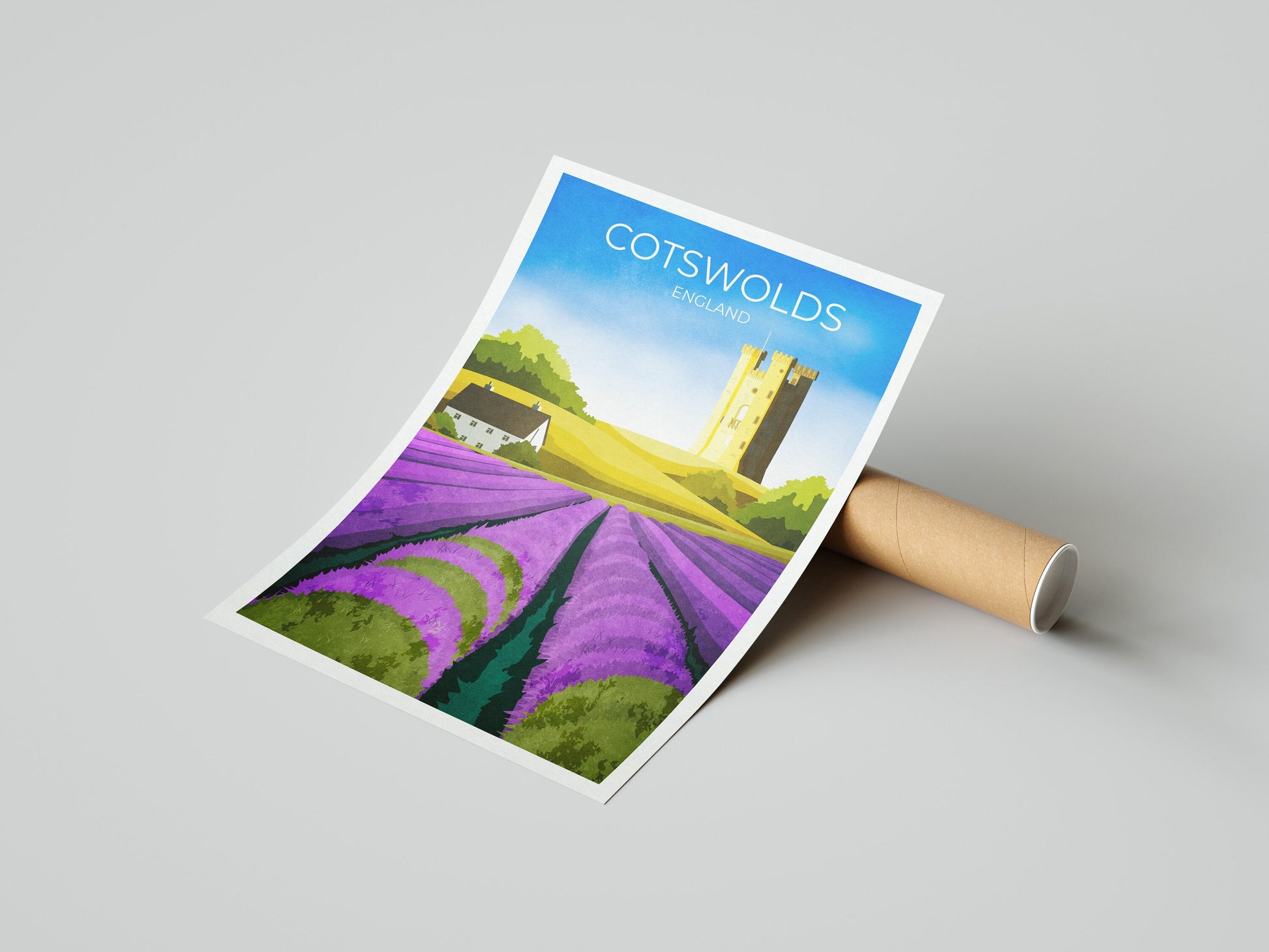 The Cotswolds Travel PosterBold and Colourful Travel Poster featuring the lavender fields of the Cotswolds in EnglandAvailable as:A3: 16.5 x 11.7 inches