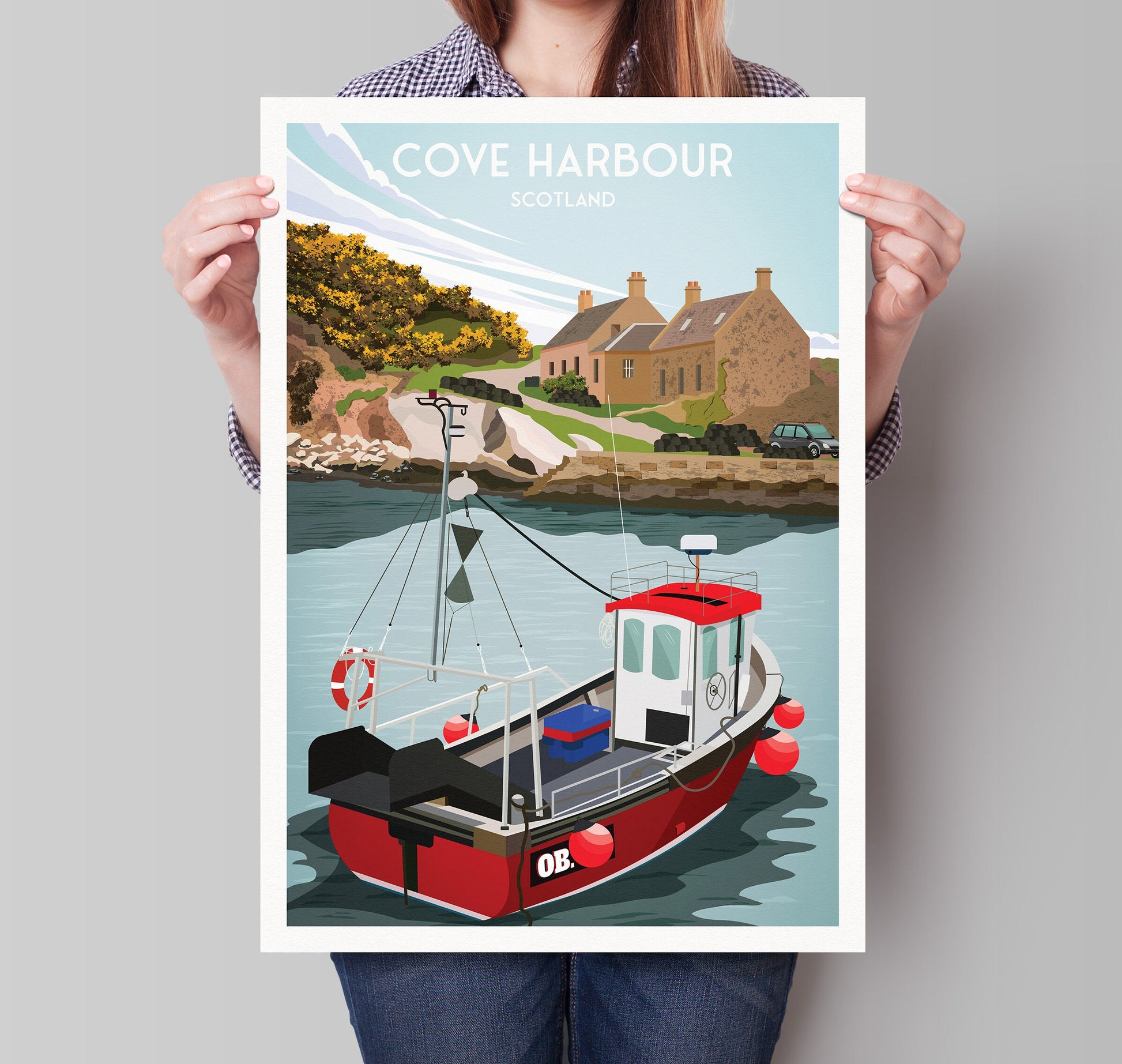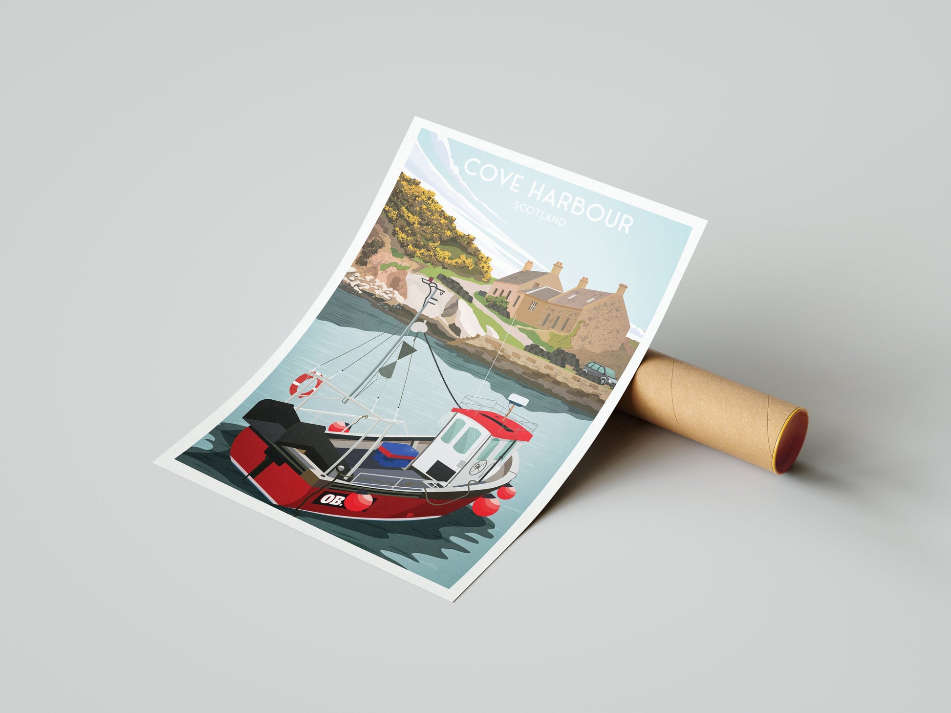 This stunning print of Cove Harbour in Scotland is the perfect addition to any home or office. Featuring the picturesque harbour, surrounded by rugged cliffs and beautiful blue waters, this print captures the natural beauty of Scotland's coastline.This high-quality print is available in three sizes, A3 (11.7 x 16.5 inches), A2 (16.5 x 23.4 inches), and A1 (23.4 x 33.1 inches), making it a versatile option for any space. Printed on archival-quality paper with fade-resistant inks, this print is sure to last for years to come.Whether you're a lover of Scottish landscapes or simply appreciate the beauty of nature, this Cove Harbour print is a must-have. It also makes a great gift for friends or family who share your passion for stunning scenery.Details:Print: Cove Harbour, ScotlandSizes: A3 (11.7 x 16.5 inches), A2 (16.5 x 23.4 inches), A1 (23.4 x 33.1 inches)Ink: Fade-resistantFrame not includedShipping:All prints are carefully packaged and shipped within 1-3 business days of ordering. Shipping times vary depending on your location.Thank you for considering this beautiful print of Cove Harbour in Scotland. Please don't hesitate to contact us if you have any questions or special requests.Available on 180gsm matt poster paper