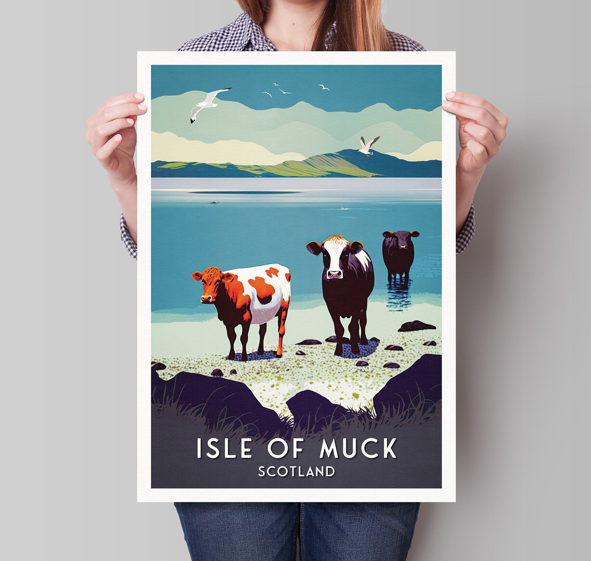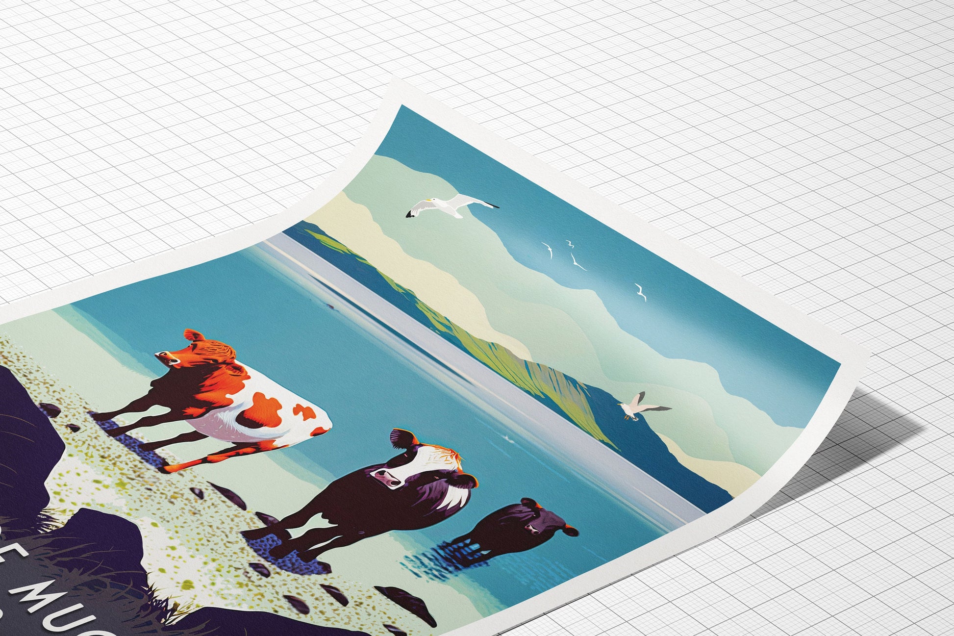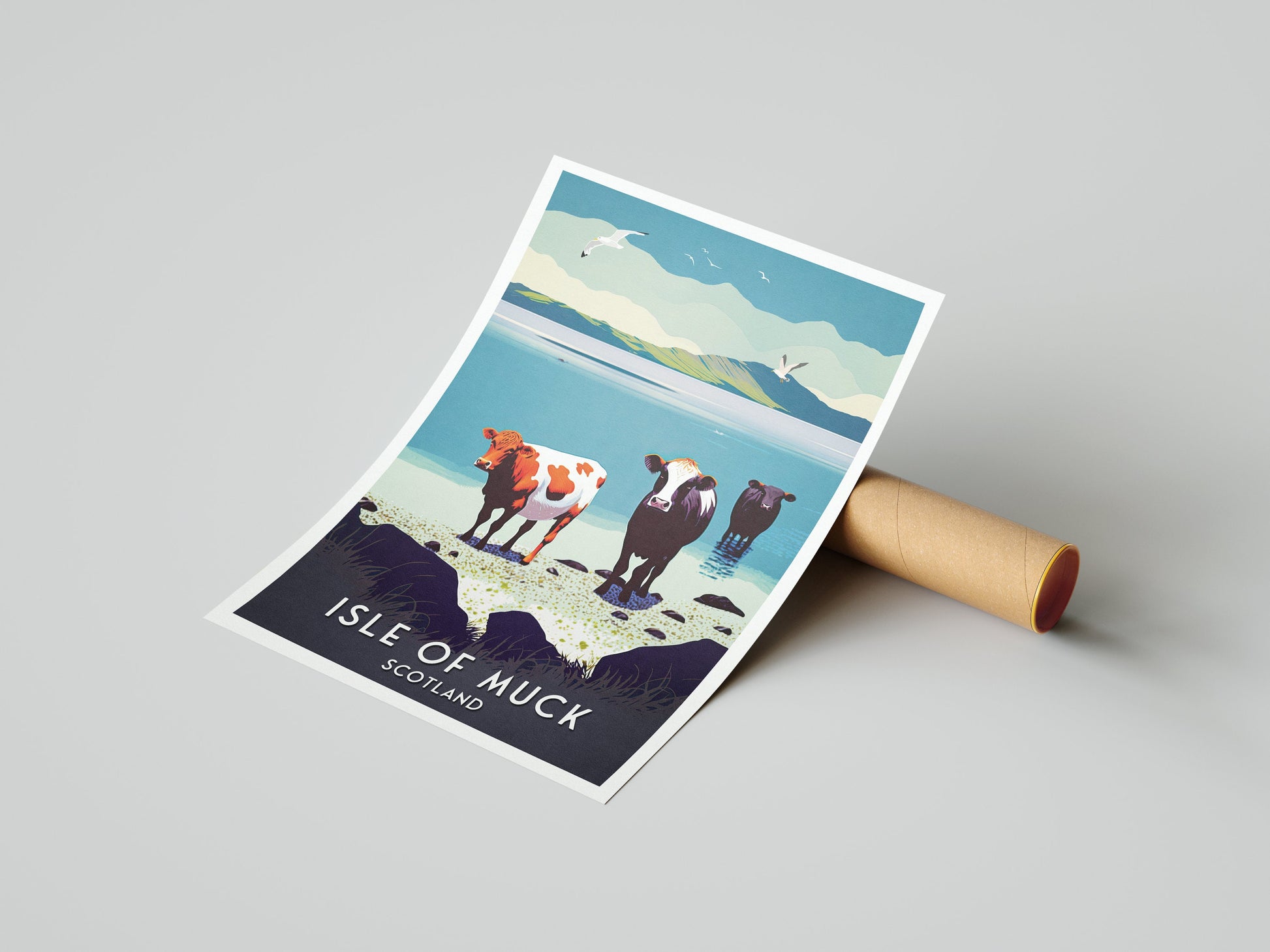 Bring the beauty of the Scottish countryside into your home with this stunning illustration print of cows on the beach on the Isle of Muck. This artwork captures the peaceful and idyllic scene of cows on the beach against a backdrop of the Scottish coastline.This print is available in two sizes: A3 (29.7 x 42.0 cm) and A2 (42.0 x 59.4 cm). Each print is professionally printed on high-quality paper with a matte finish to ensure the colors and details of the original artwork are preserved.Perfect for nature lovers, art collectors, or anyone who wants to add a touch of Scottish charm to their home decor, this illustration print makes a unique and thoughtful gift.Details:Professionally printed with either a matte or satin finish.