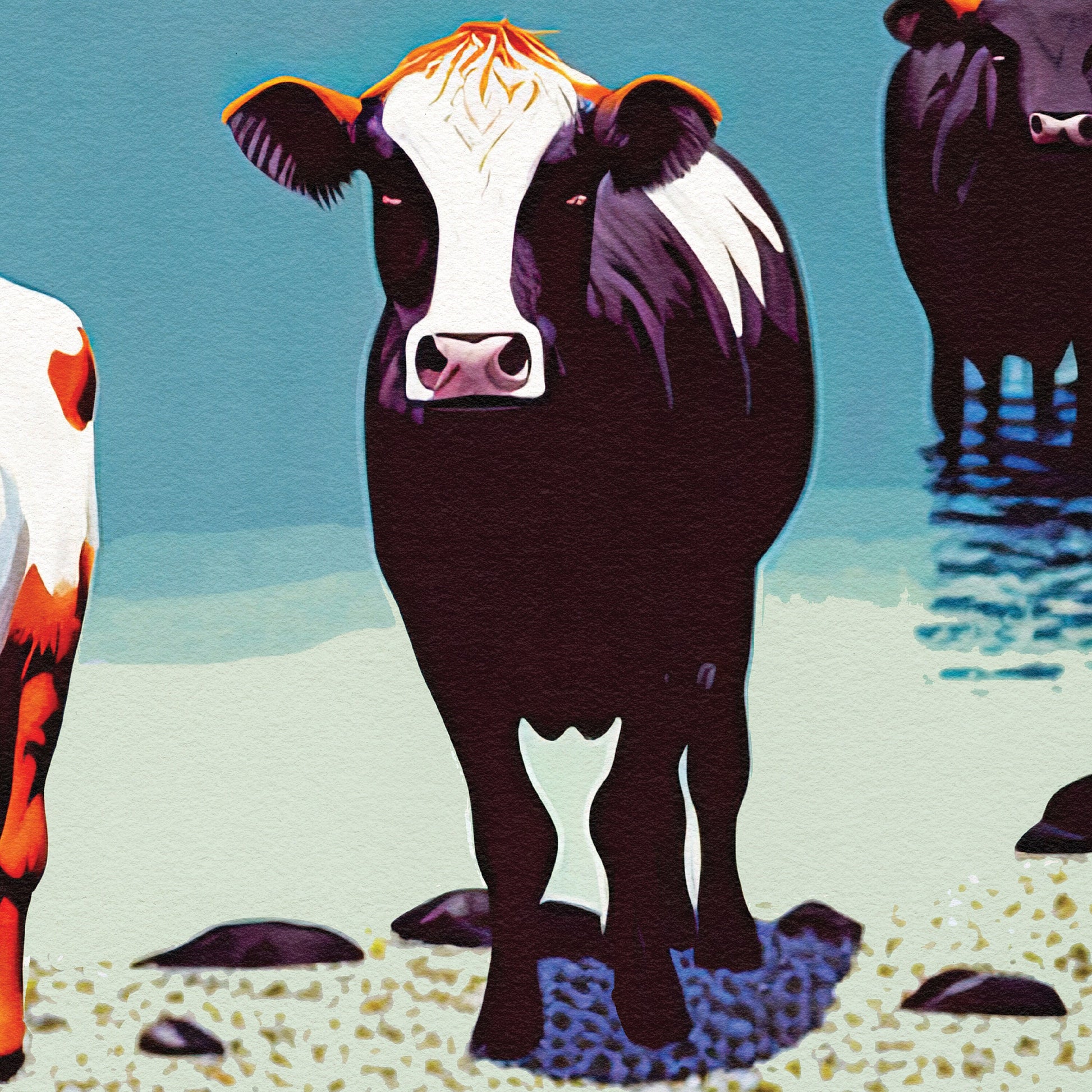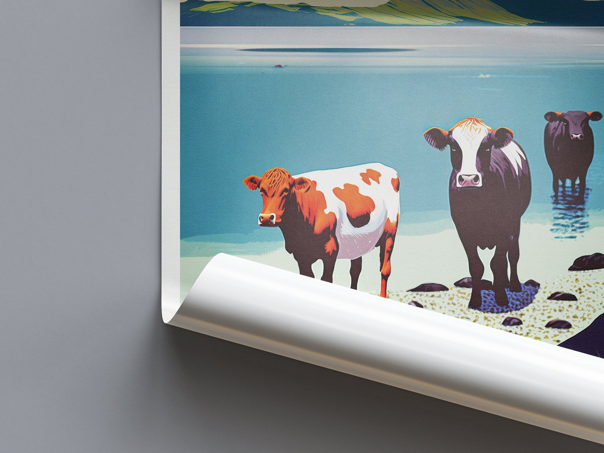 Cows on the Beach, Isle of Muck - Scottish Countryside Illustration Print - Scottish Wall Art - Poster - Highlands