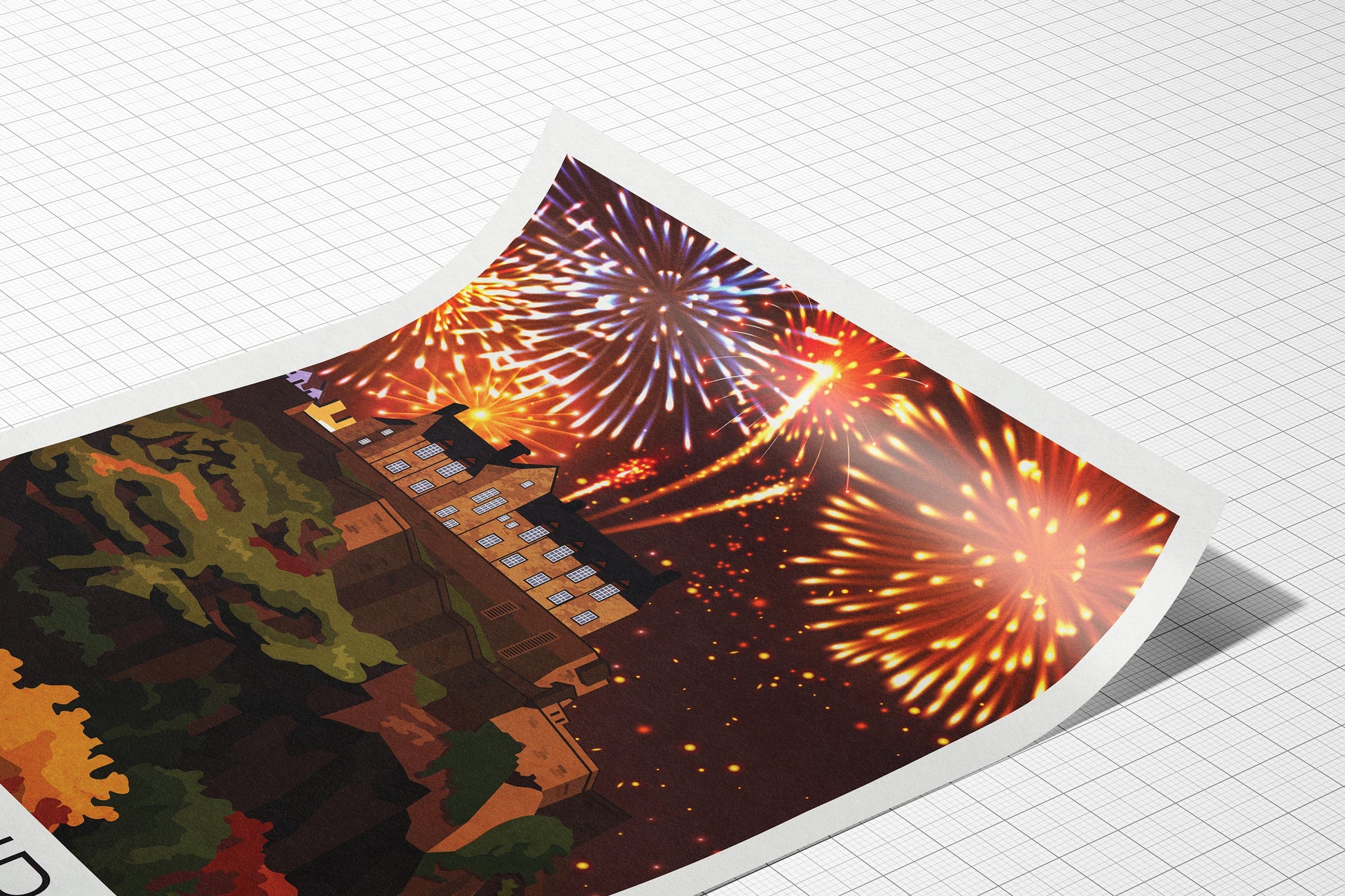 Edinburgh Castle Hogmanay Travel Poster, New Year's Eve, Edinburgh traditional travel print - Scotland Wall Art, Edinburgh Castle poster