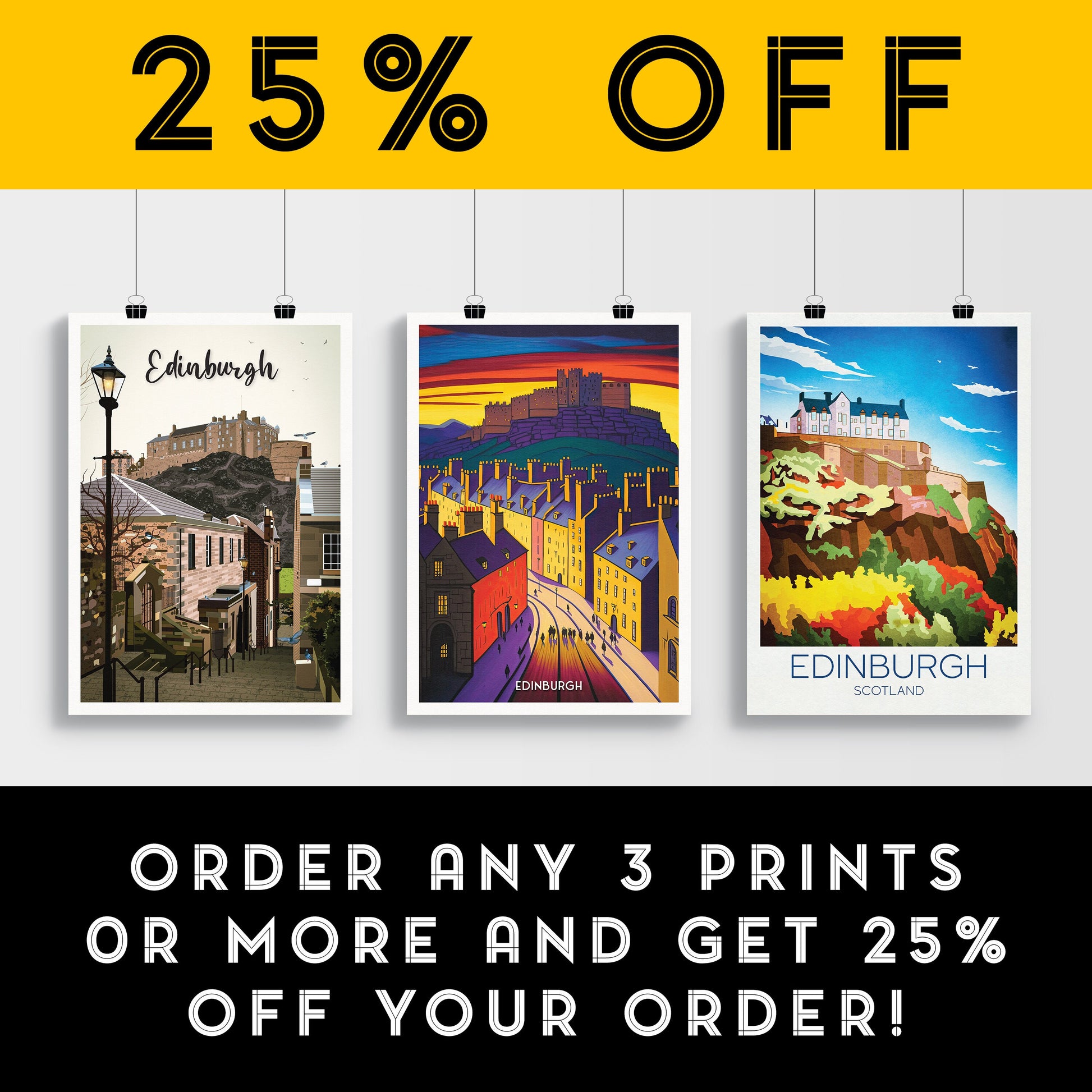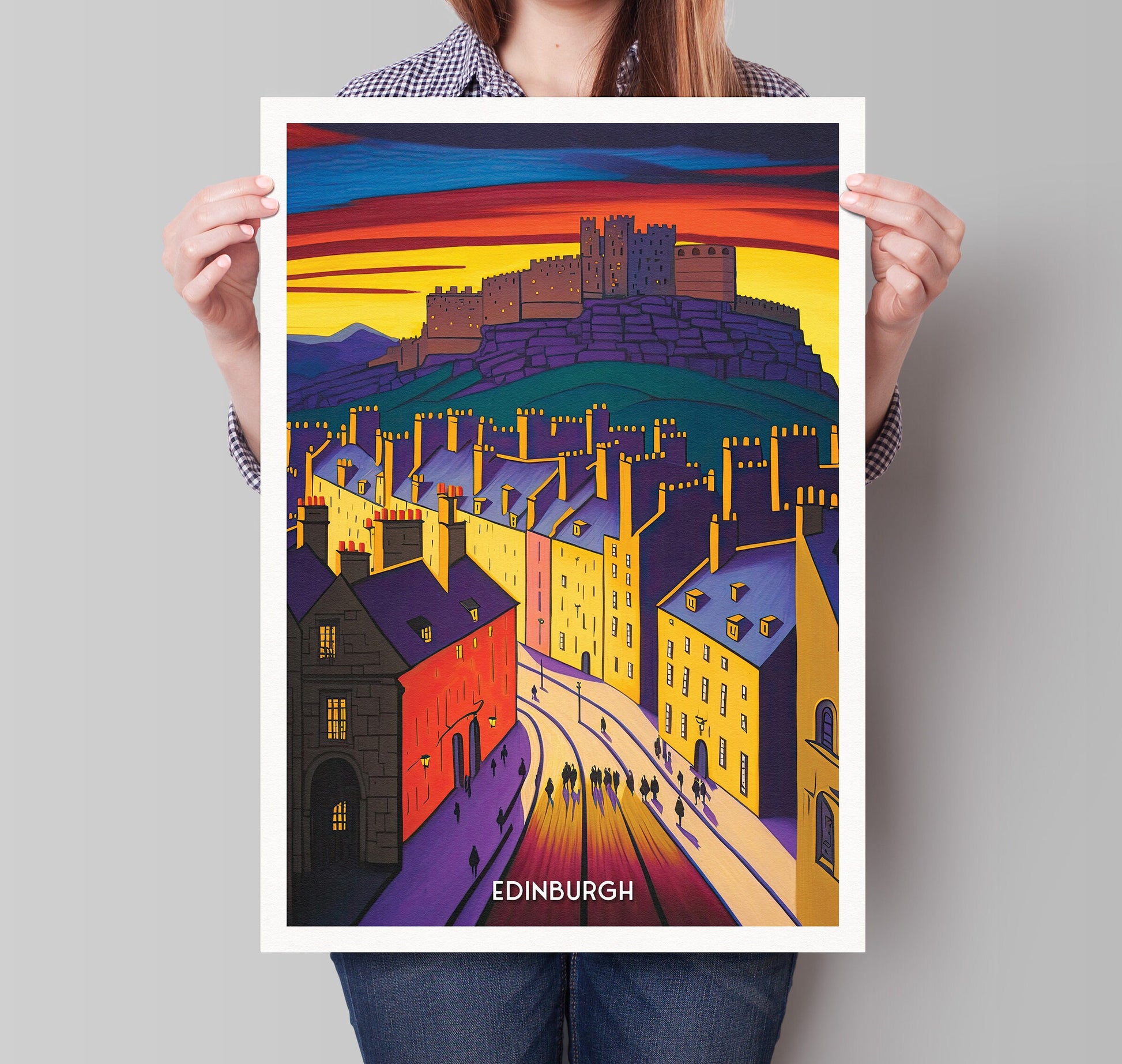 Edinburgh Castle Print - Vibrant Colourful Edinburgh Poster - Scottish Wall Art - Grassmarket