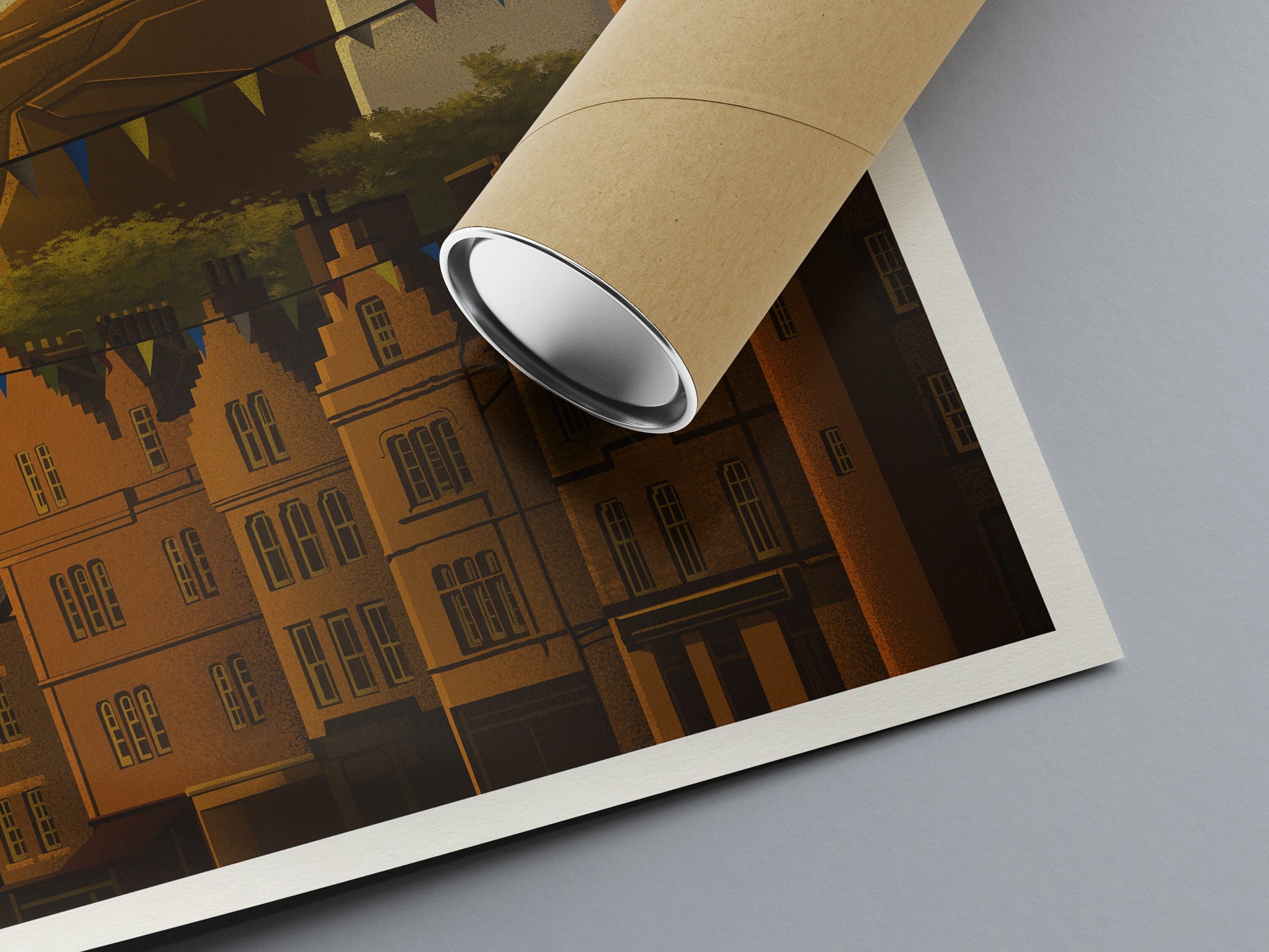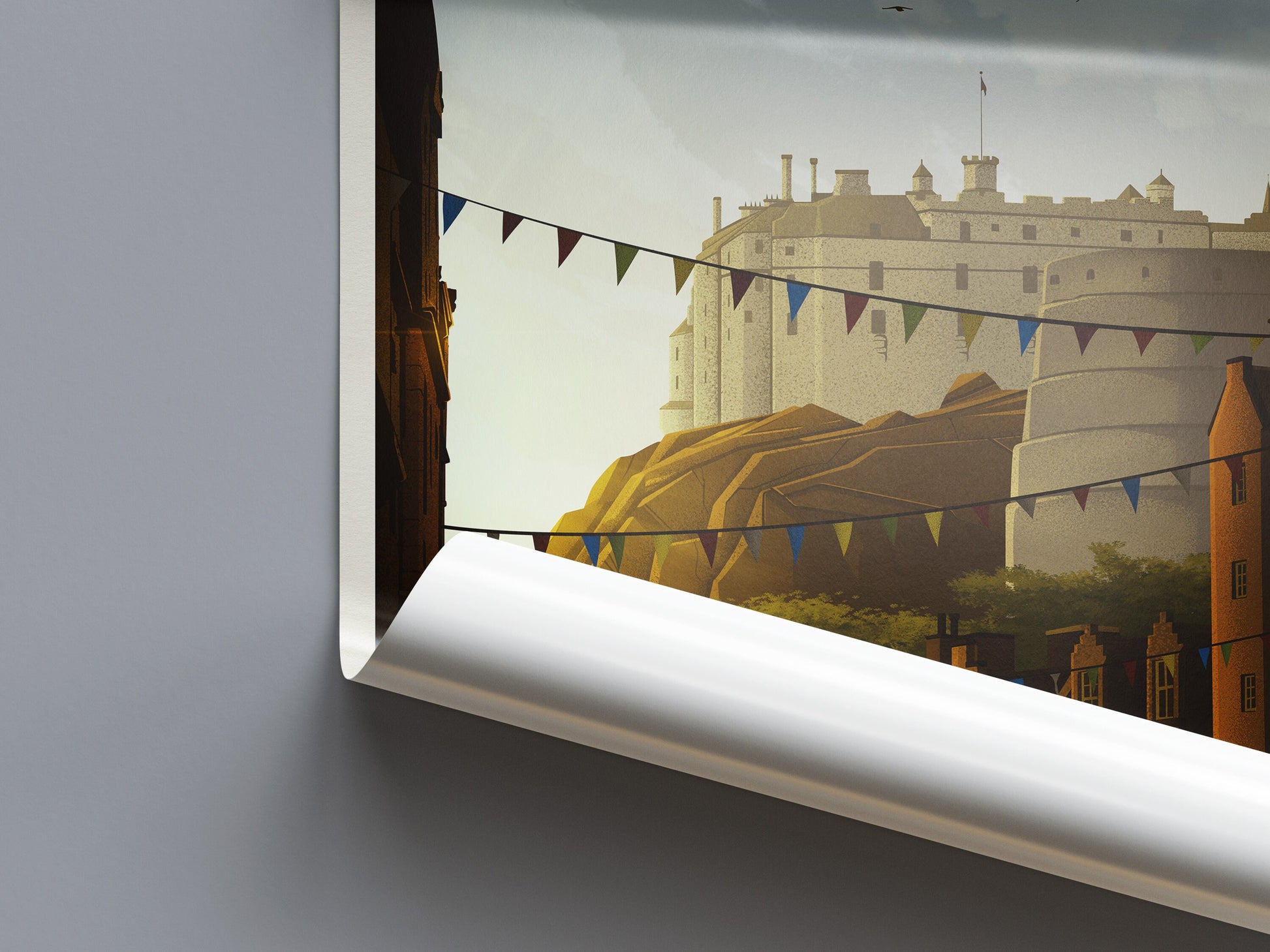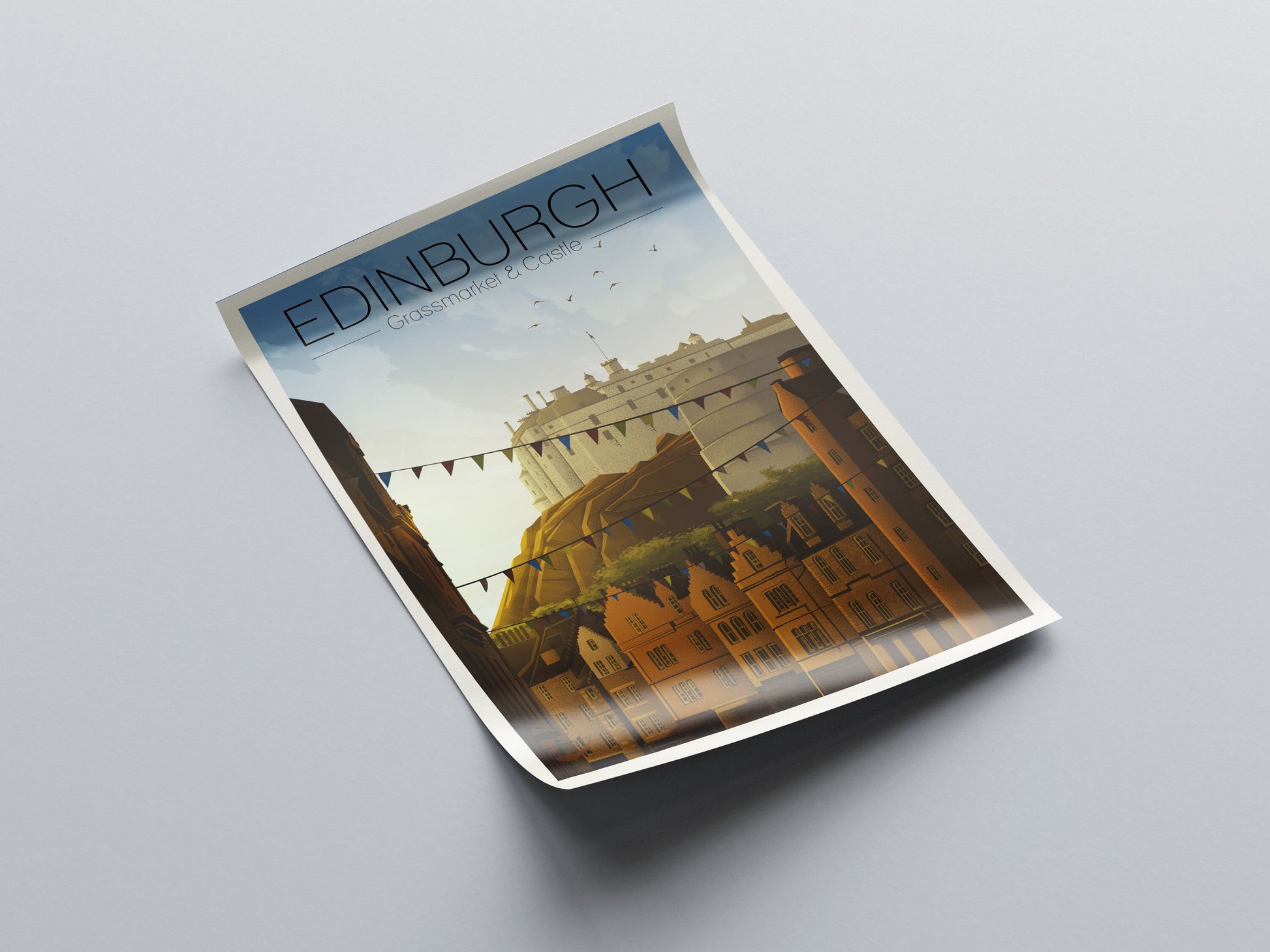 Edinburgh Grassmarket & Castle PosterVintage looking illustration of Edinburgh Castle from the Grassmarket. Edinburgh Castle is a historic fortress which dominates the skyline of Edinburgh, the capital city of Scotland, from its position on the Castle Rock. The Grassmarket is located directly below Edinburgh Castle and forms part of one of the main east-west vehicle arteries through the city centre. The Grassmarket was, from 1477, one of Edinburgh's main market places, a part of which was given over to the sale of horse and cattle. This would make for a perfect gift for someone from Edinburgh or who enjoyed a trip there. Available as :