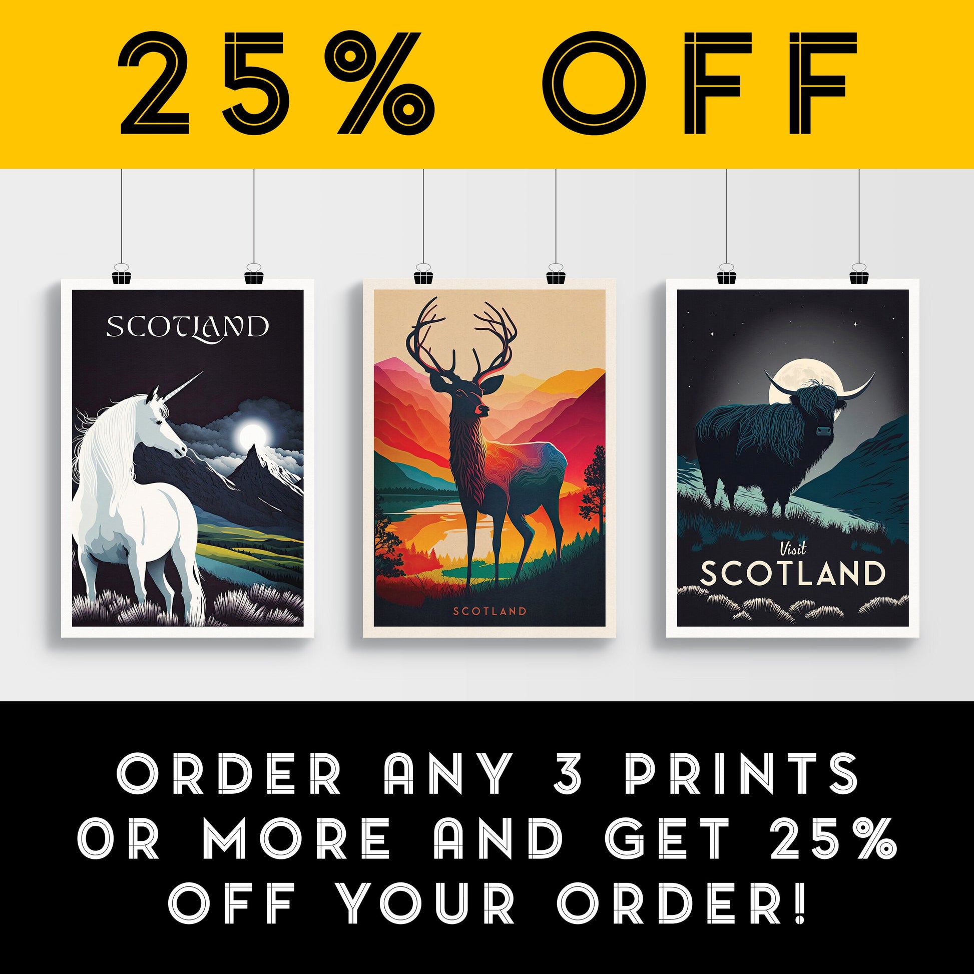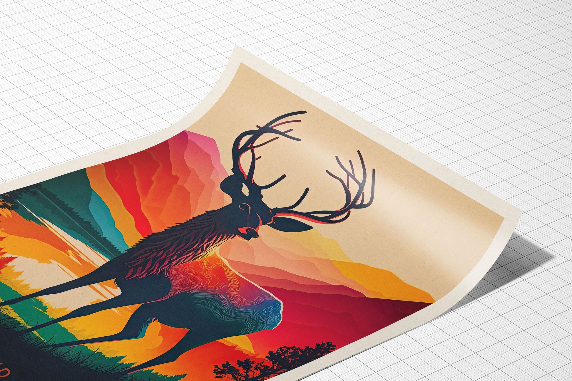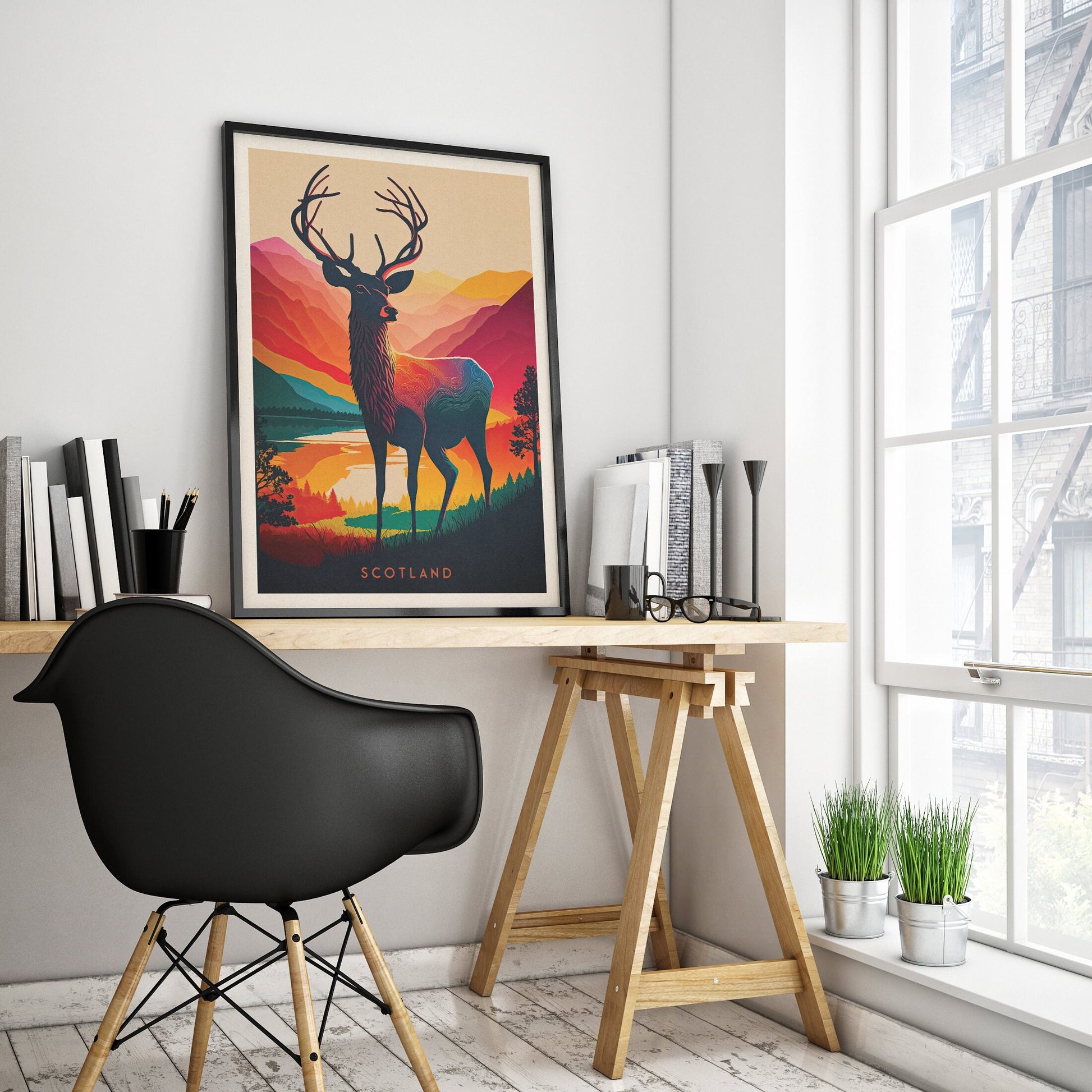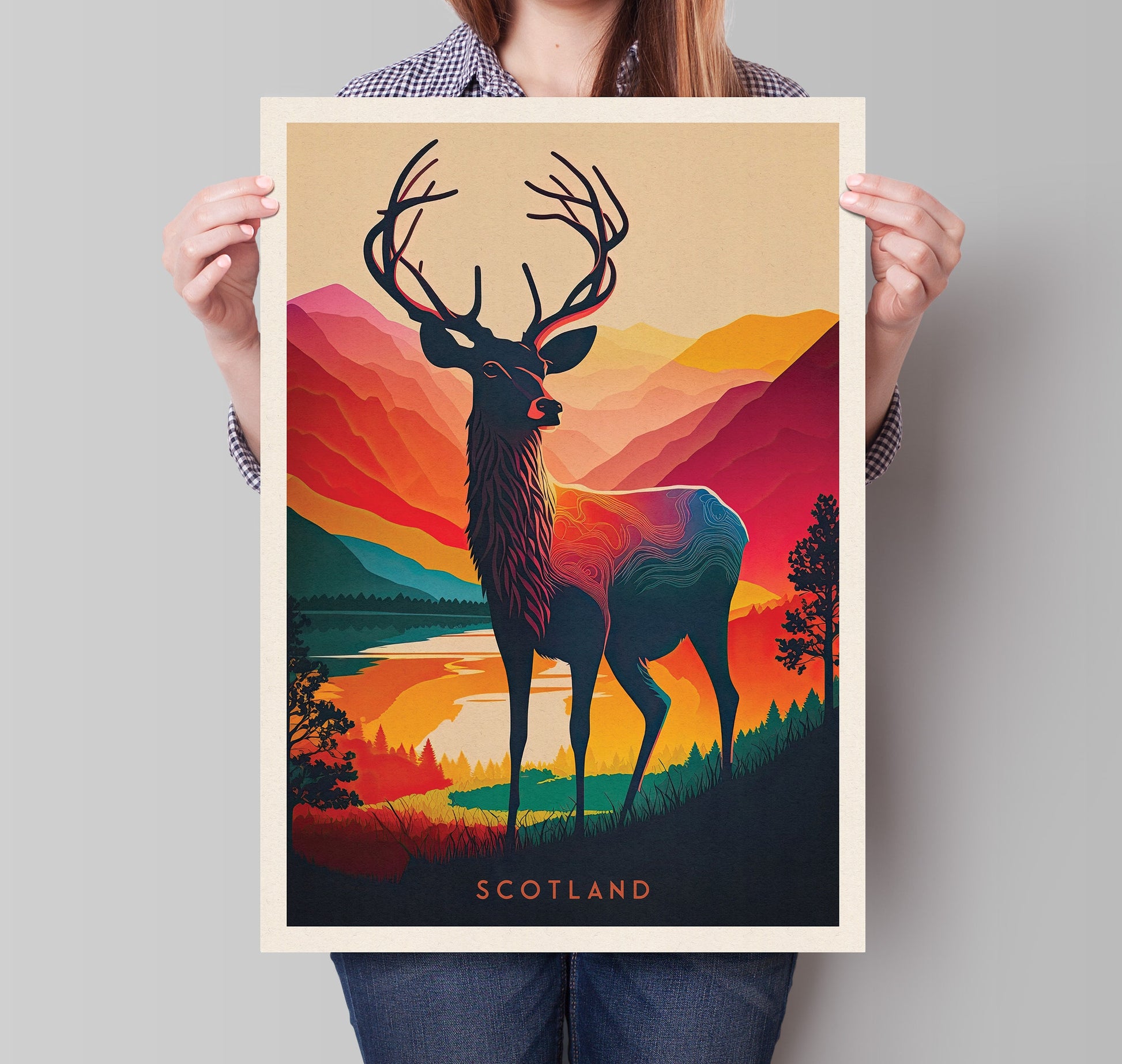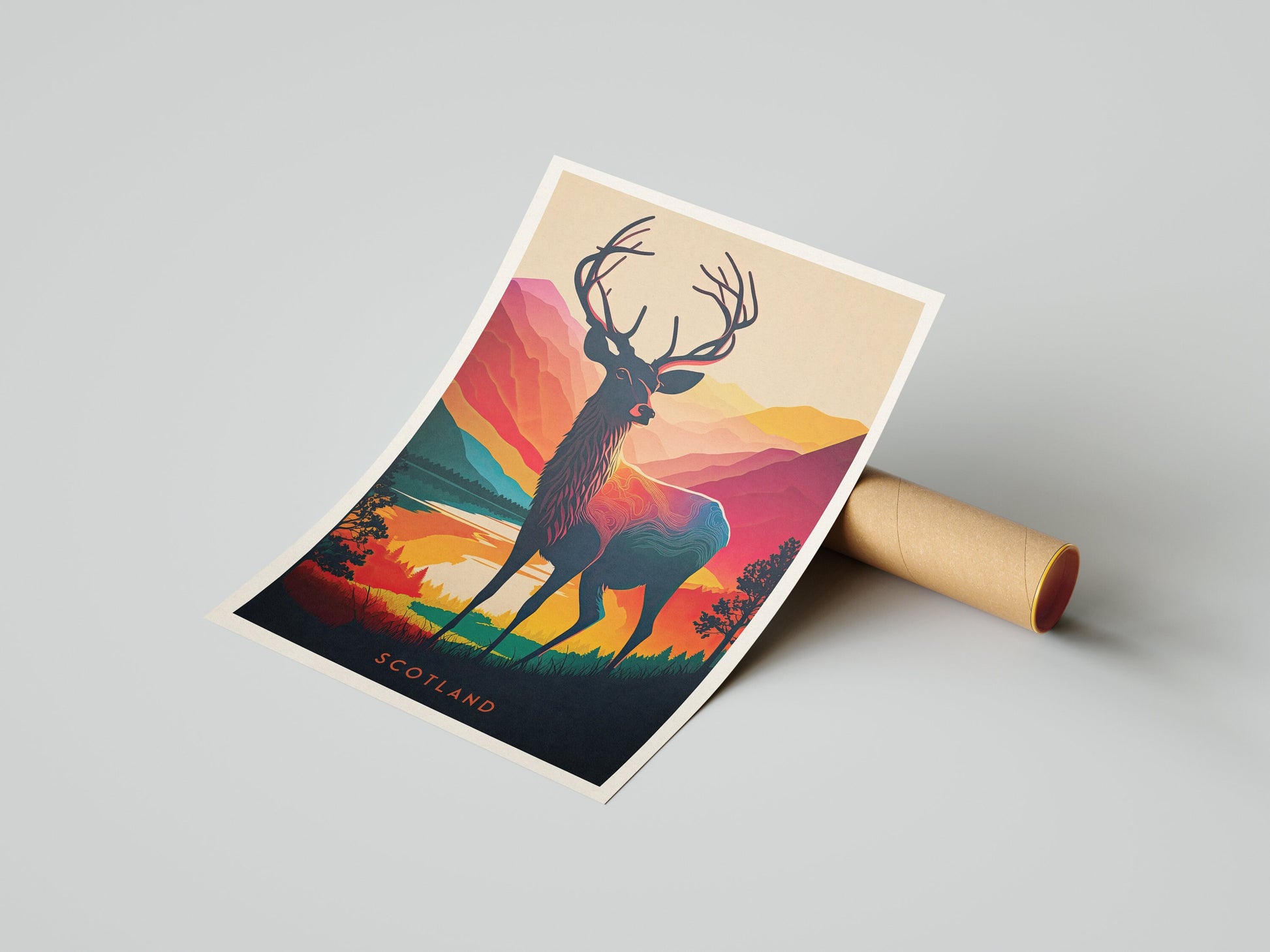 Scotland Stag Print | Colorful Scottish Highlands Poster | Scottish Gift | Birthday Present | Home Decor Artwork