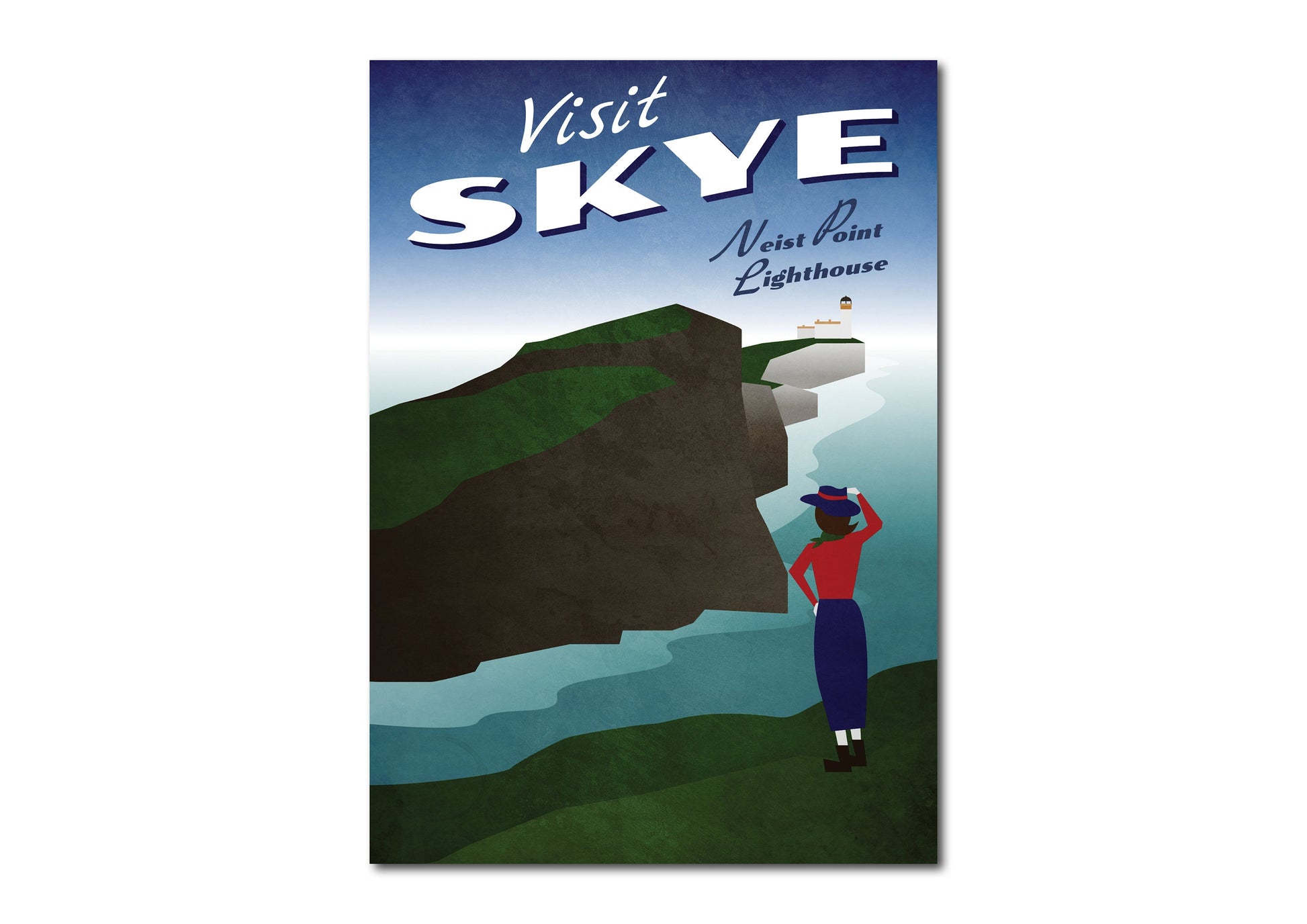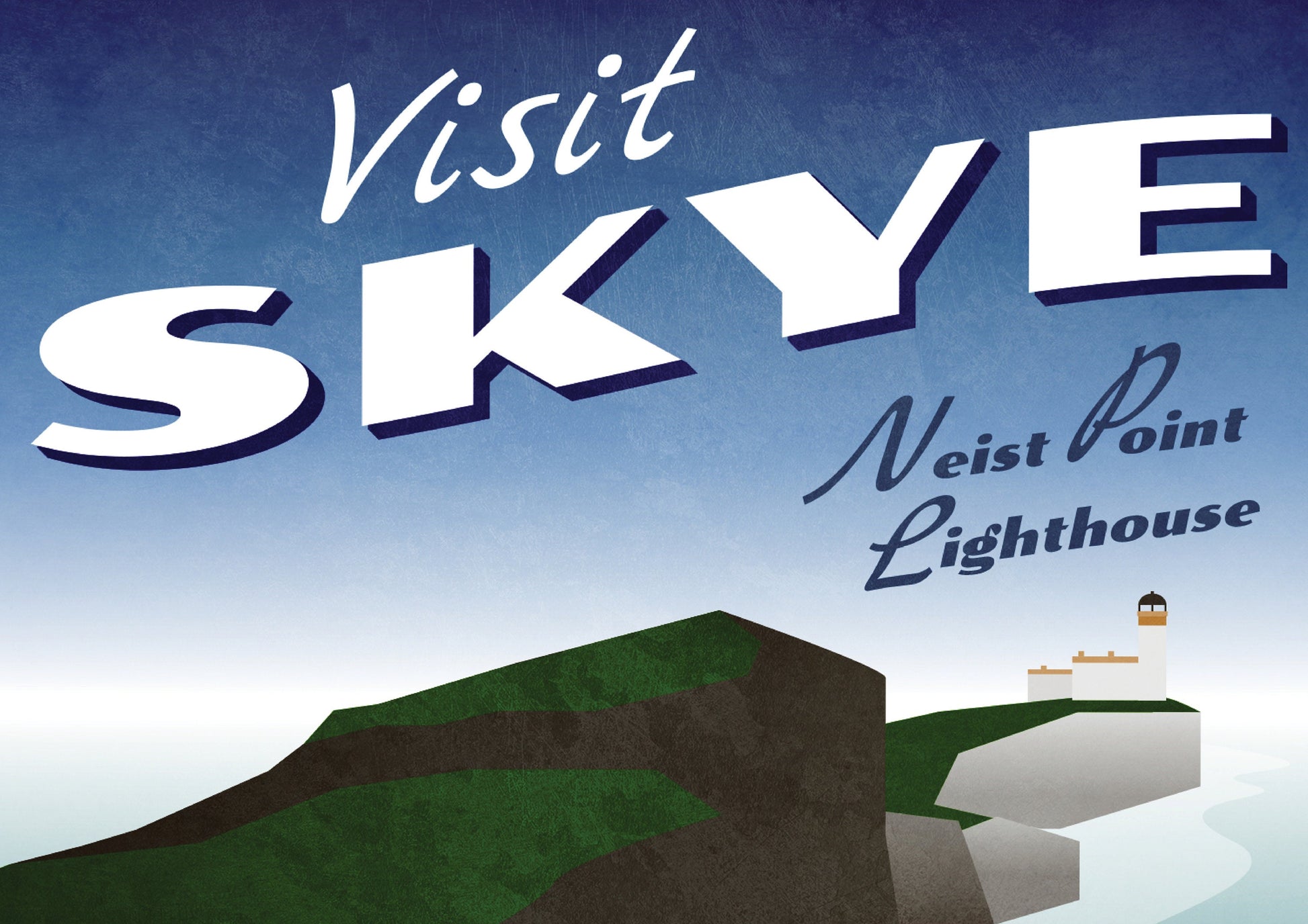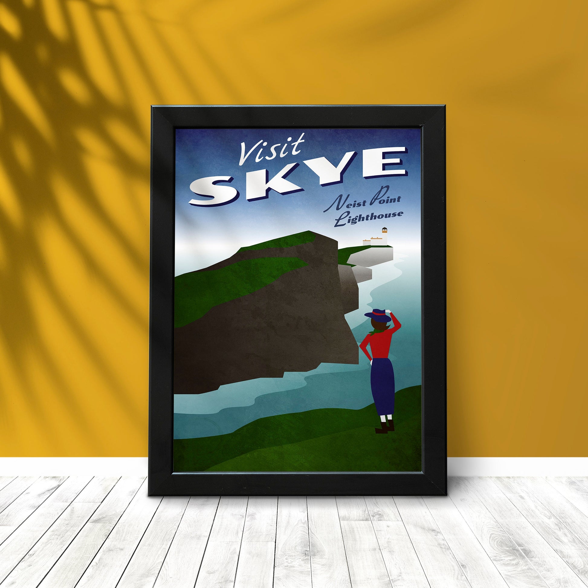 Skye Travel Poster, Vintage looking Skye Scotland Travel Poster, Neist Point Lighthouse, Scottish Art, Scottish Gifts, Vintage Scotland