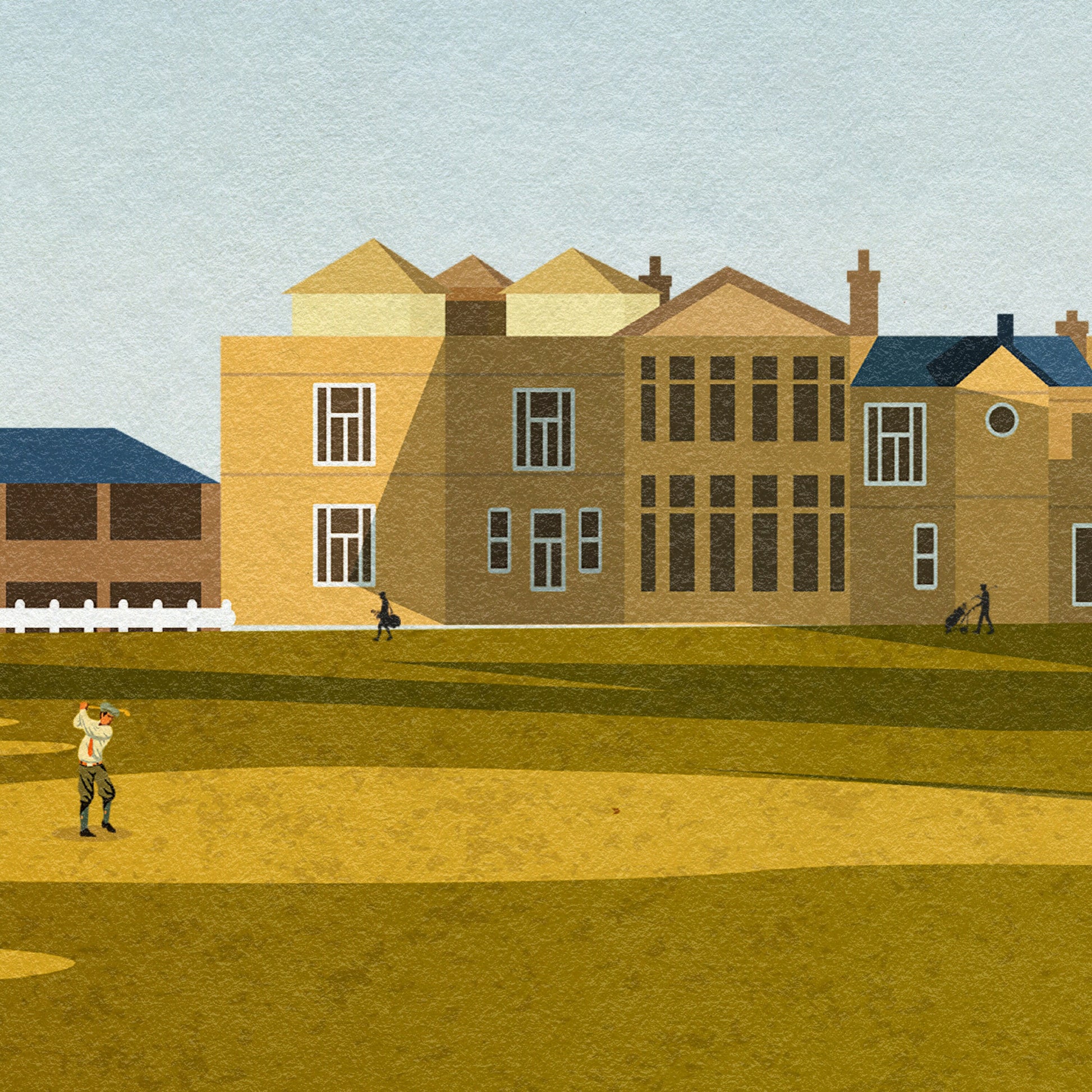 St Andrews Golf Print, 18th Hole, Swilcan Bridge, Home of Golf, The Old Course, The Home of Golf, Grand Old Lady, Scotland Illustration Art