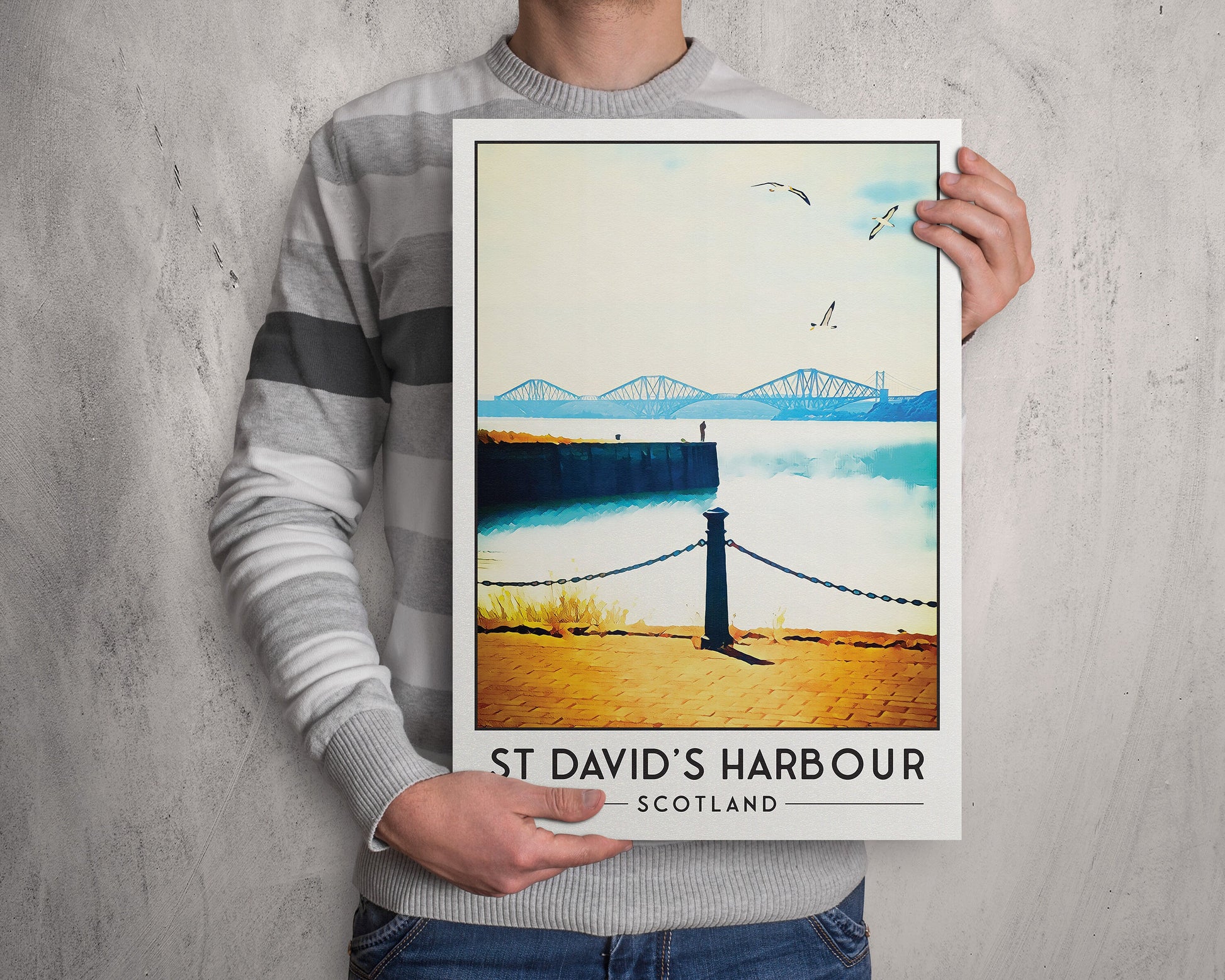 St David's Harbour - Fisherman Print - Dalgety Bay Travel Poster - Forth Bridges - Forth Road - Forth Rail Bridge - Fife Gift - Coastal Path