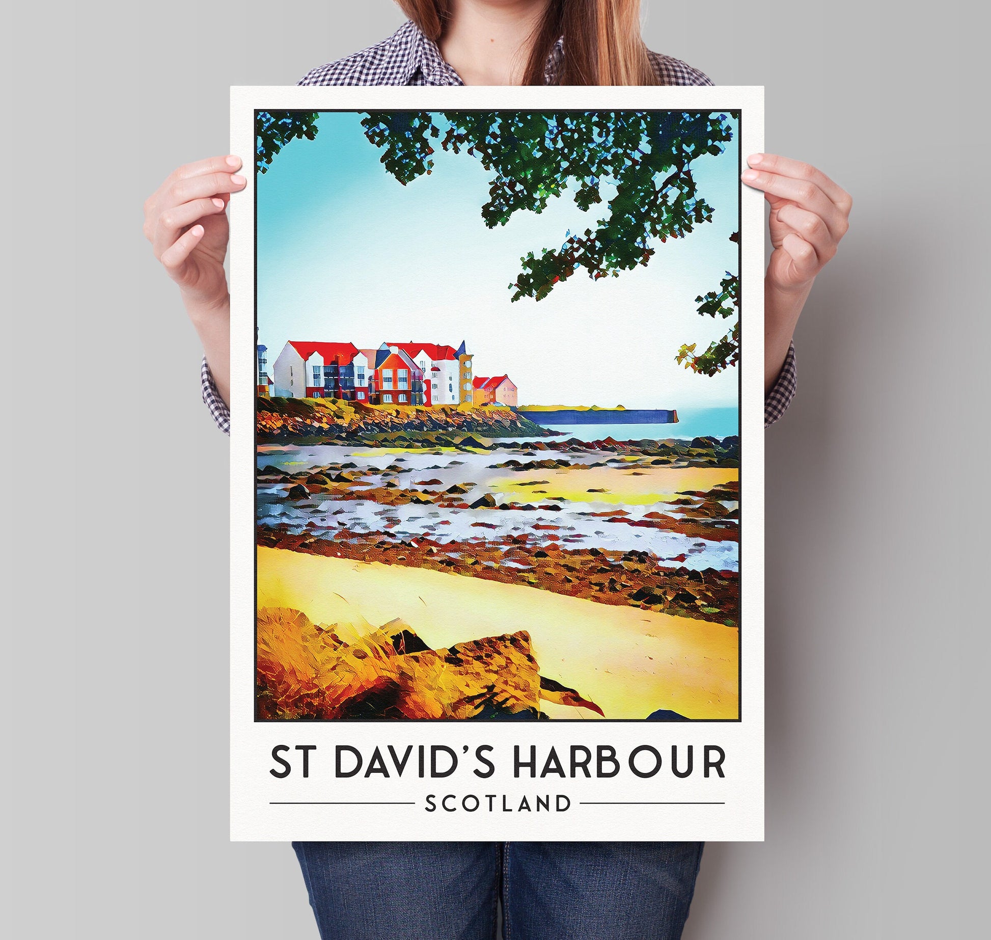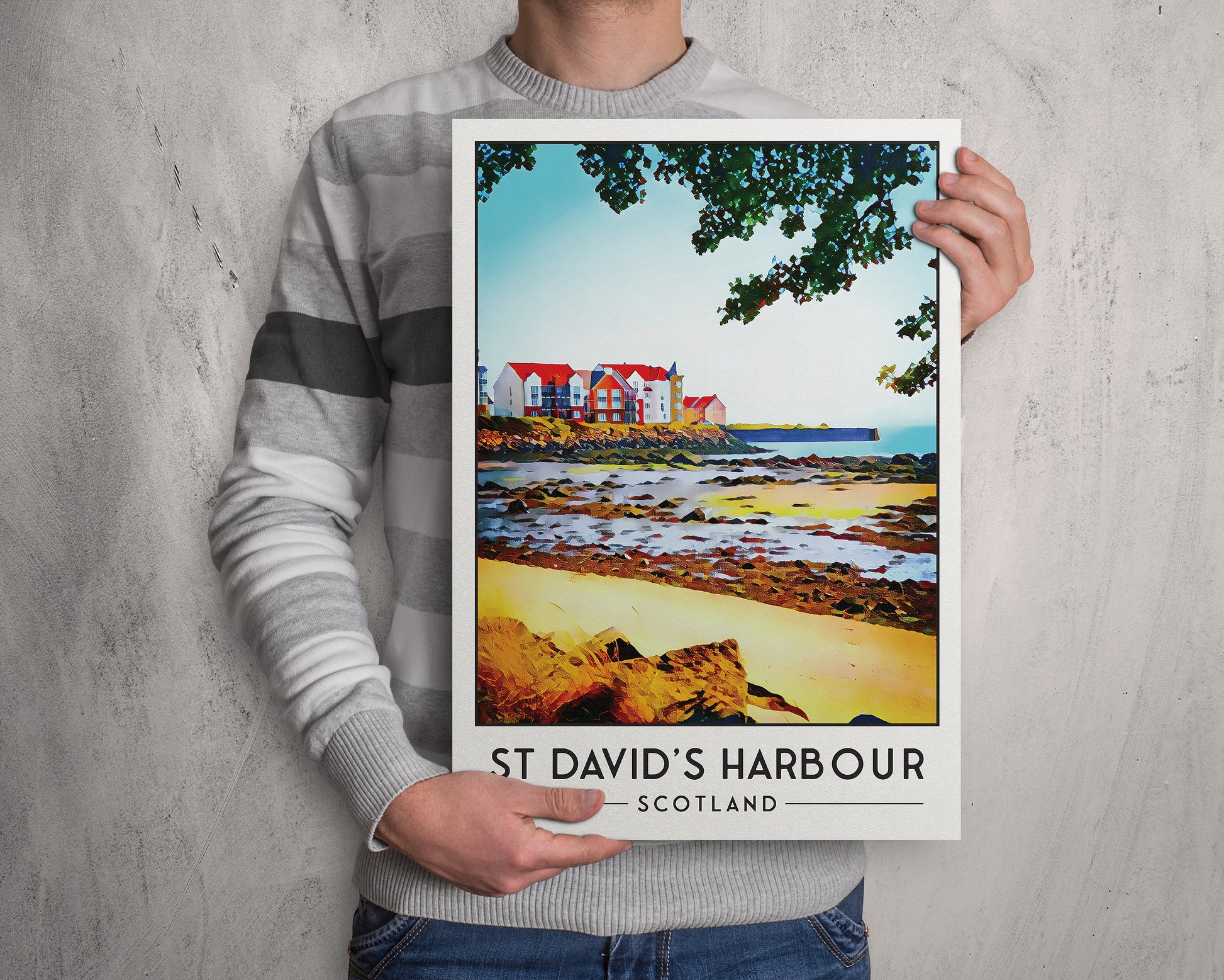 St David's Harbour Print - Dalgety Bay Travel Poster - Fife Gift - Coastal Path